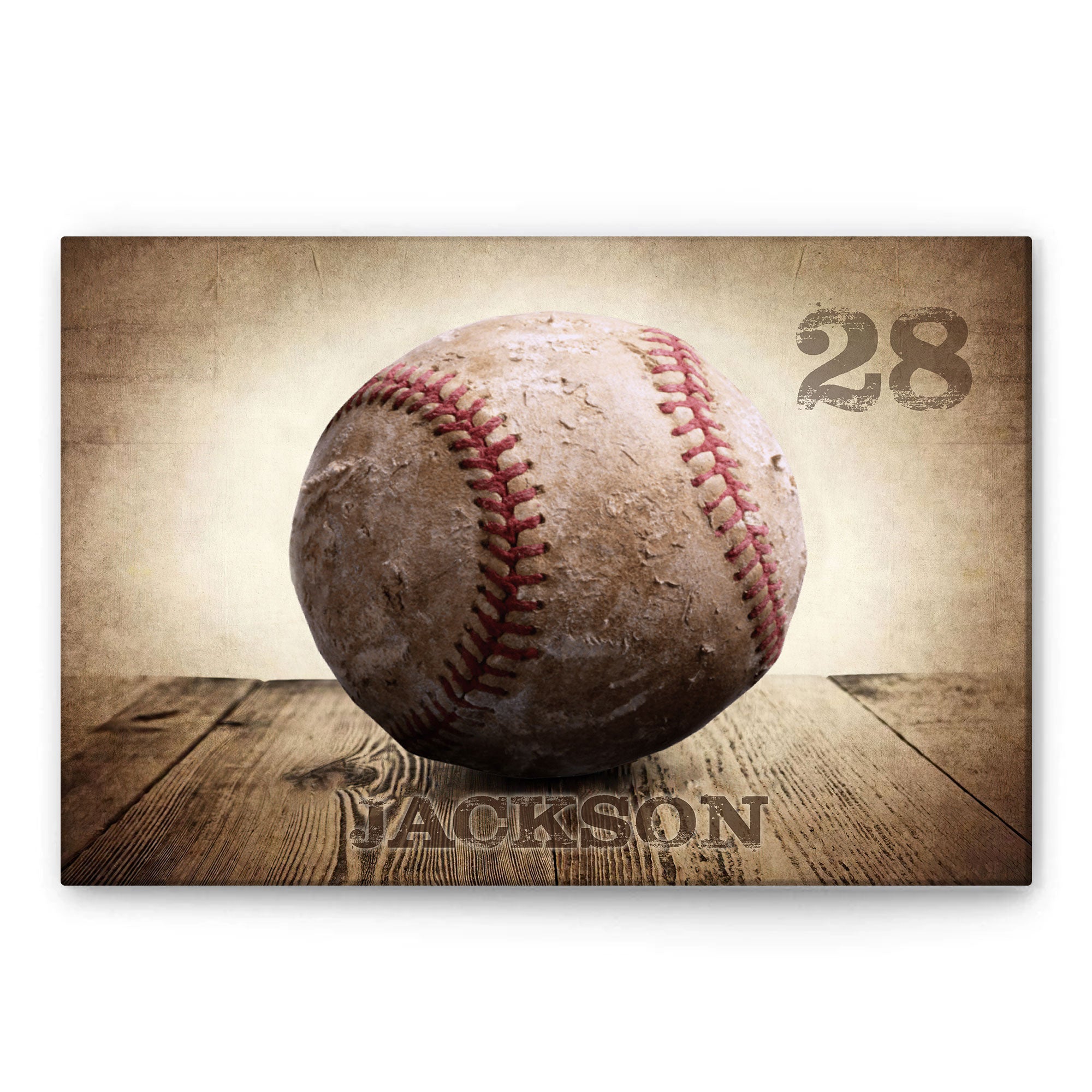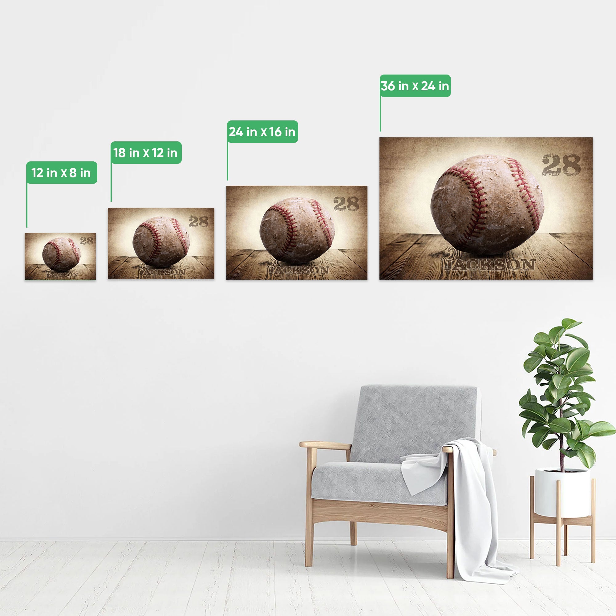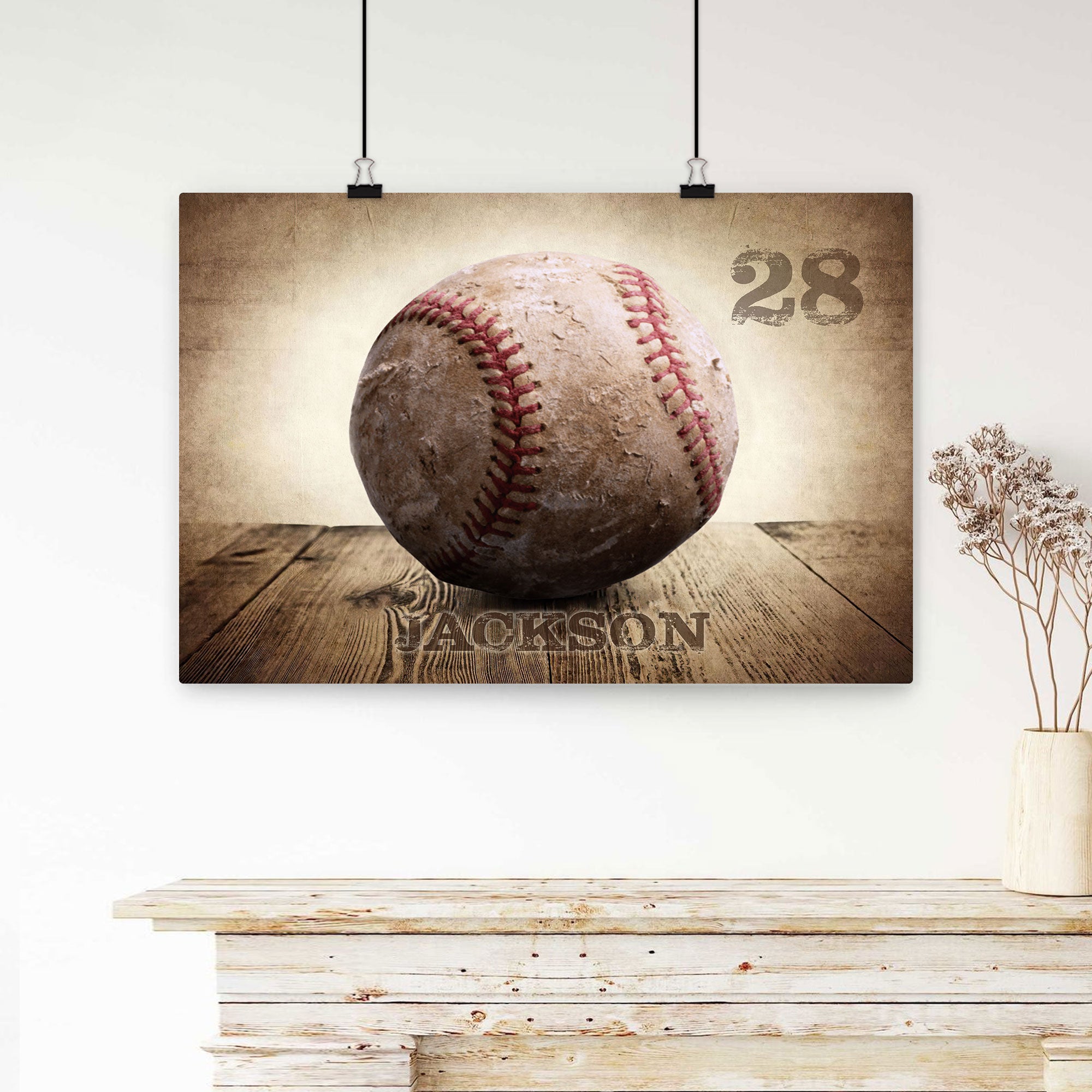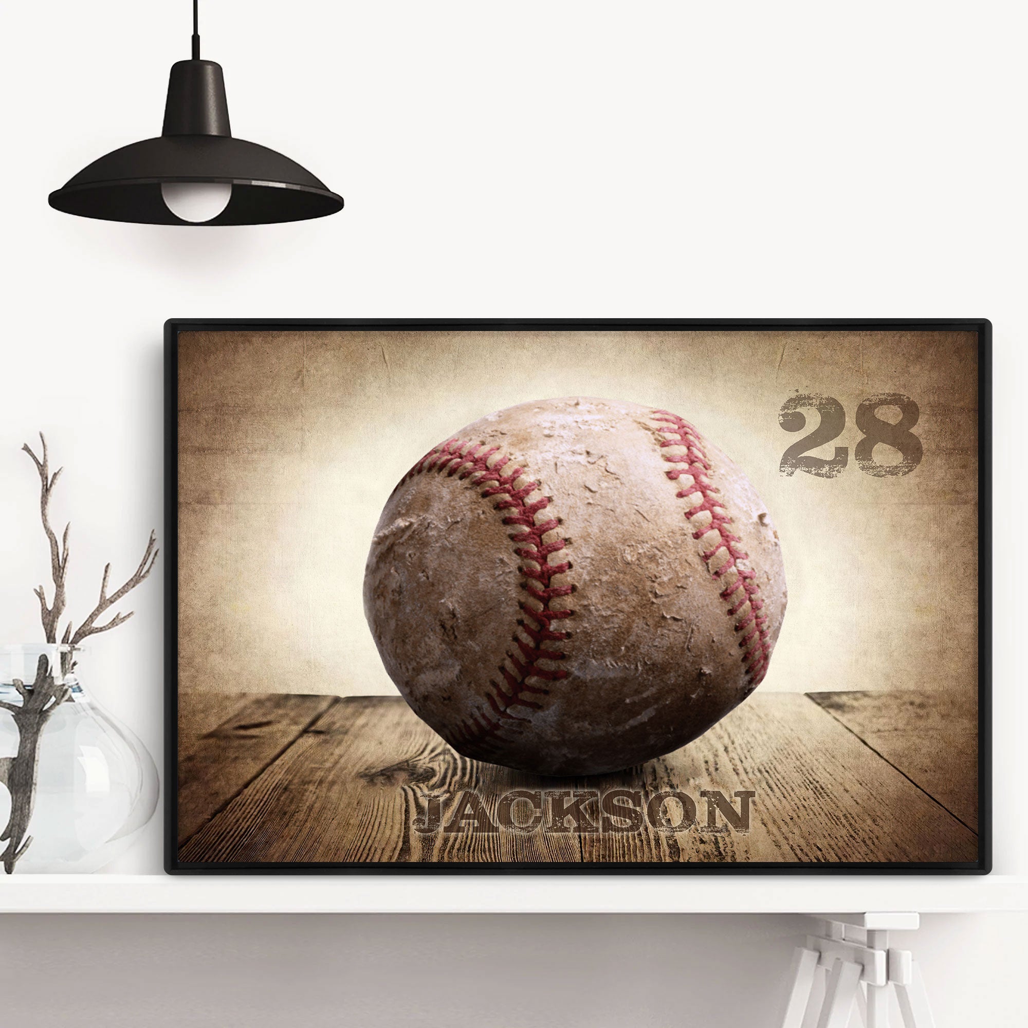Personalized Baseball Poster & Canvas, Baseball Ball Vintage Wall Art, Custom Name Number Home Decor For Men, Women, Baseball Player