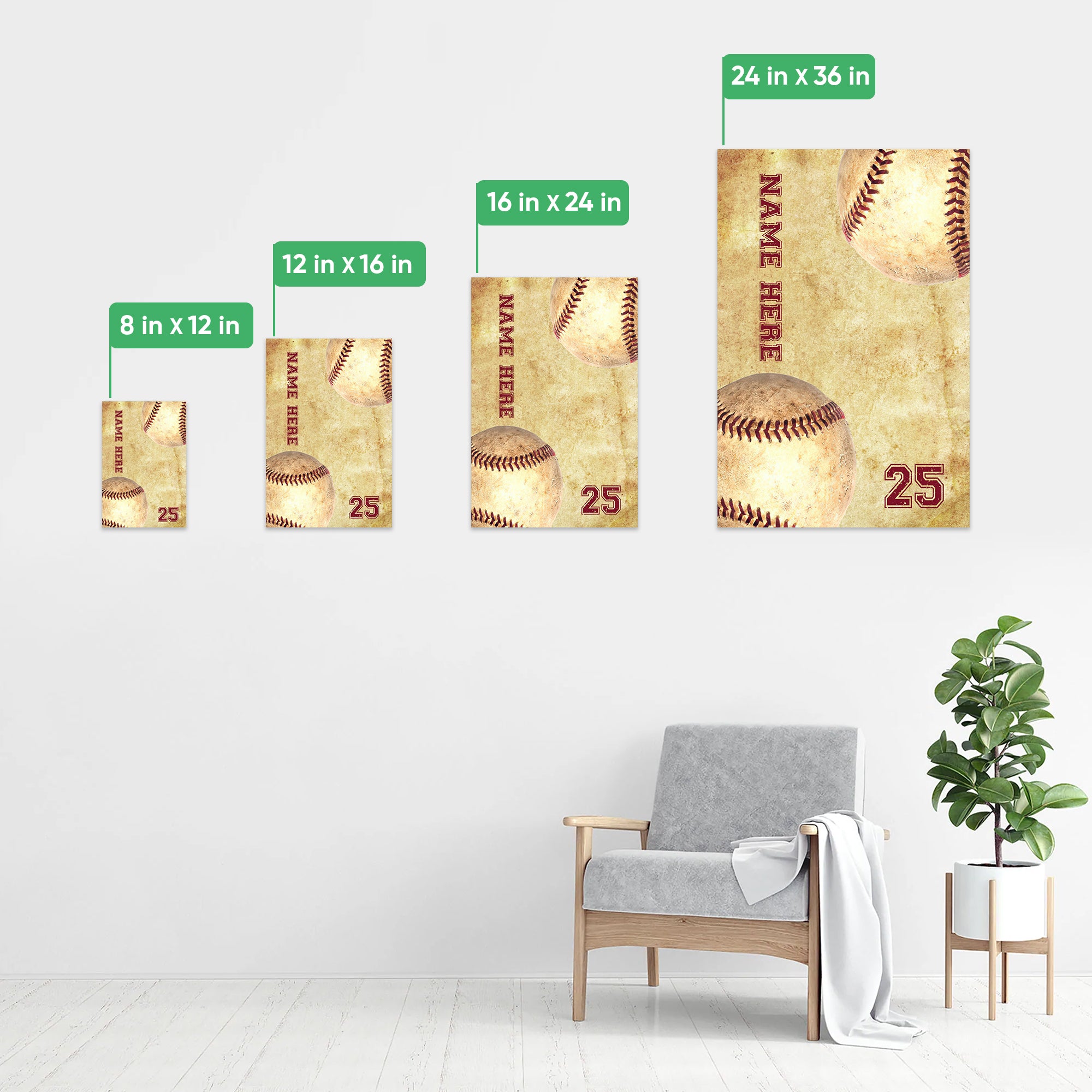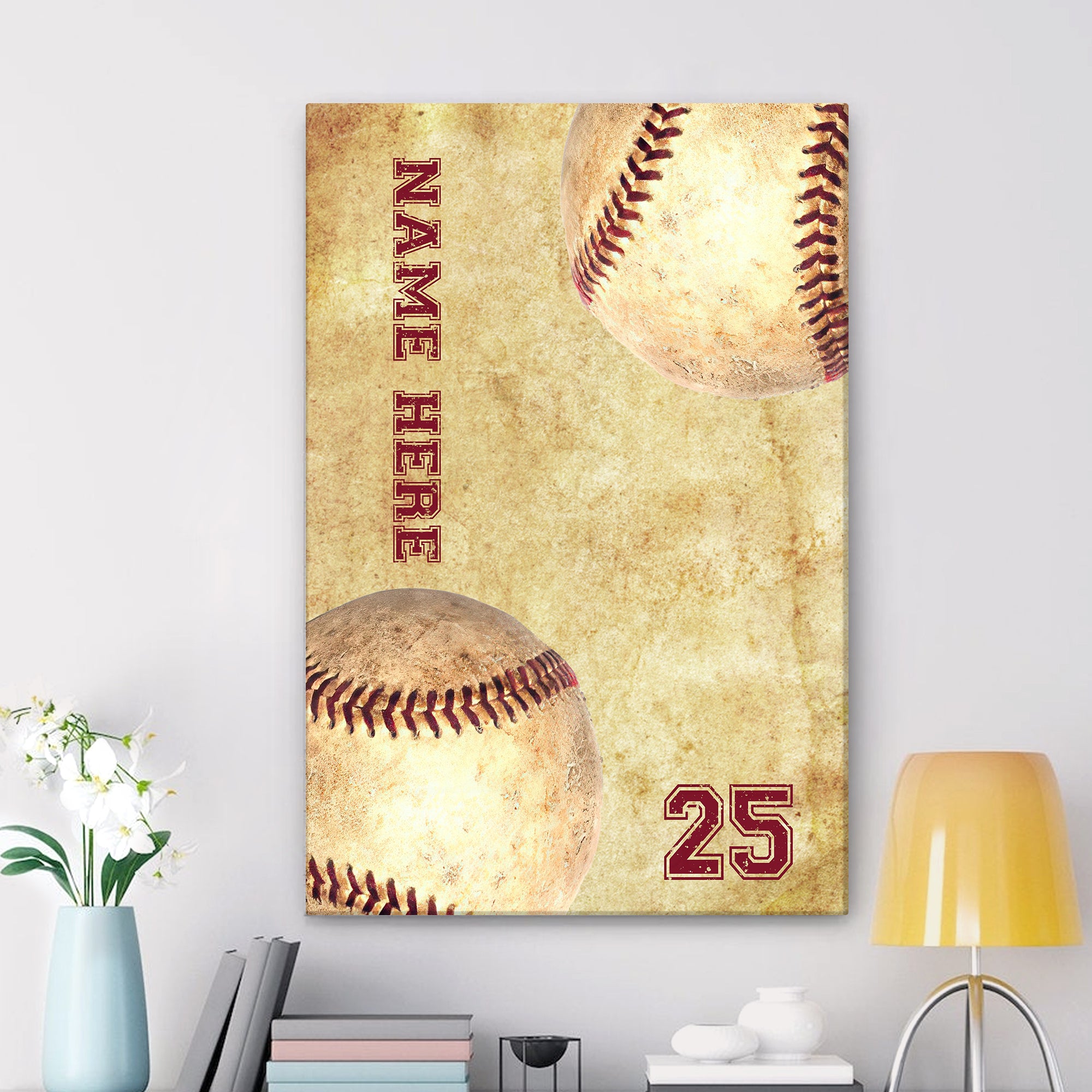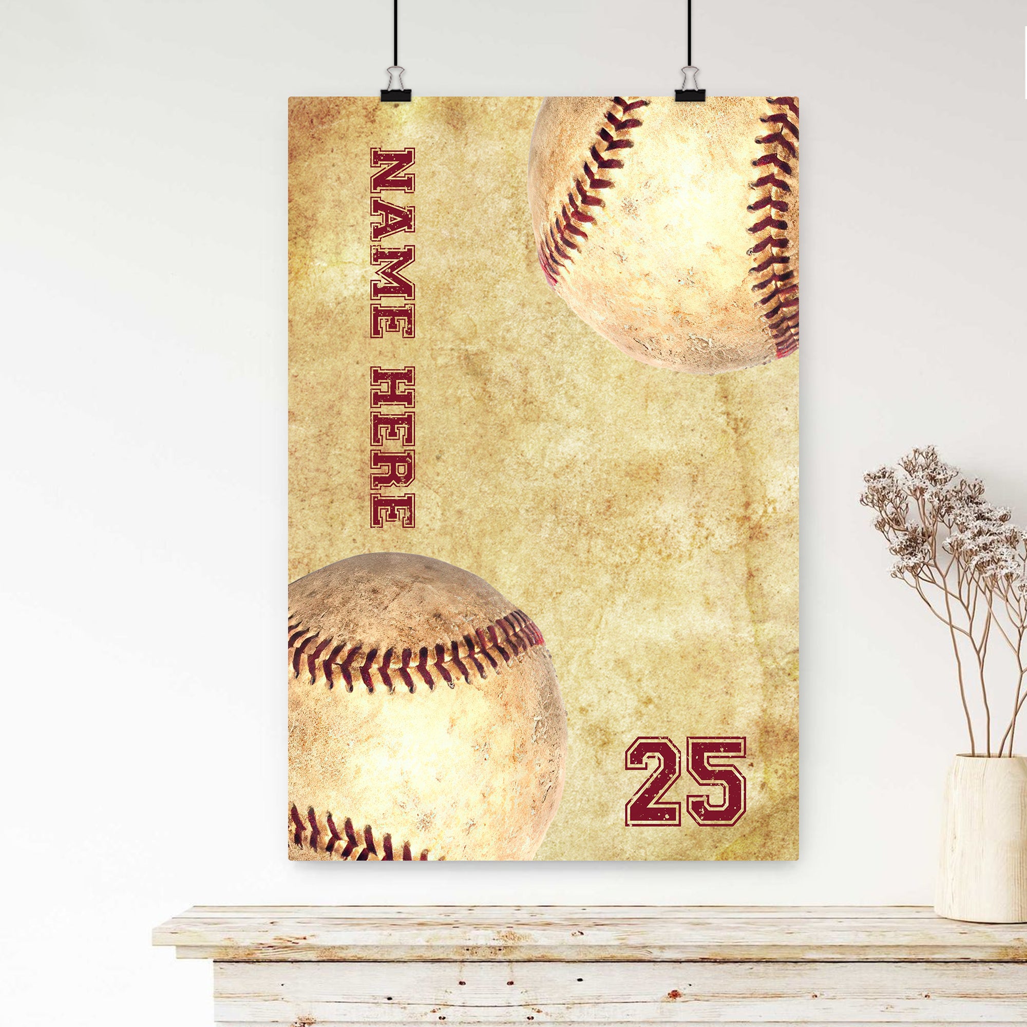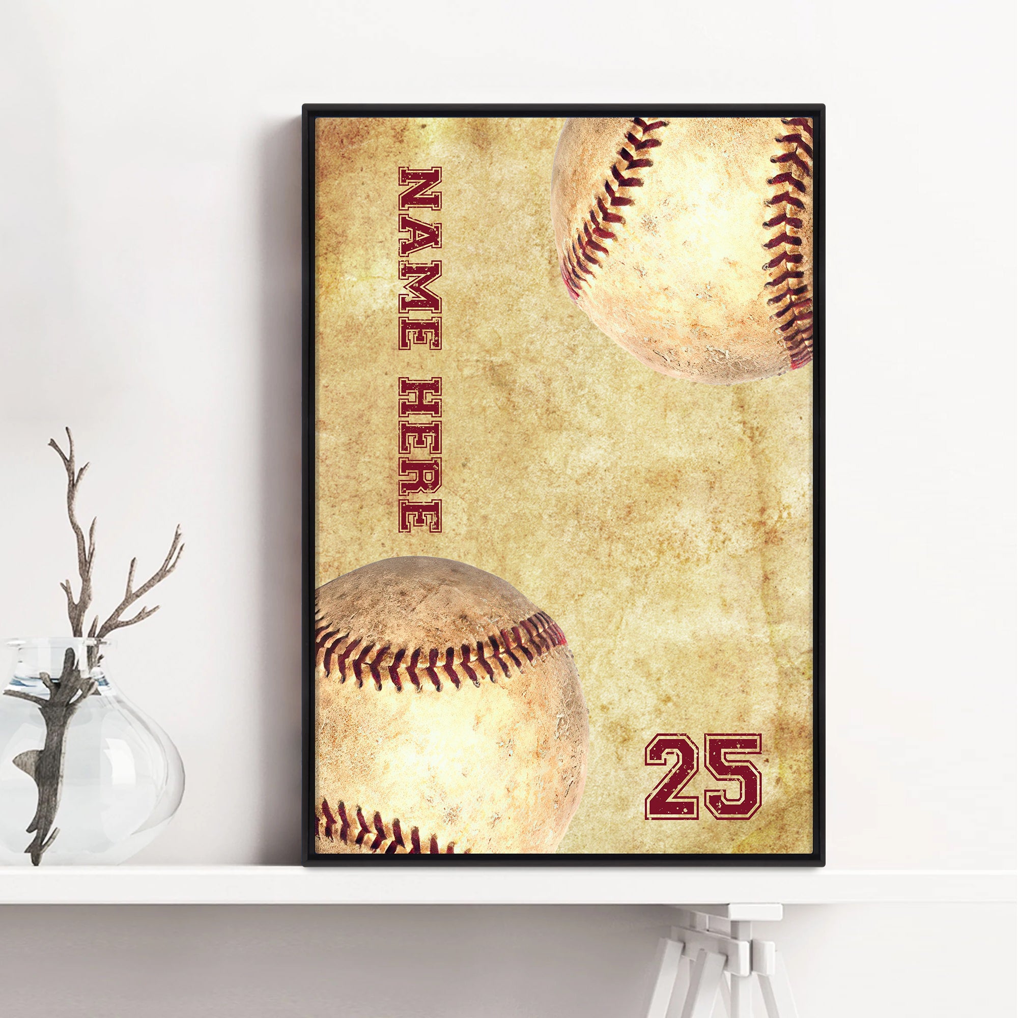 Personalized Baseball Poster & Canvas, Baseball Dirty Ball Vintage Wall Art, Custom Name Number Home Decor For Son, Boy From Mom, Dad
