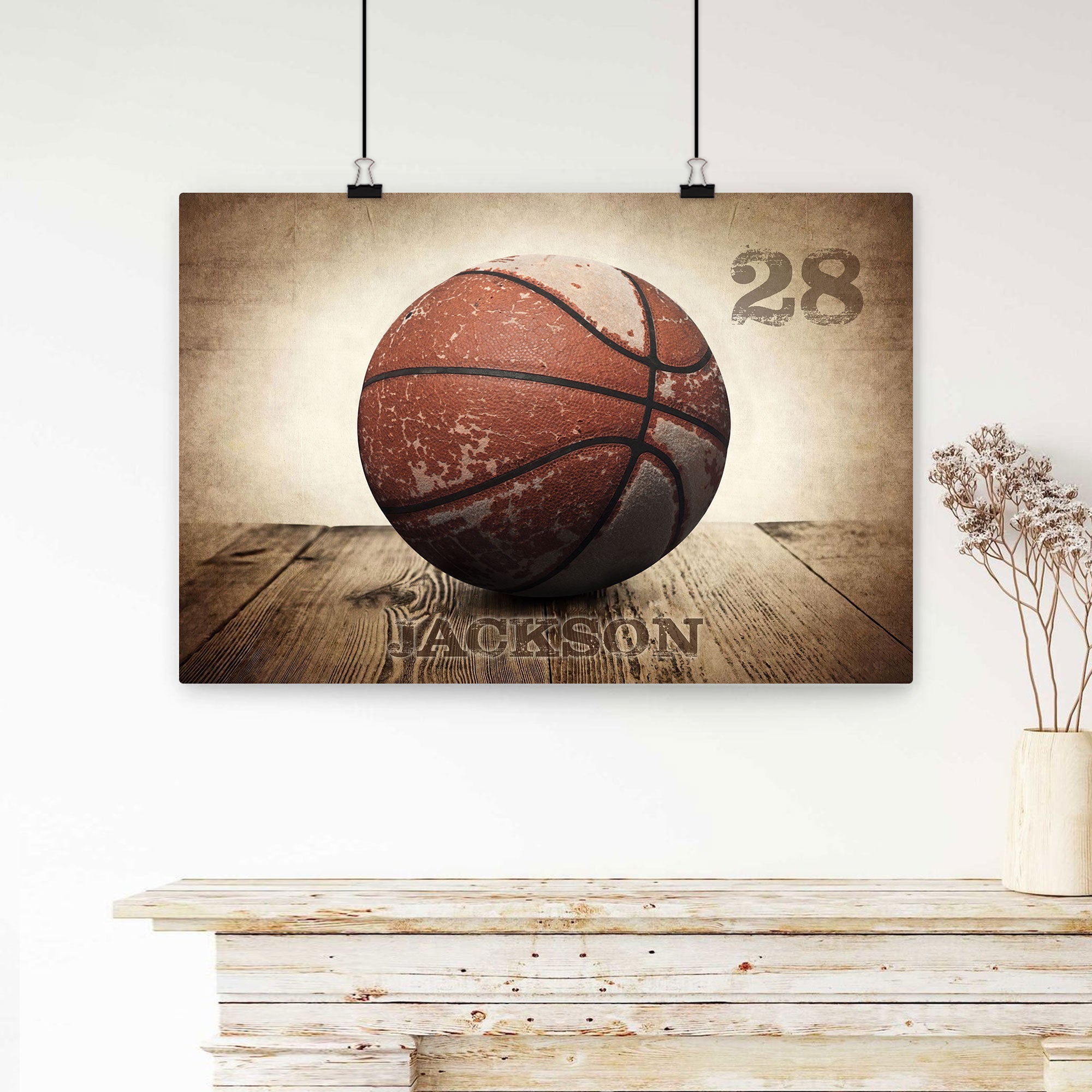 Personalized Basketball Poster & Canvas, Basketball Ball Vintage Wall Art, Custom Name Number Home Decor For Men, Women, Basketball Player