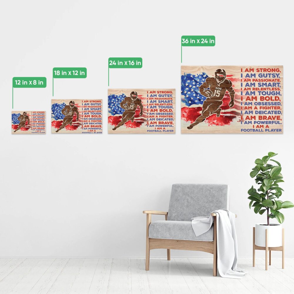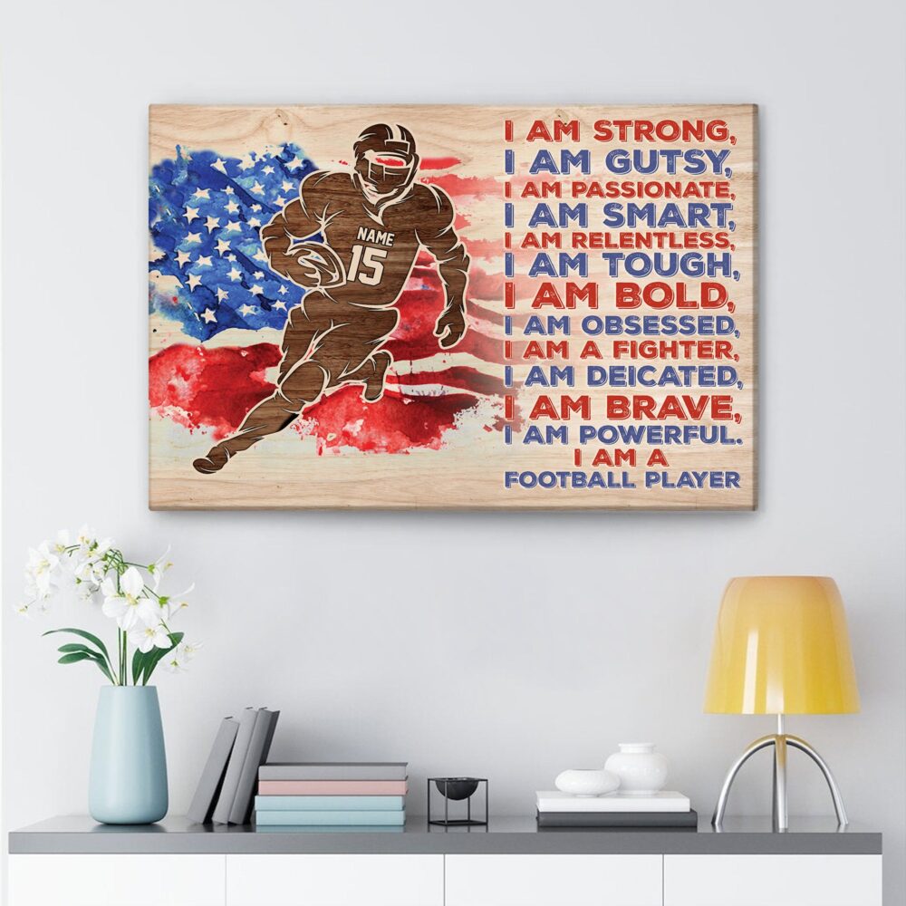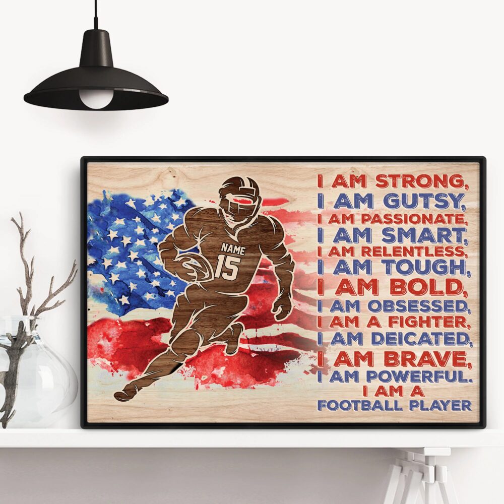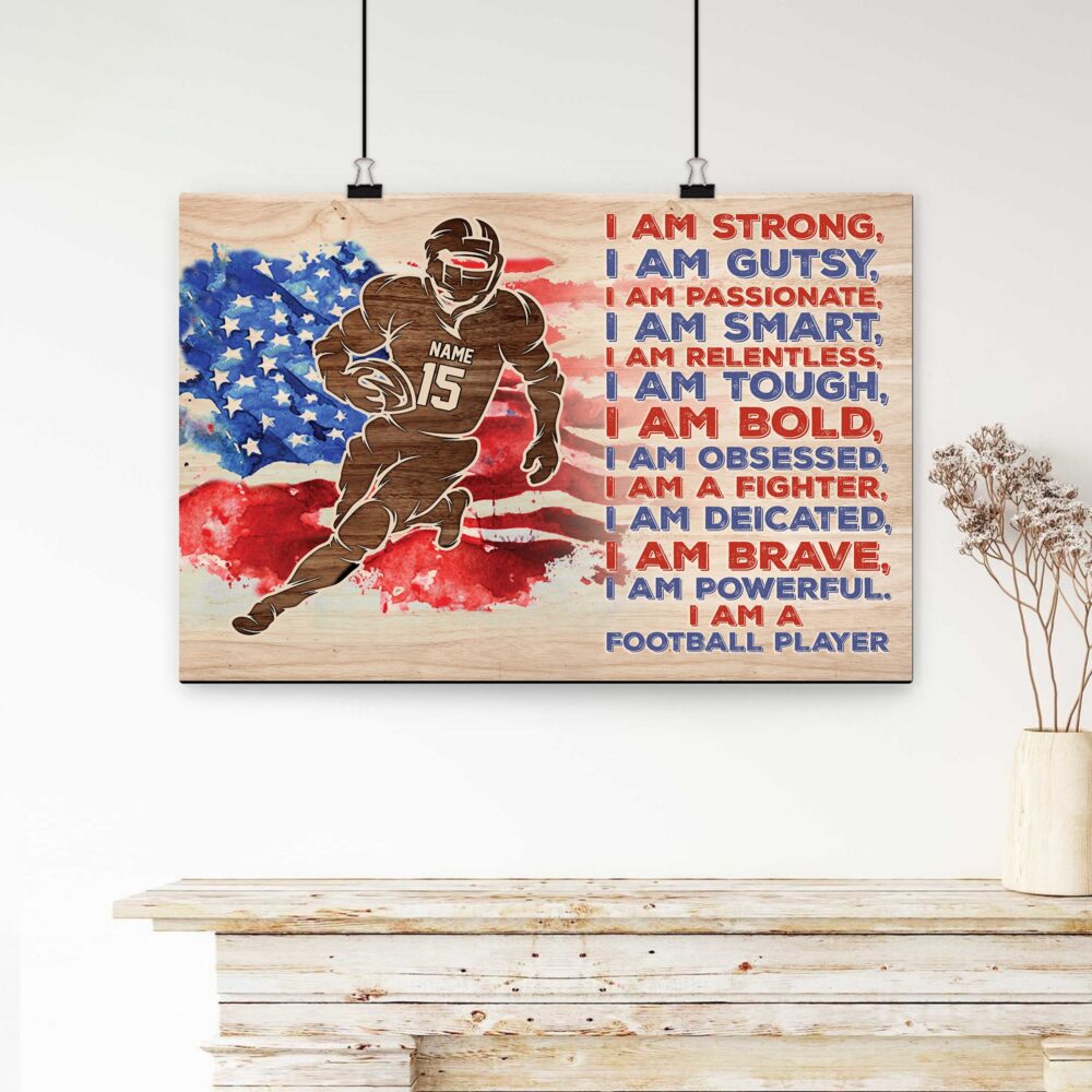 Personalized Football Poster & Canvas, I am A Football Player Wall Art, Custom Name Number Home Decor For Son, Boy, Men