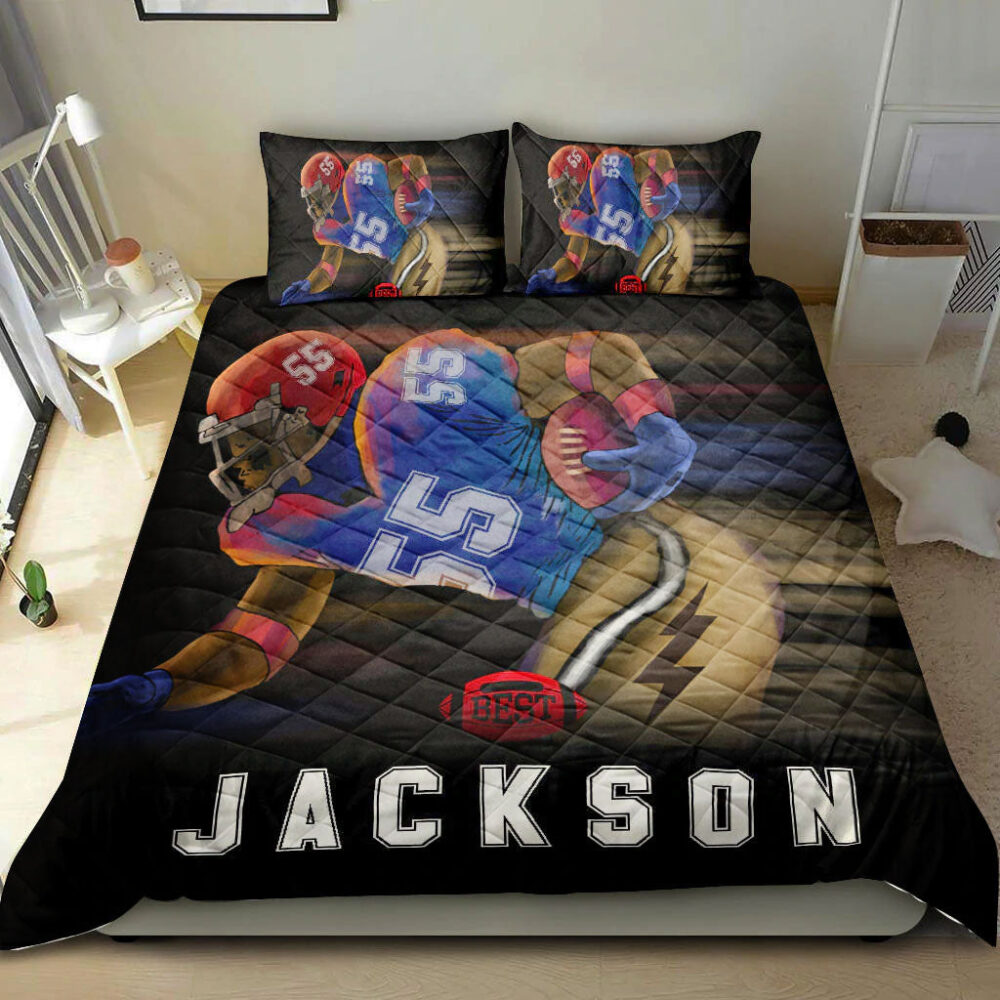 Personalized Football Quilt Set, Football Boy Running Quilt Blanket With Pillowcases, Custom Name and Number Quilt Bedding Set