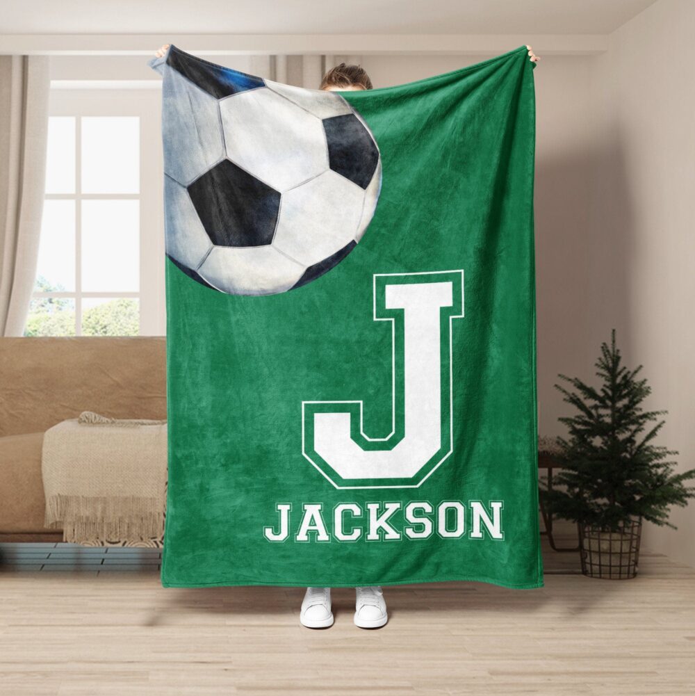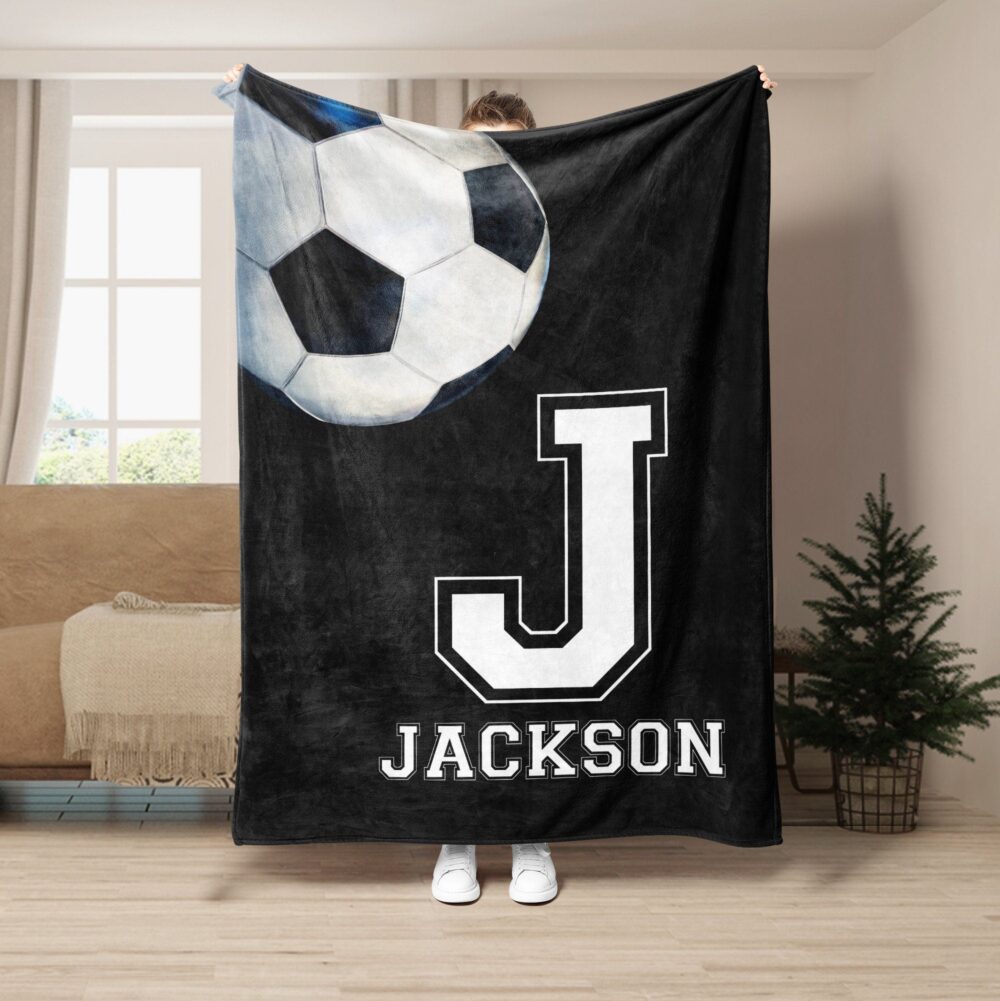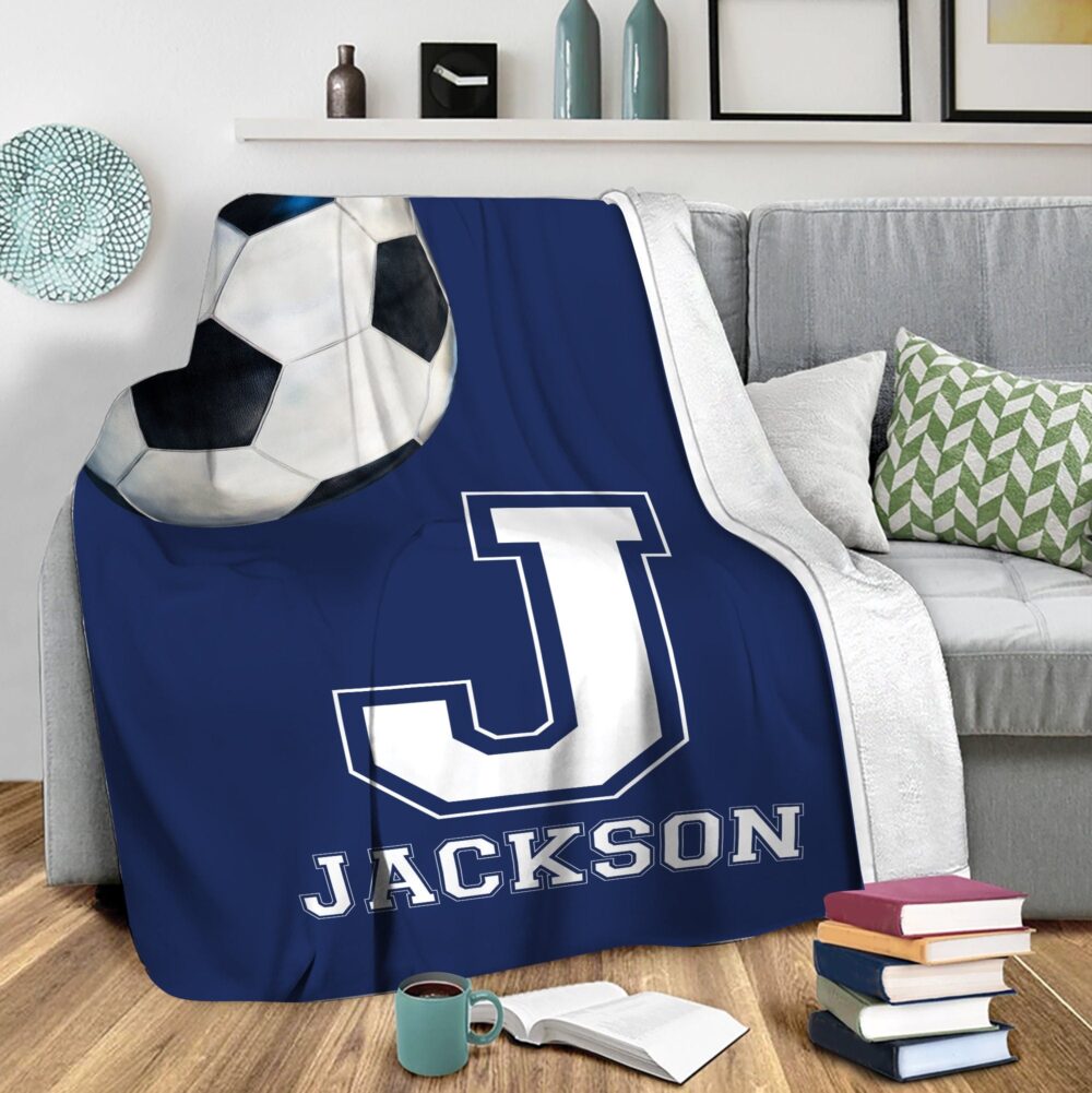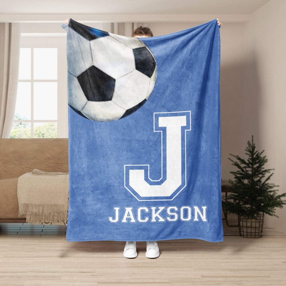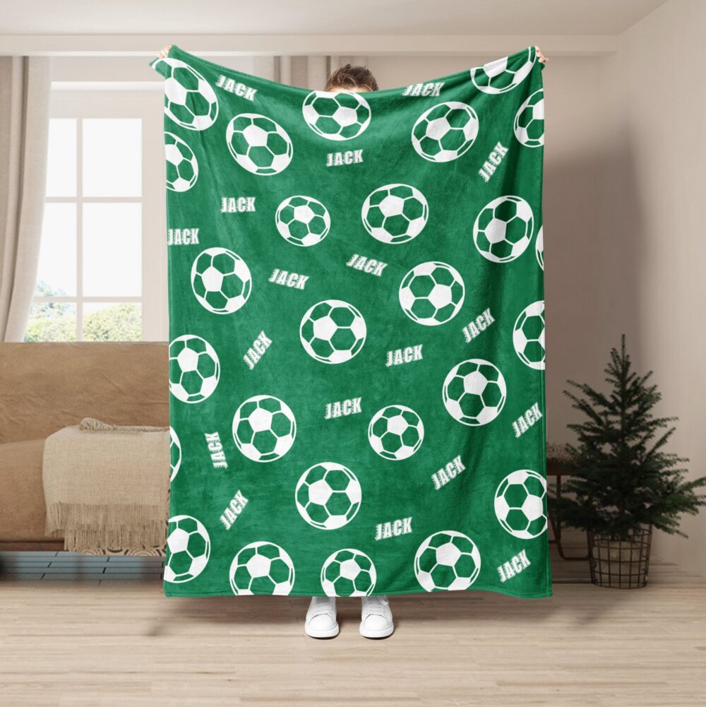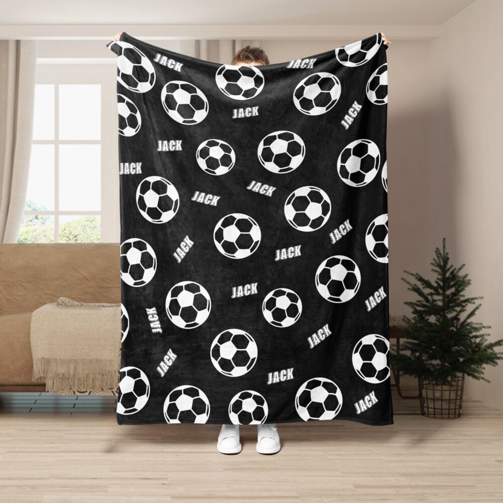 Personalized Soccer Blanket, Custom Name Soft Cozy Sherpa Fleece Throw Blankets, Sport Gift for Dad, Husband, Boyfriend, Son, Kid, Team