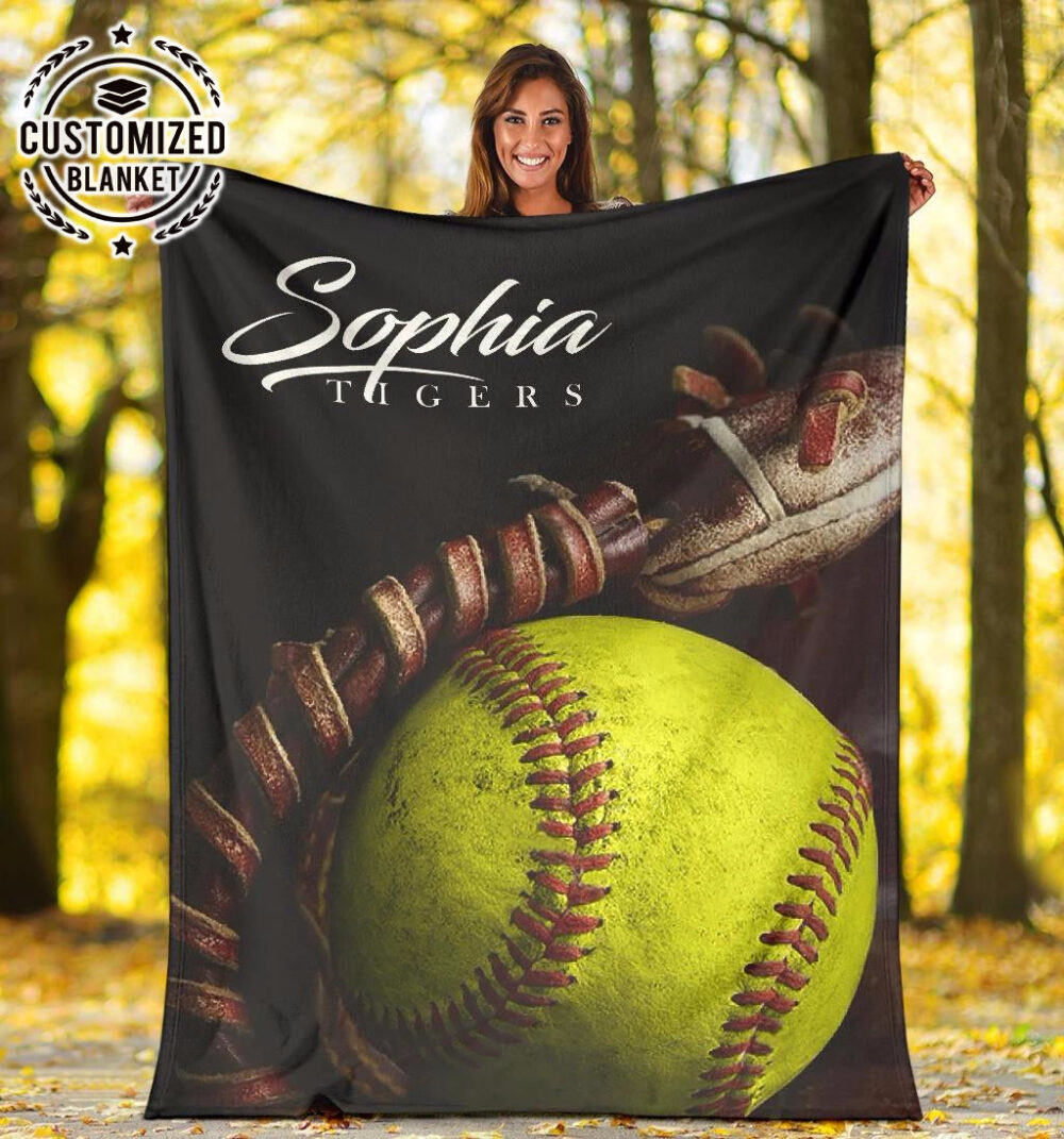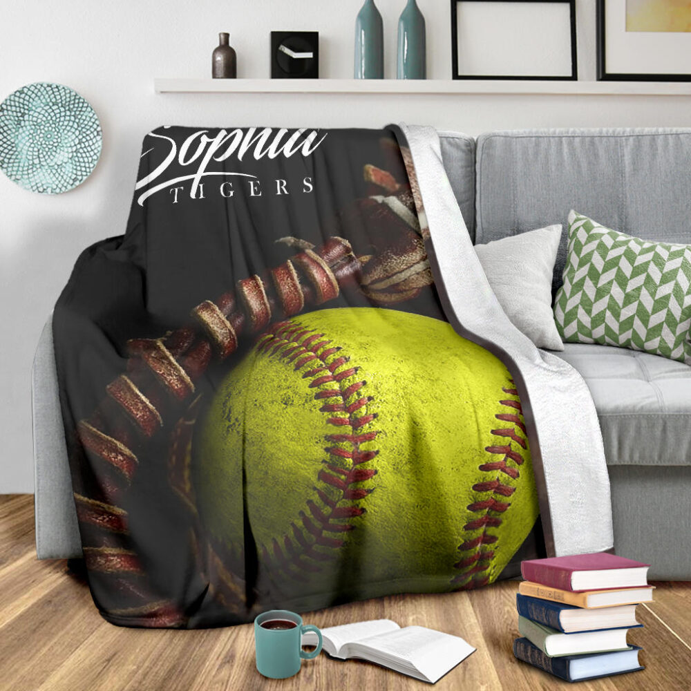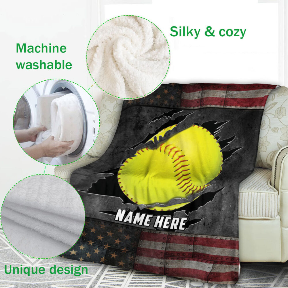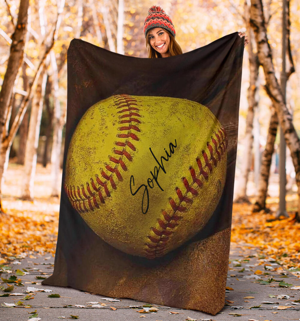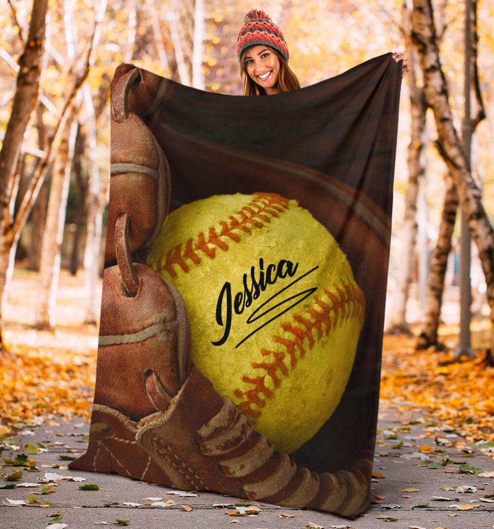 Personalized Softball Blanket, Softball Girl Sherpa Fleece Blanket, Custom Name Soft Cozy Plush Throw Blanket