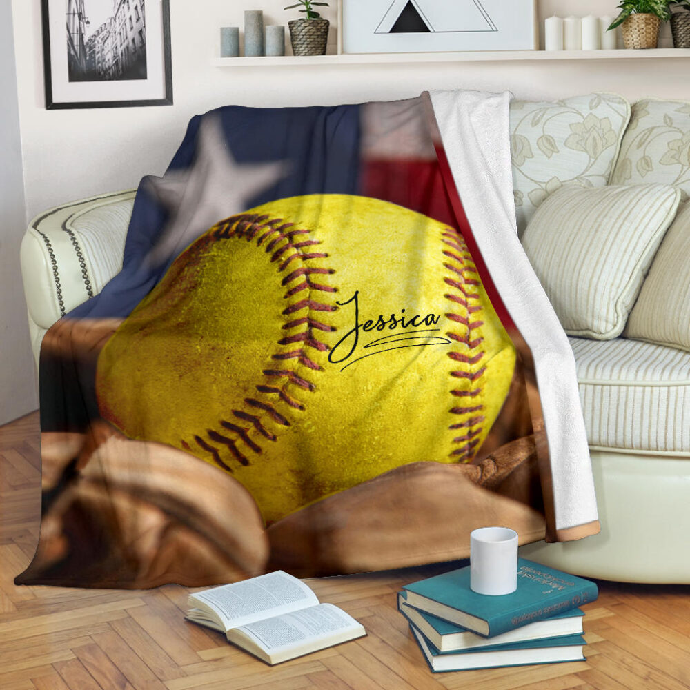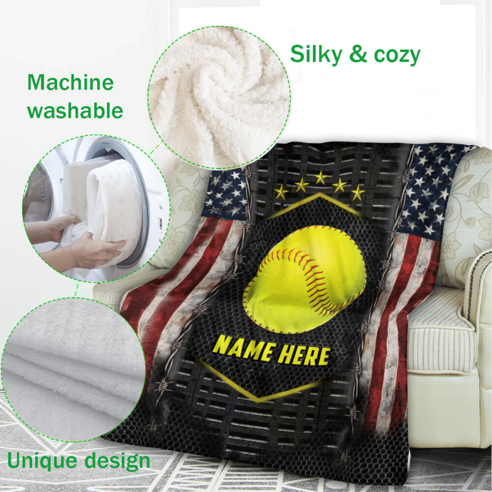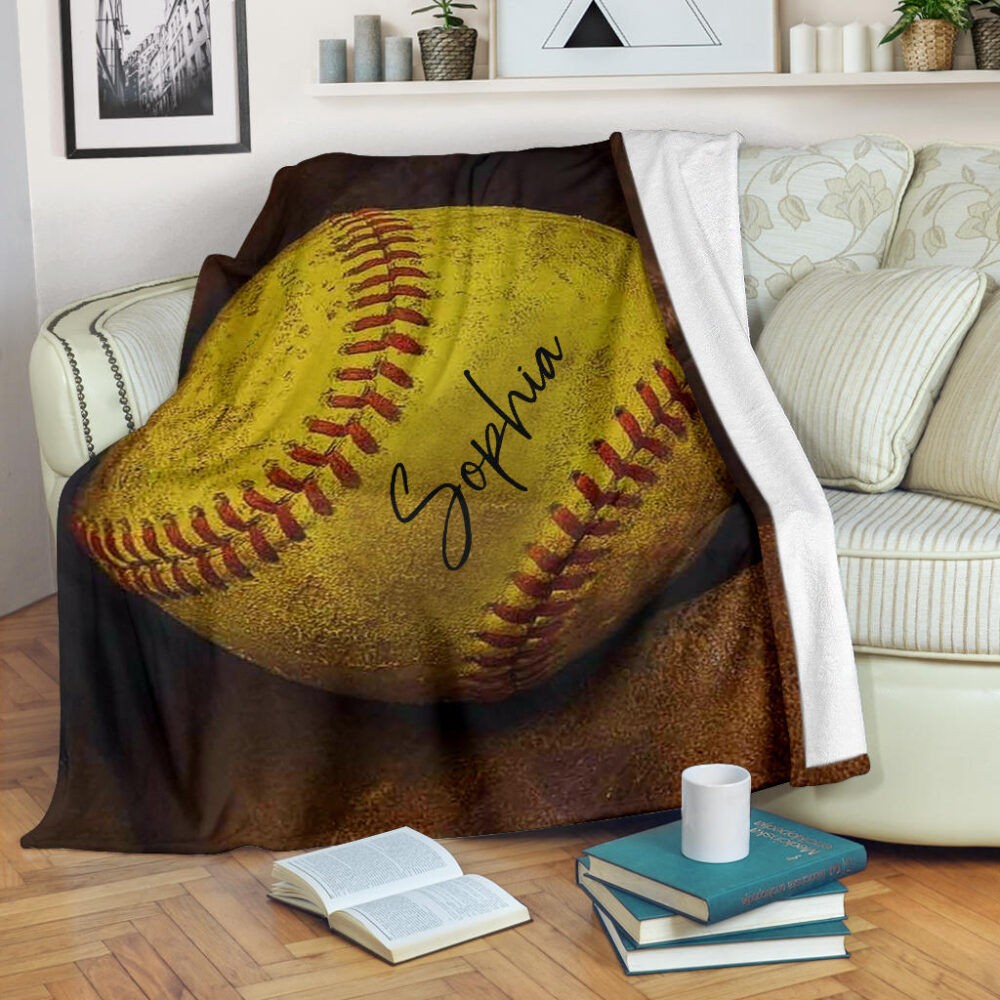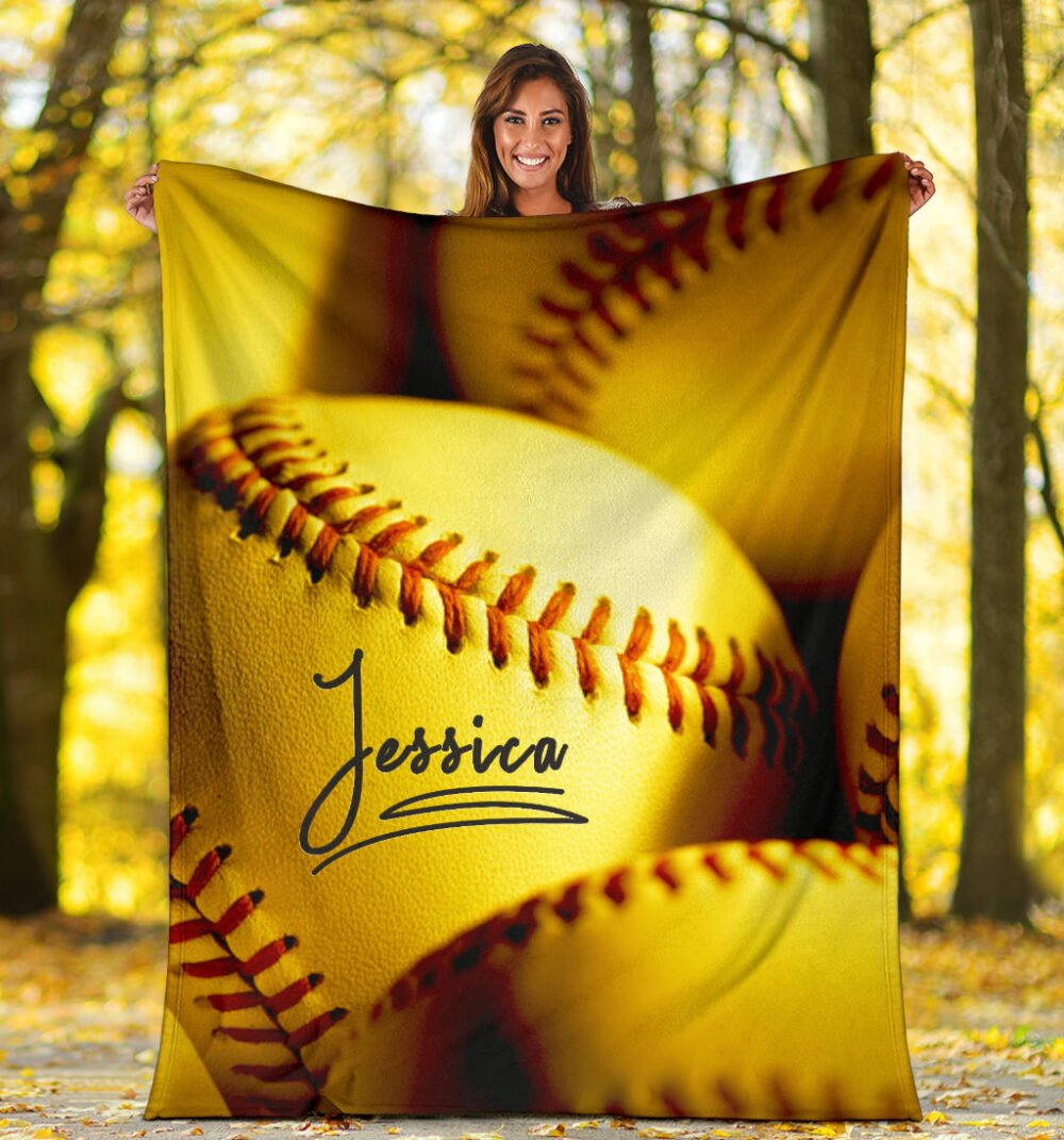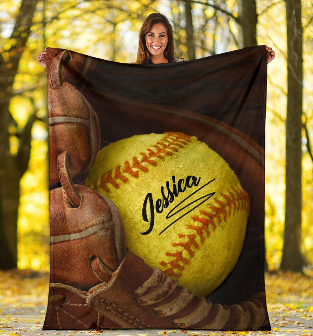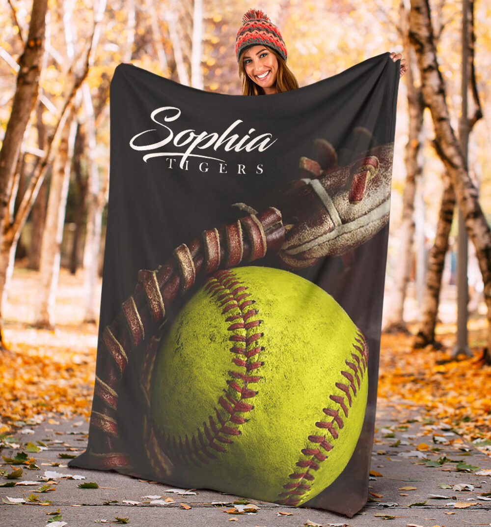 Personalized Softball Blanket, Softball Girl Sherpa Fleece Blanket, Custom Name Soft Cozy Plush Throw Blanket