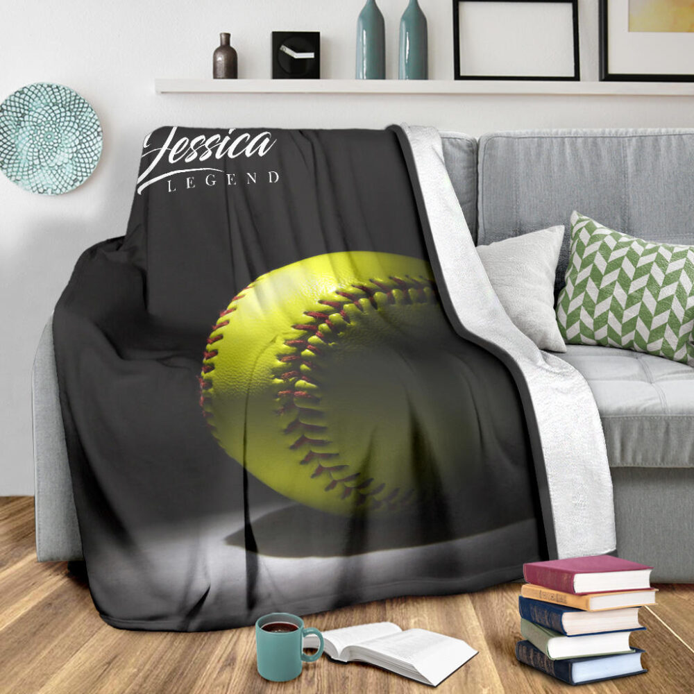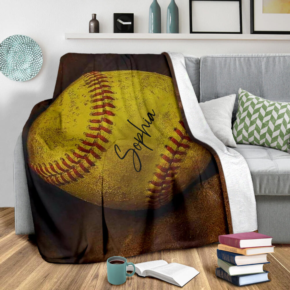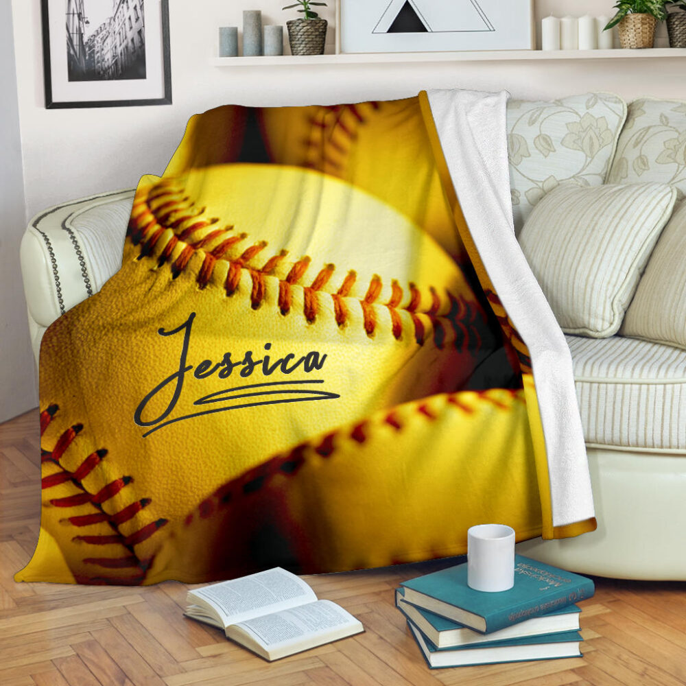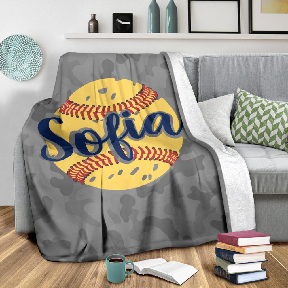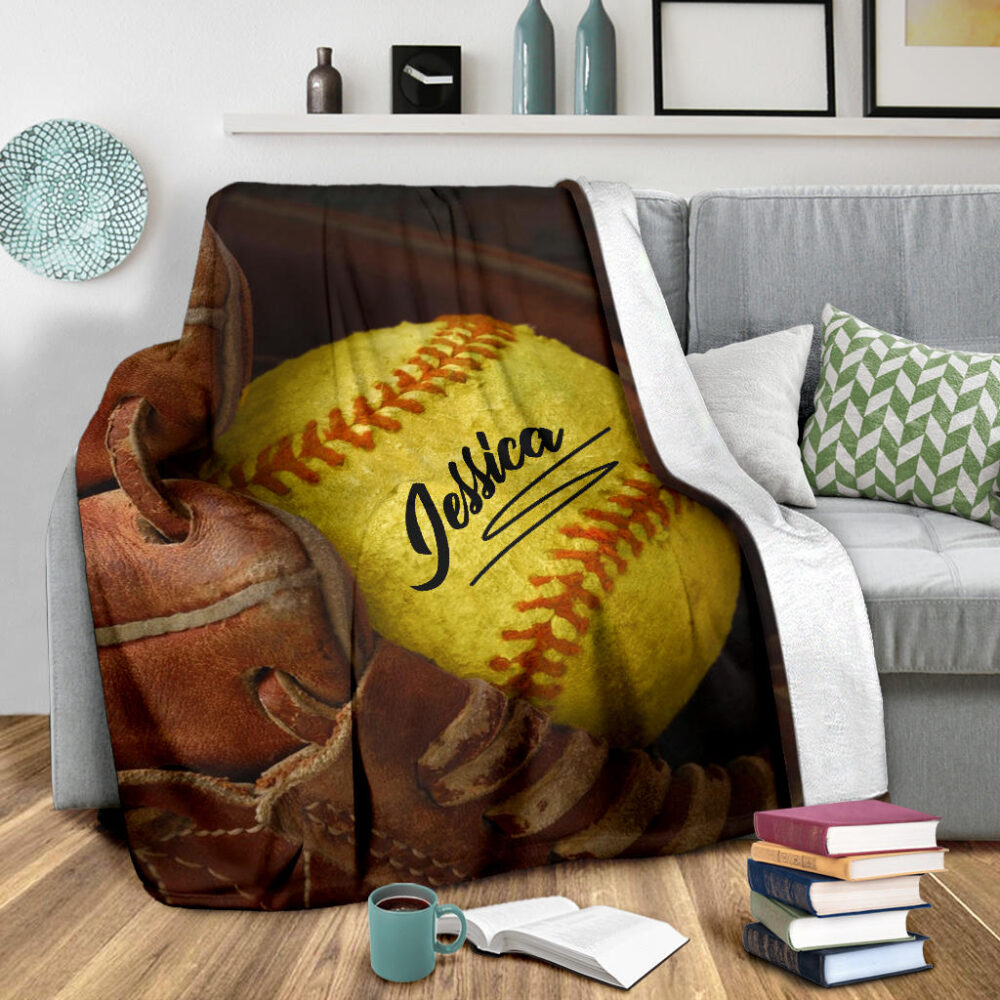 Personalized Softball Blanket, Softball Girl Sherpa Fleece Blanket, Custom Name Soft Cozy Plush Throw Blanket