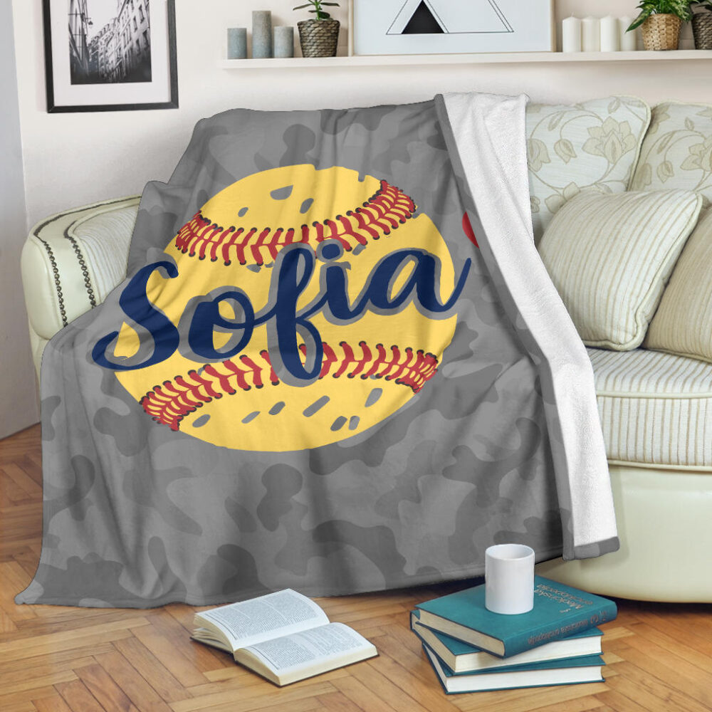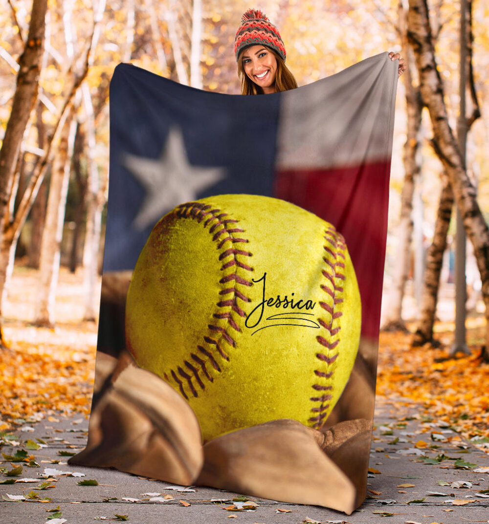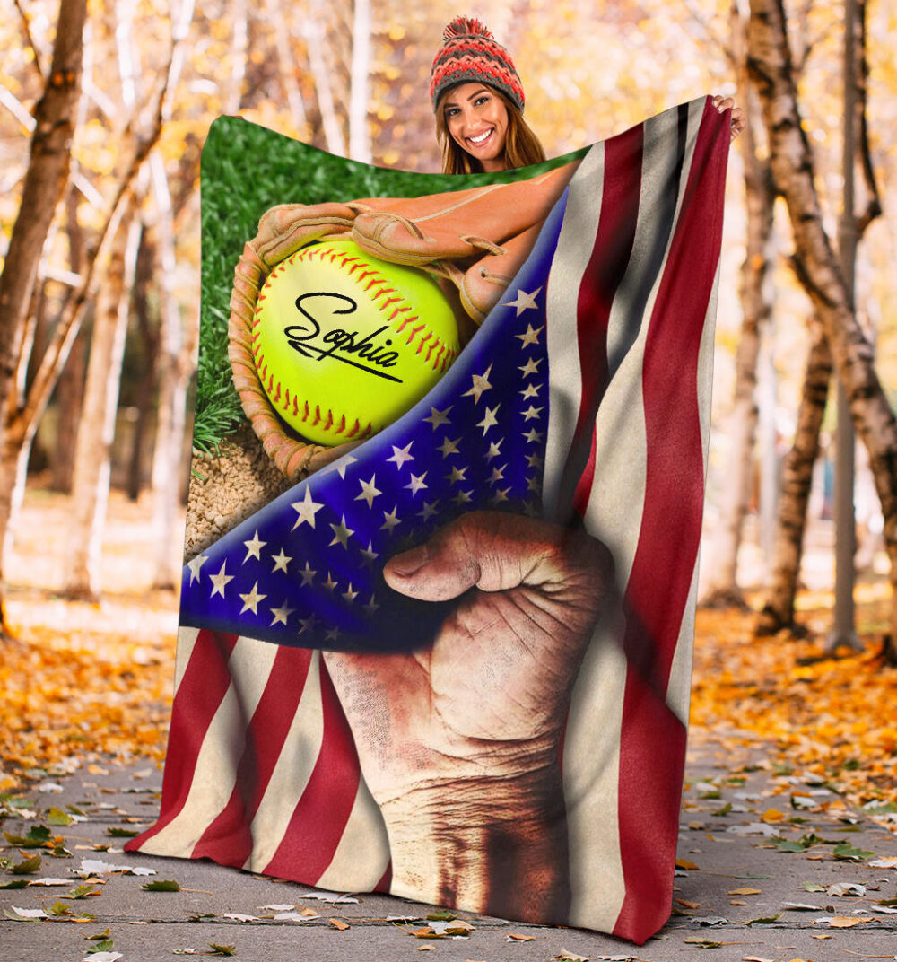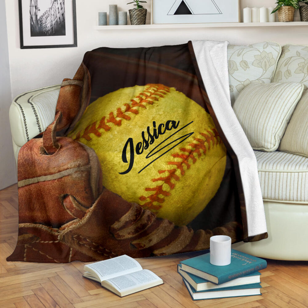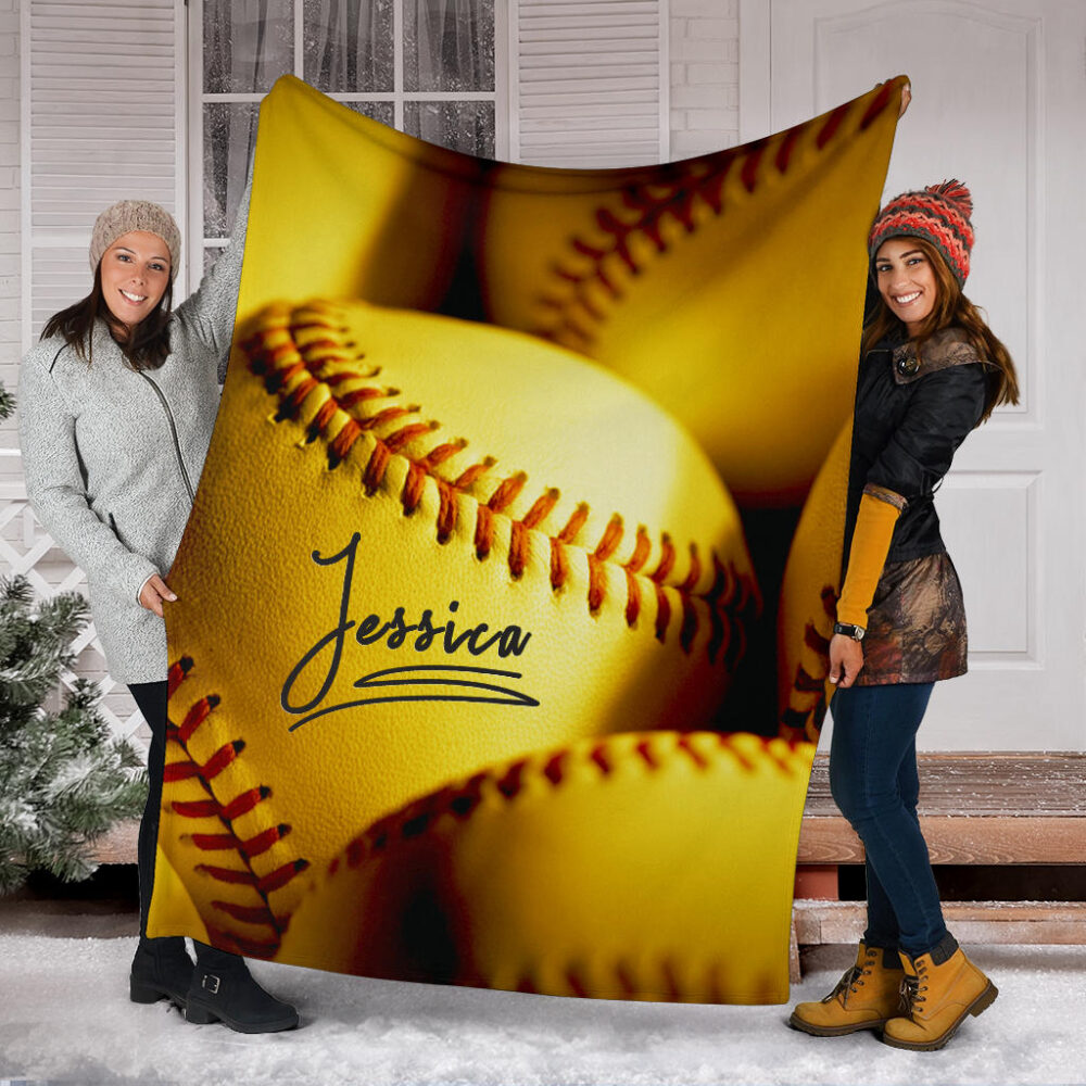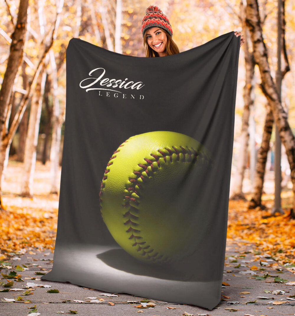 Personalized Softball Blanket, Softball Girl Sherpa Fleece Blanket, Custom Name Soft Cozy Plush Throw Blanket