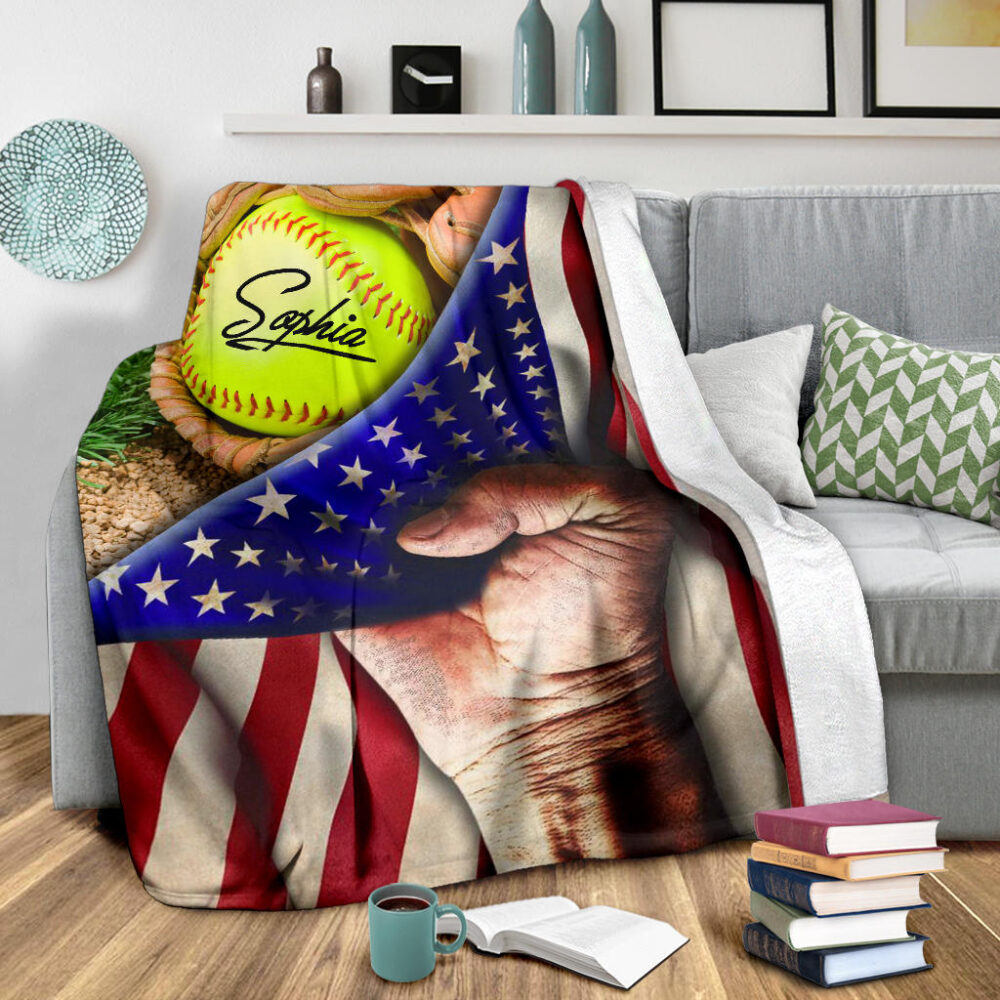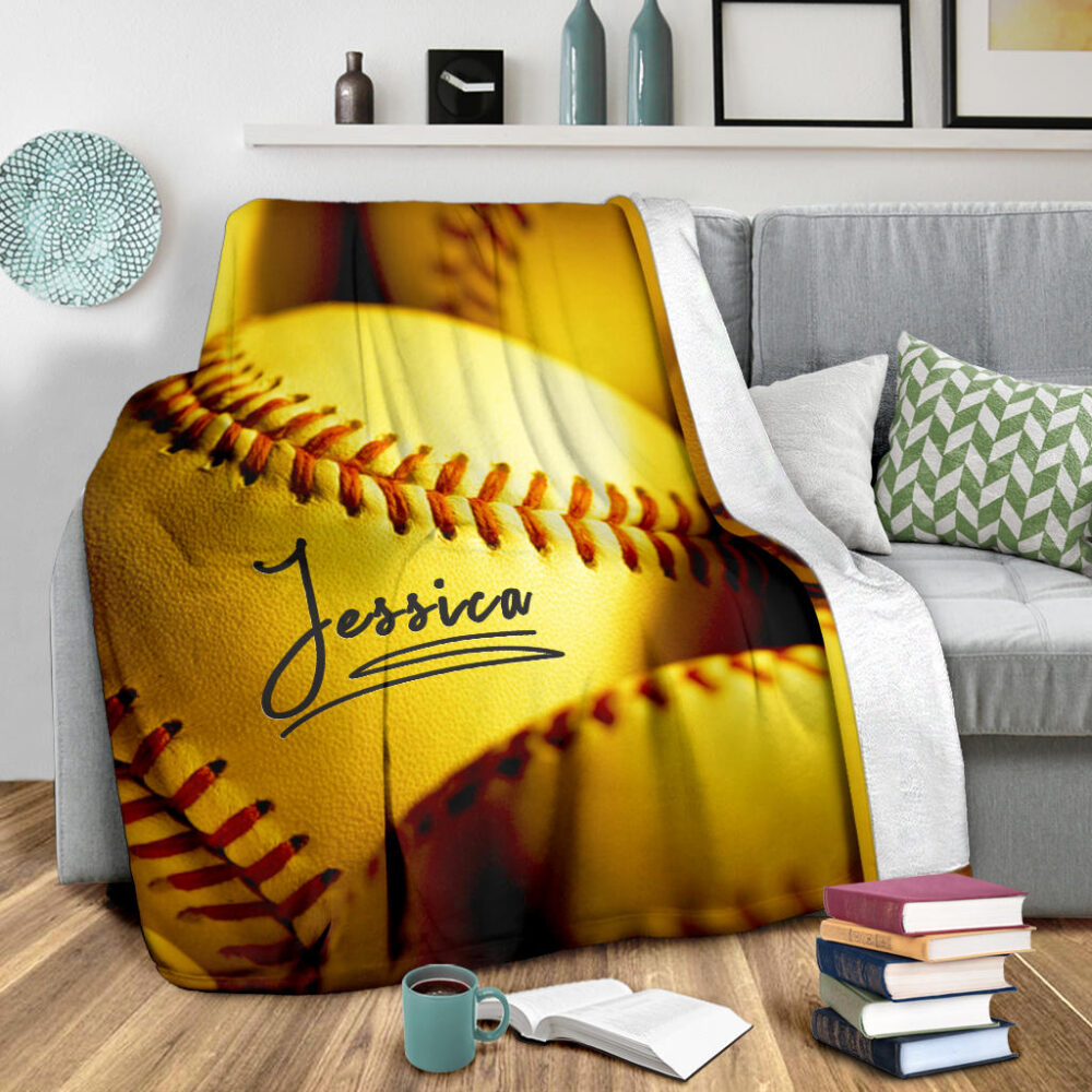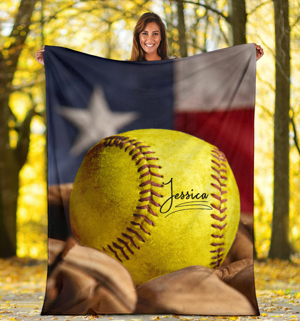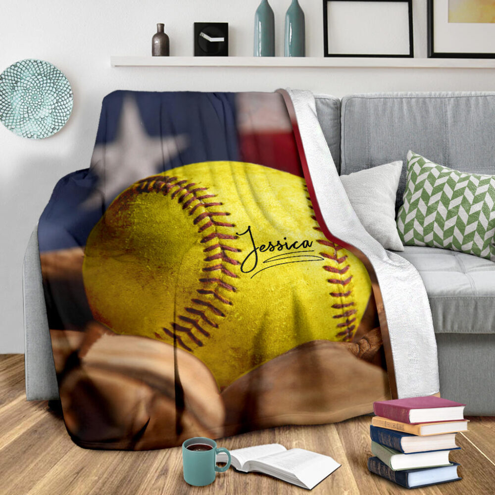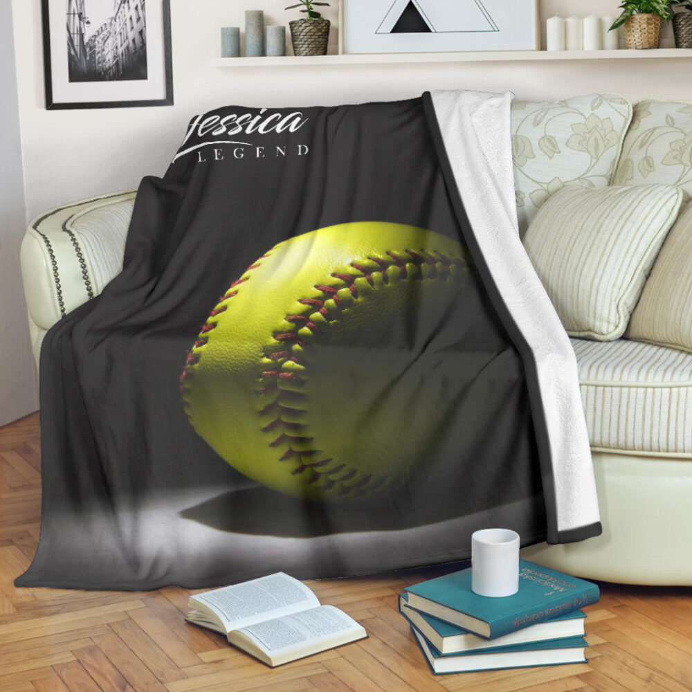 Personalized Softball Blanket, Softball Girl Sherpa Fleece Blanket, Custom Name Soft Cozy Plush Throw Blanket