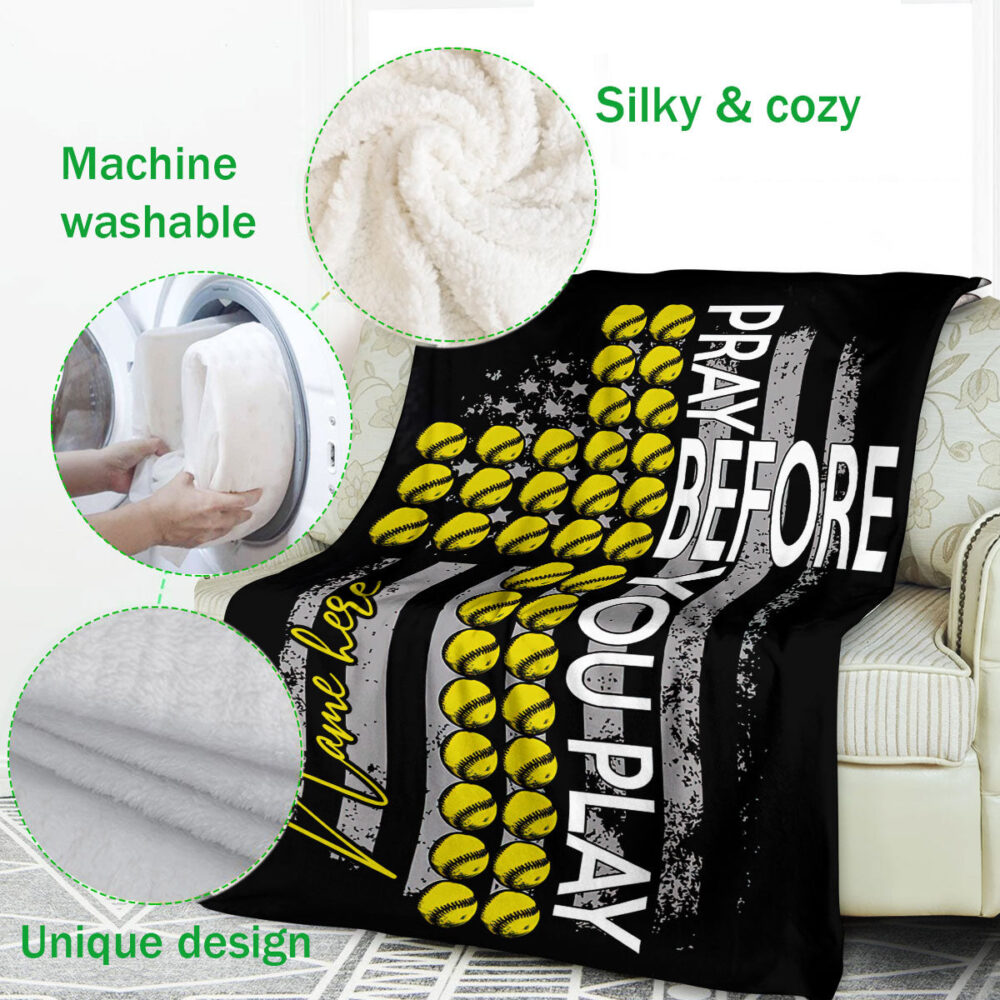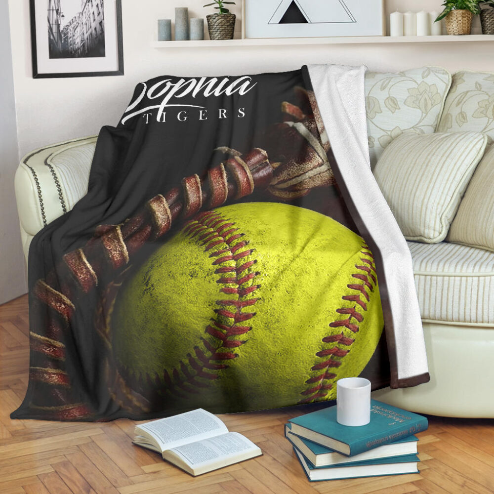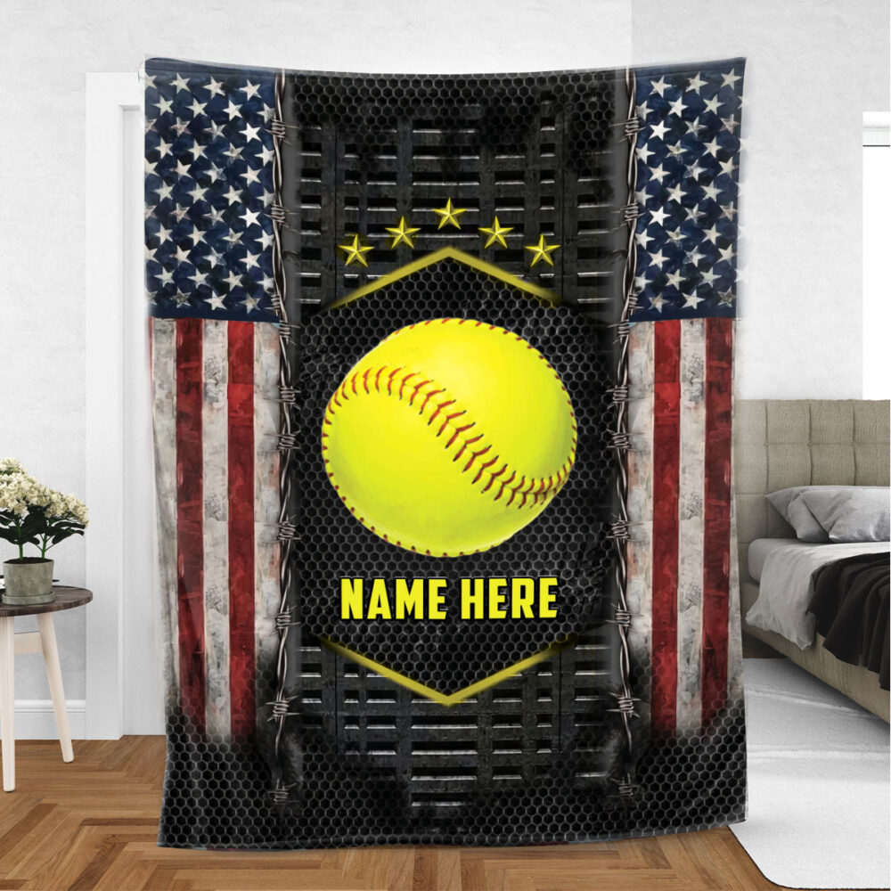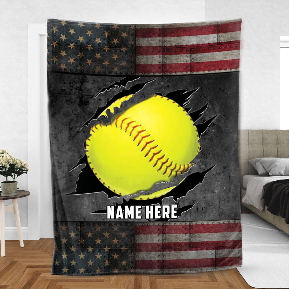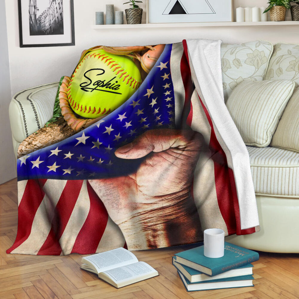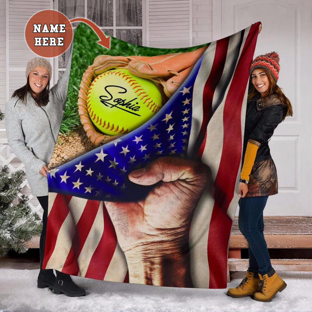 Personalized Softball Blanket, Softball Girl Sherpa Fleece Blanket, Custom Name Soft Cozy Plush Throw Blanket