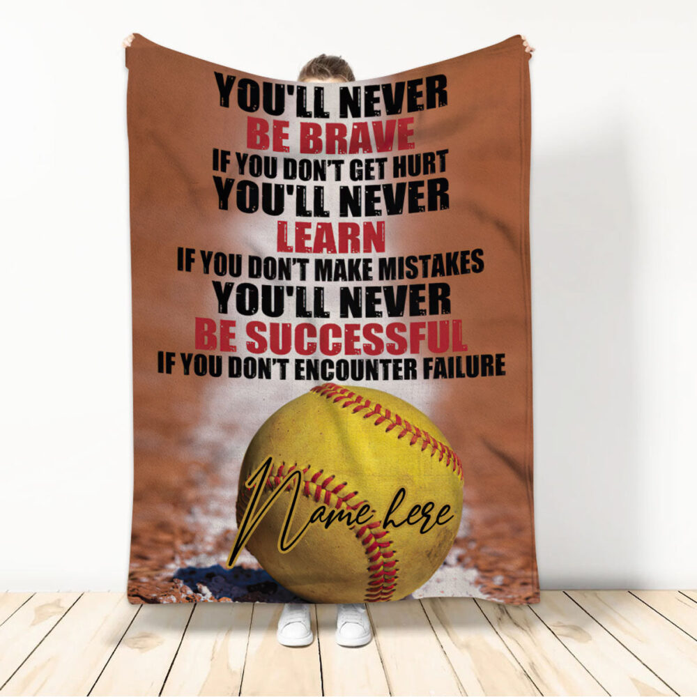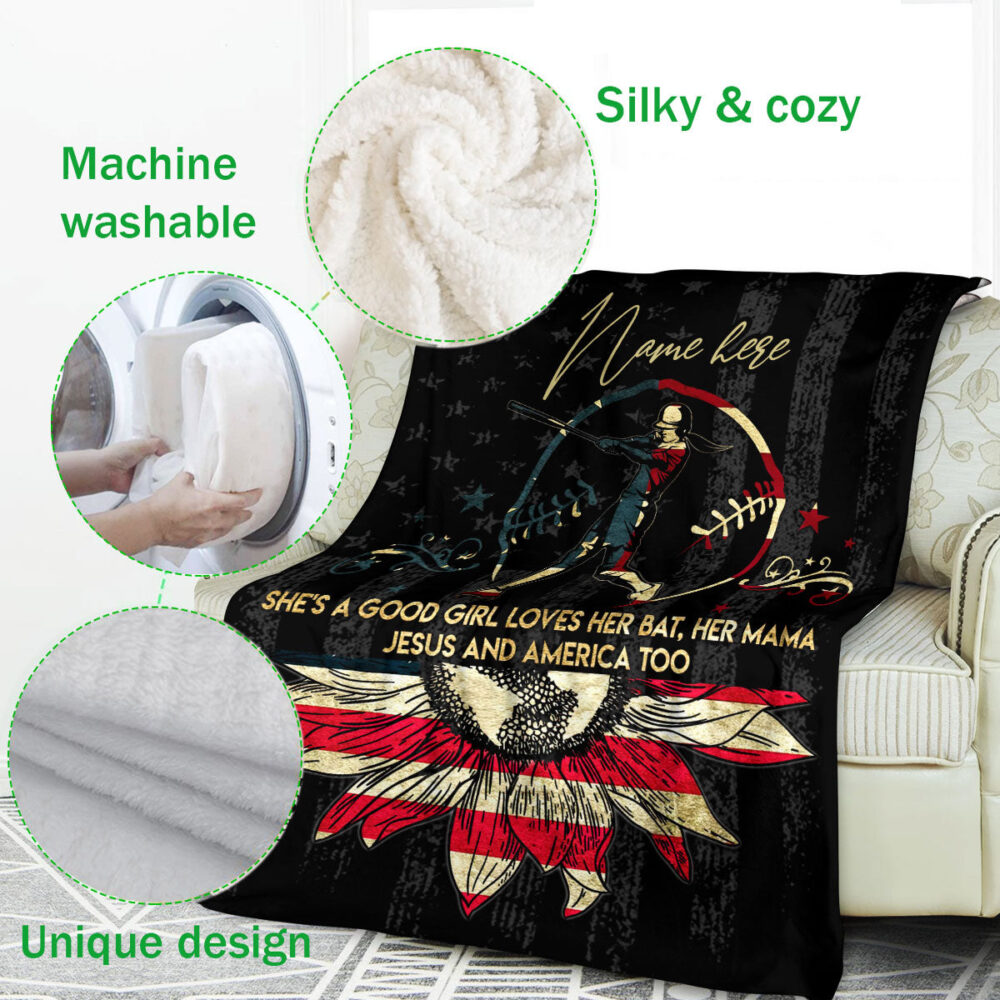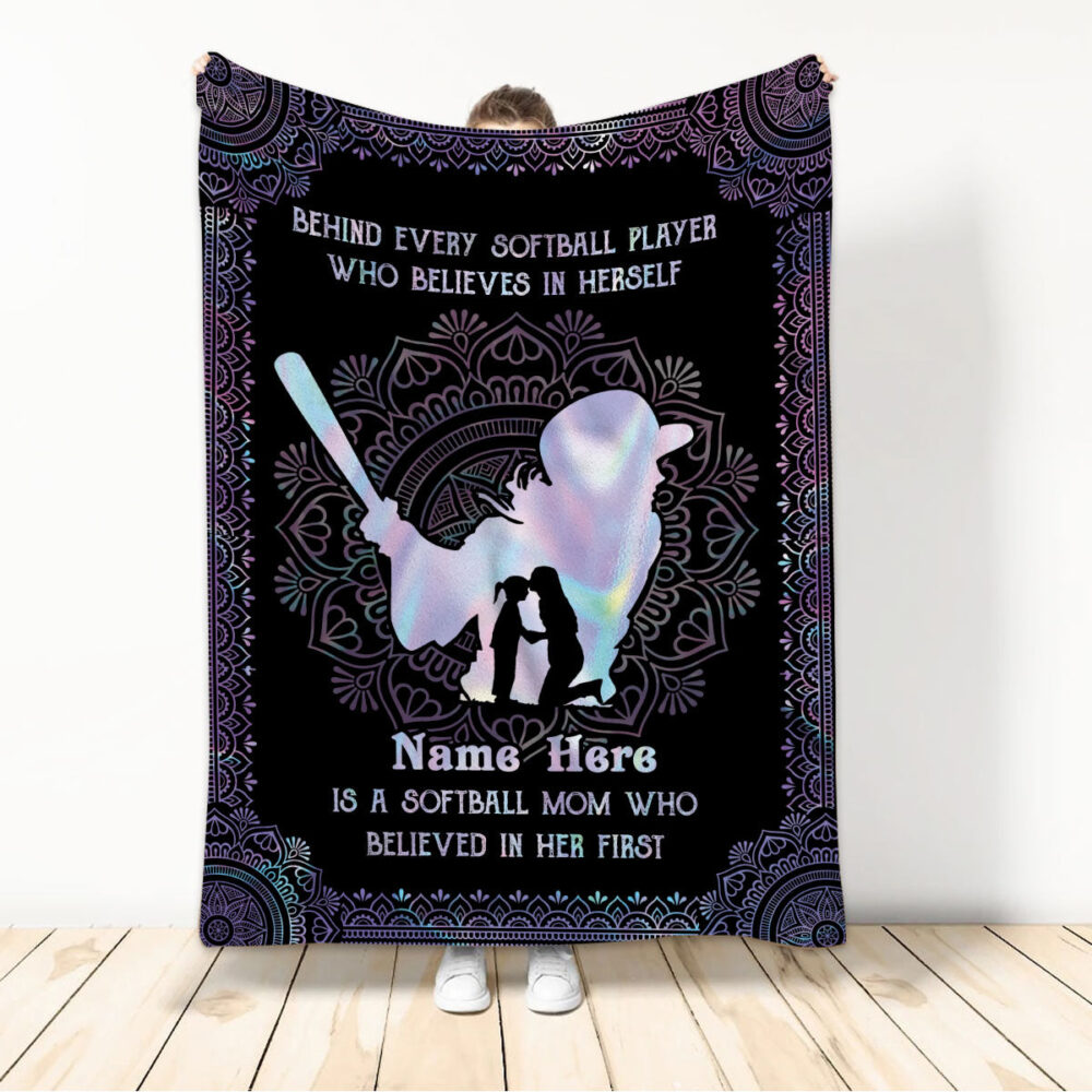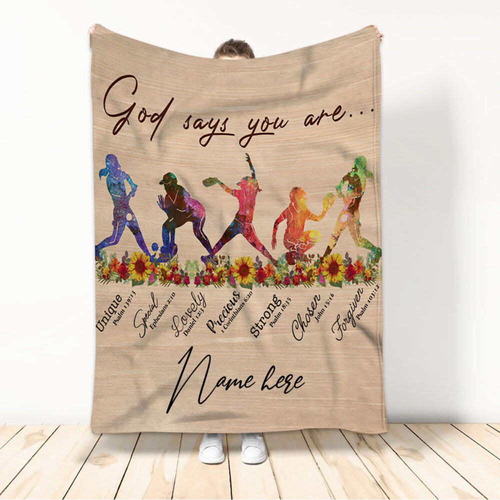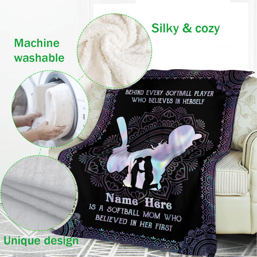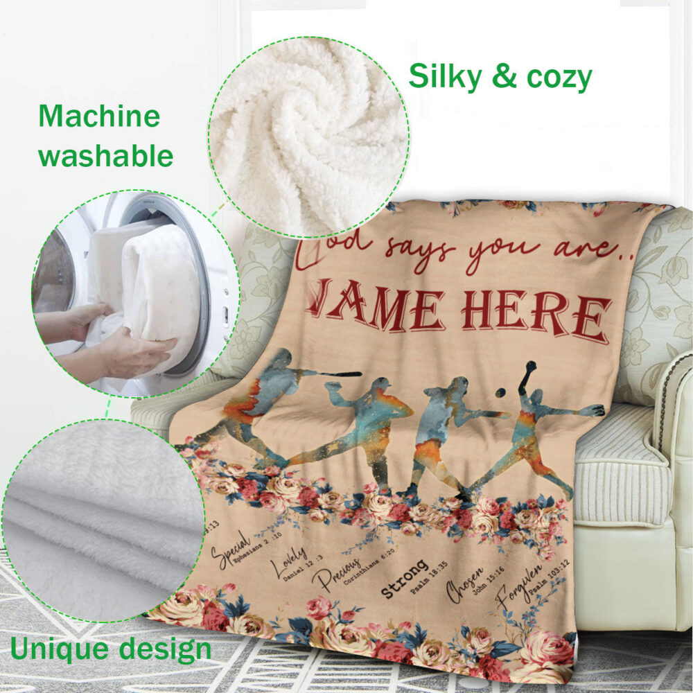 Personalized Softball Blanket, Softball Girl Sherpa Fleece Blanket, Custom Name Soft Cozy Plush Throw Blanket
