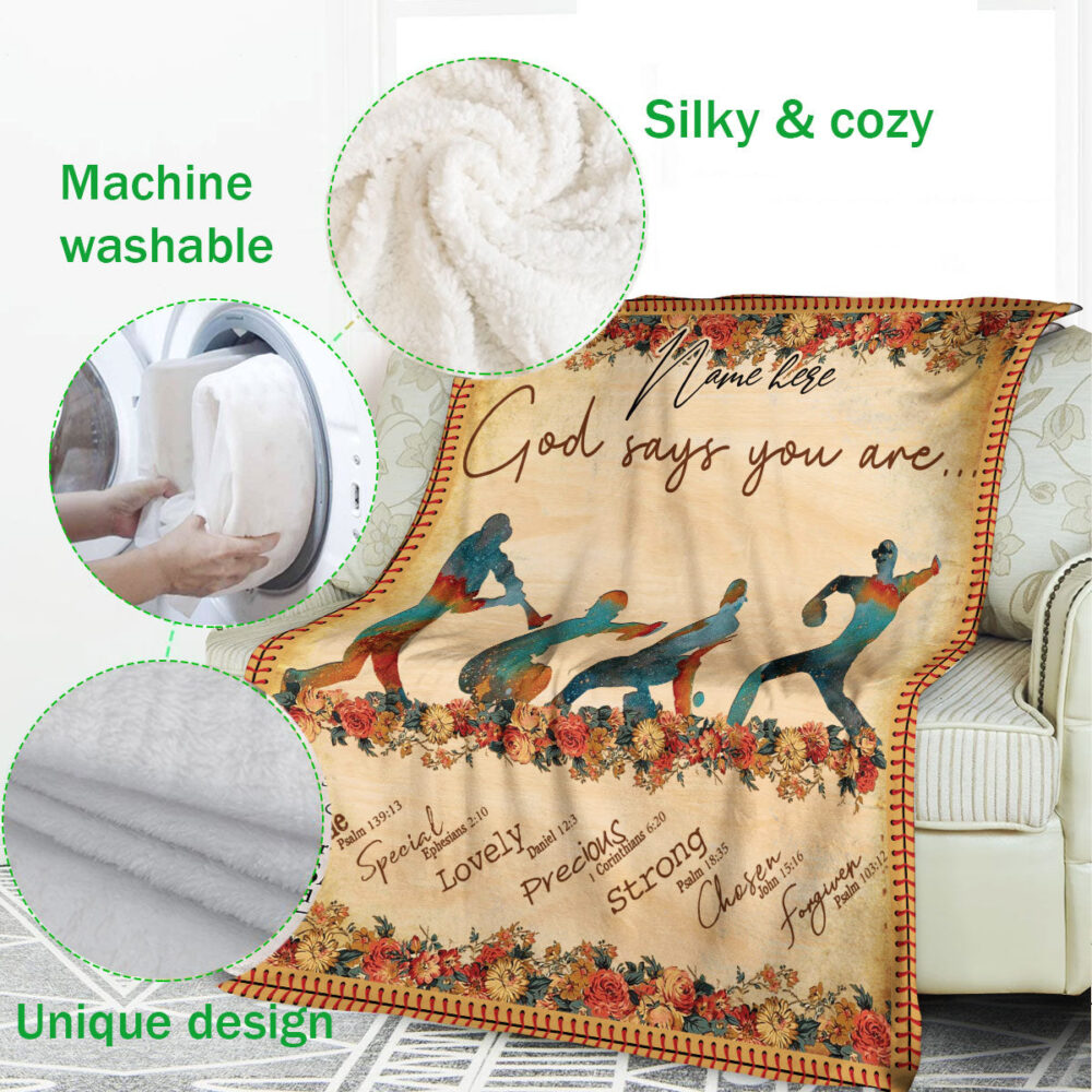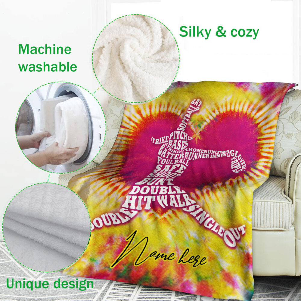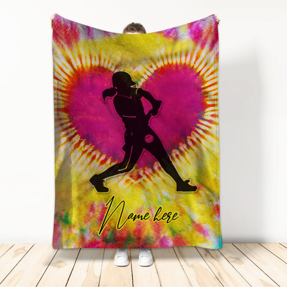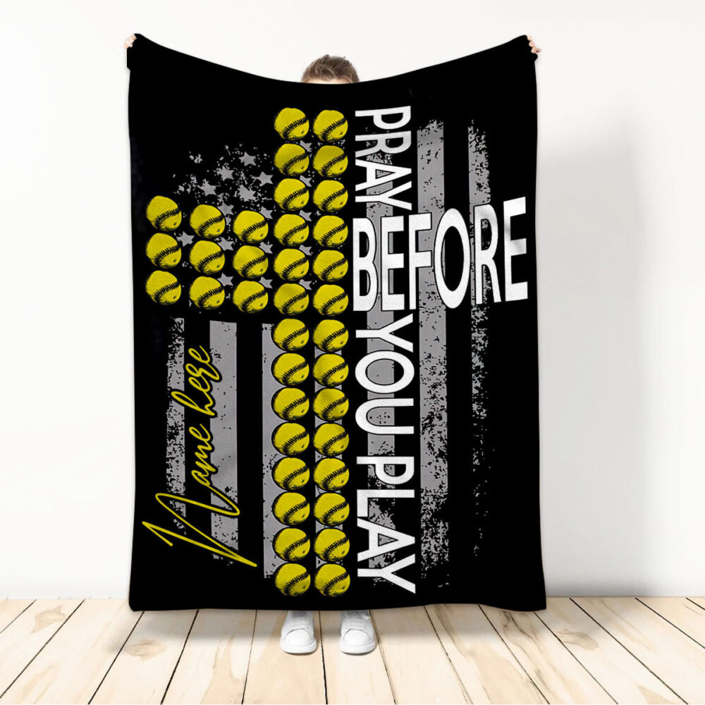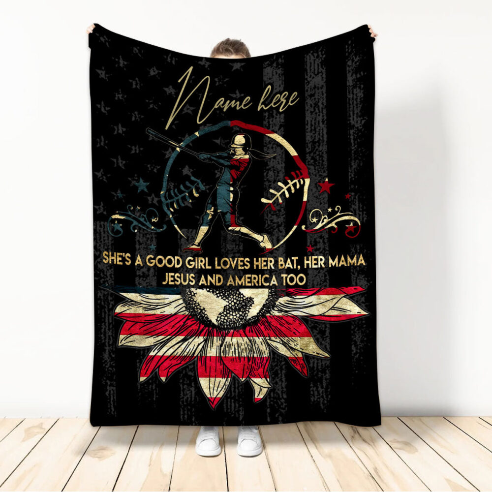 Personalized Softball Blanket, Softball Girl Sherpa Fleece Blanket, Custom Name Soft Cozy Plush Throw Blanket