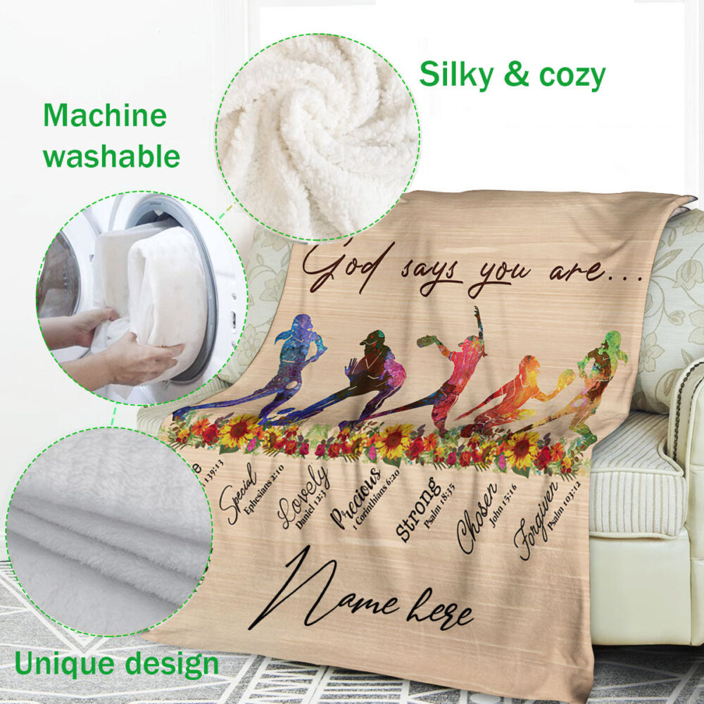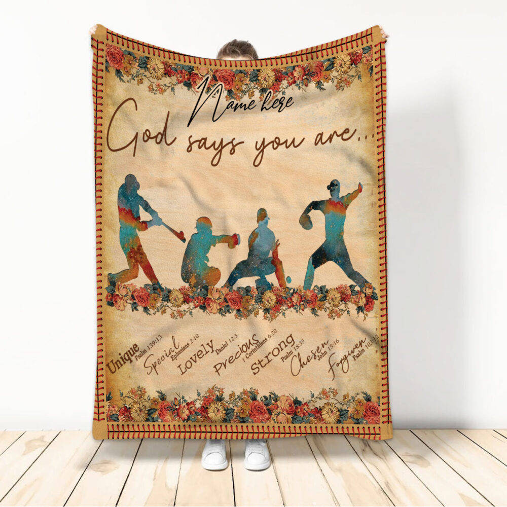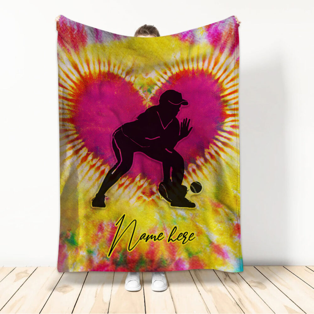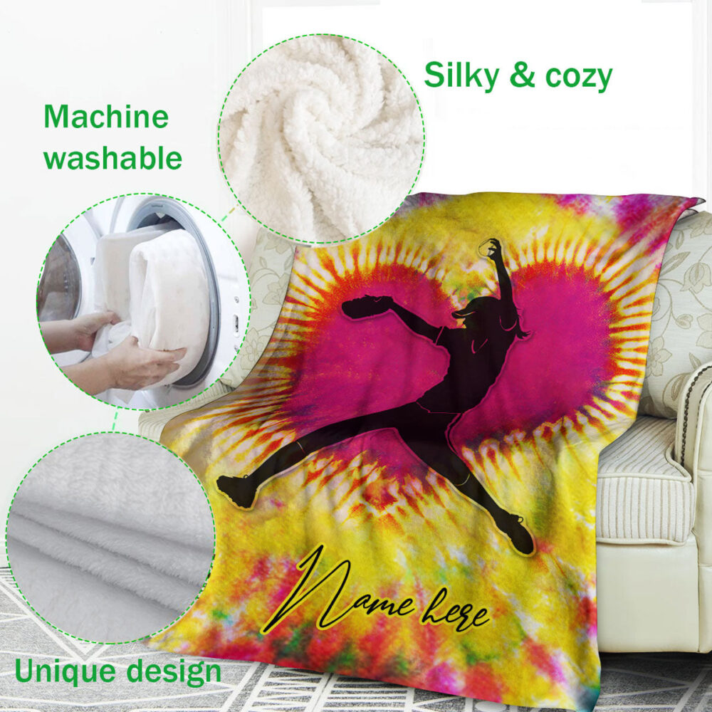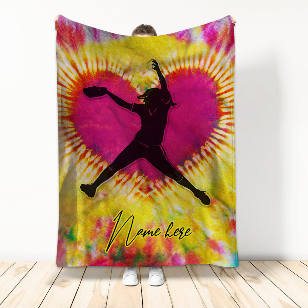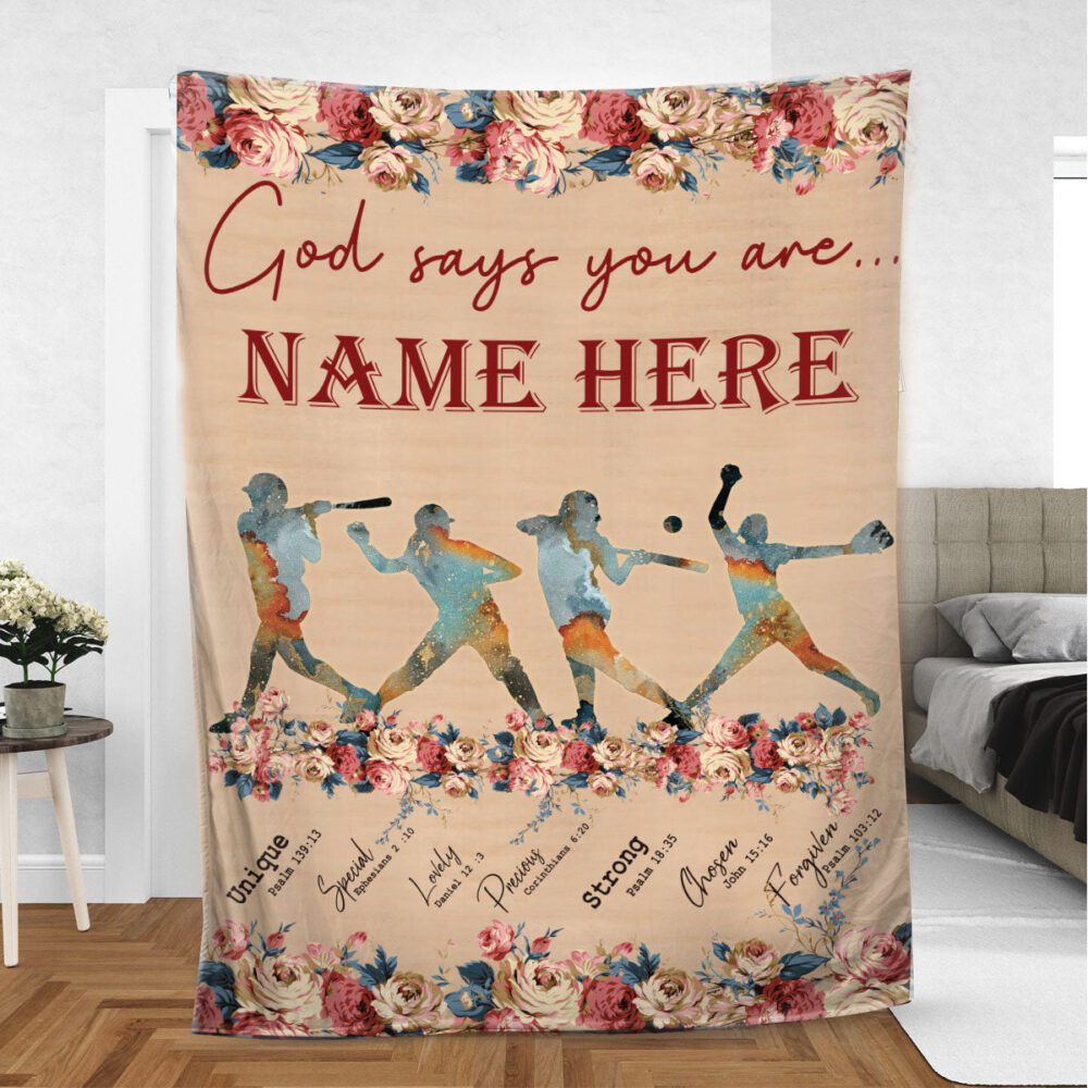 Personalized Softball Blanket, Softball Girl Sherpa Fleece Blanket, Custom Name Soft Cozy Plush Throw Blanket