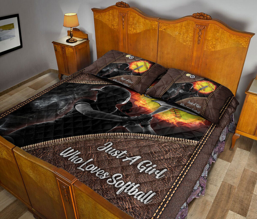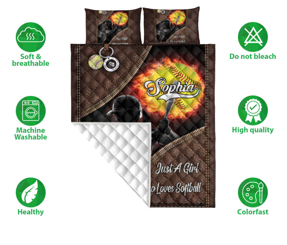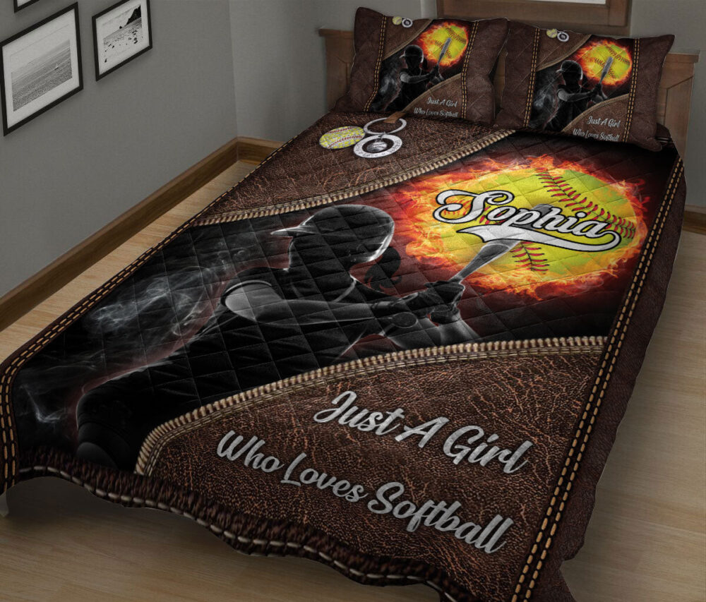 Personalized Softball Quilt Set, Just A Girl Who Loves Softball Quilt Blanket With Pillowcases, Custom Name Quilt Bedding Set