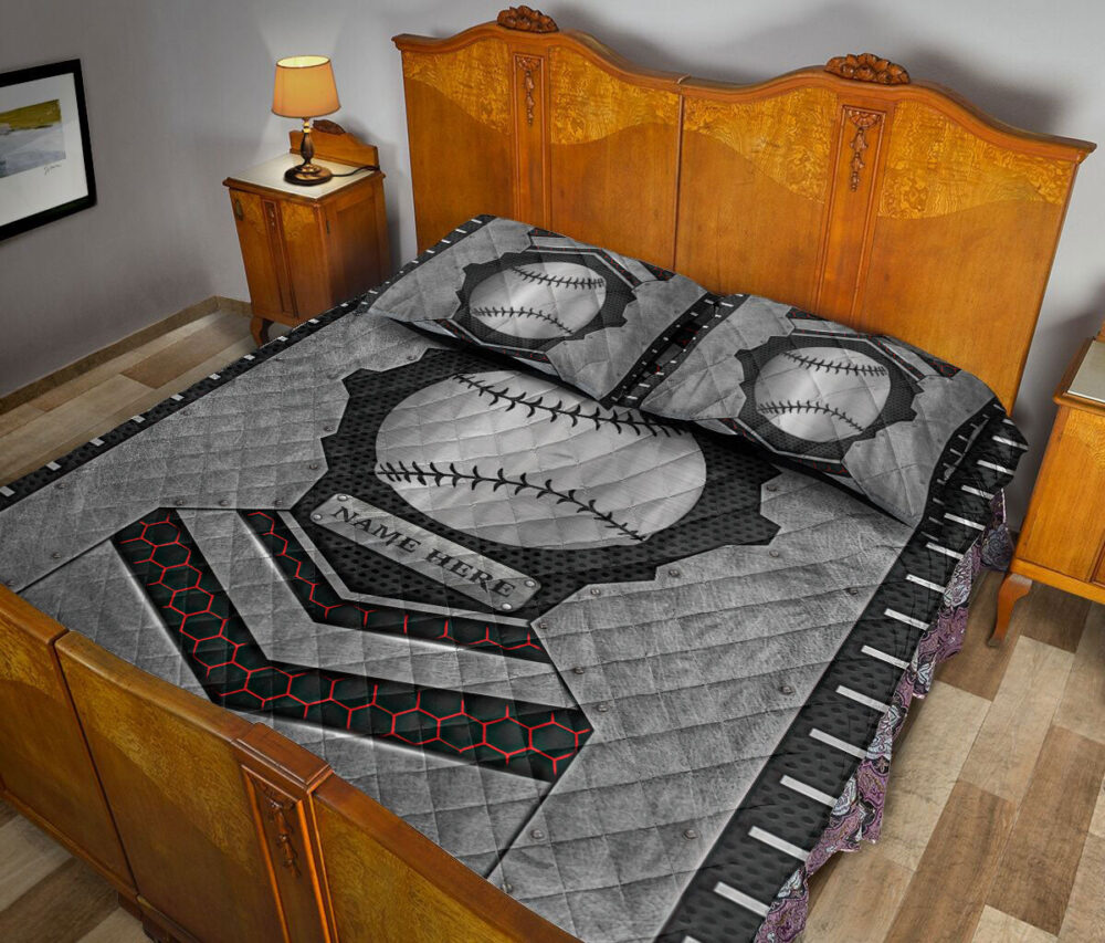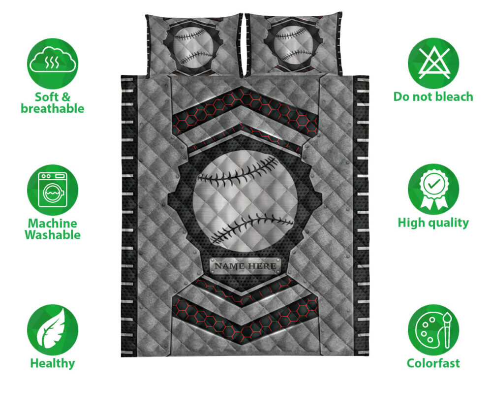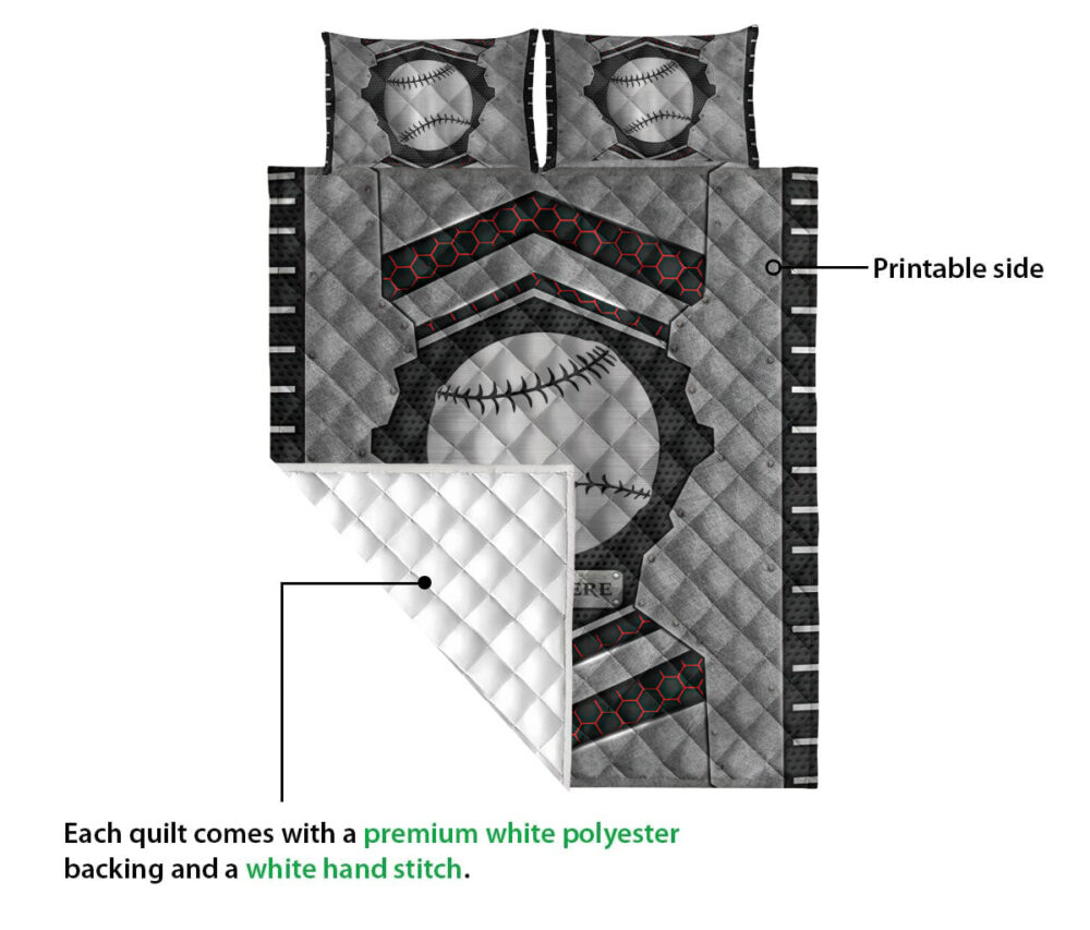 Personalized Softball Quilt Set, Softball Carbon Stone Silver Quilt Blanket With Pillowcases, Custom Name Quilt Bedding Set