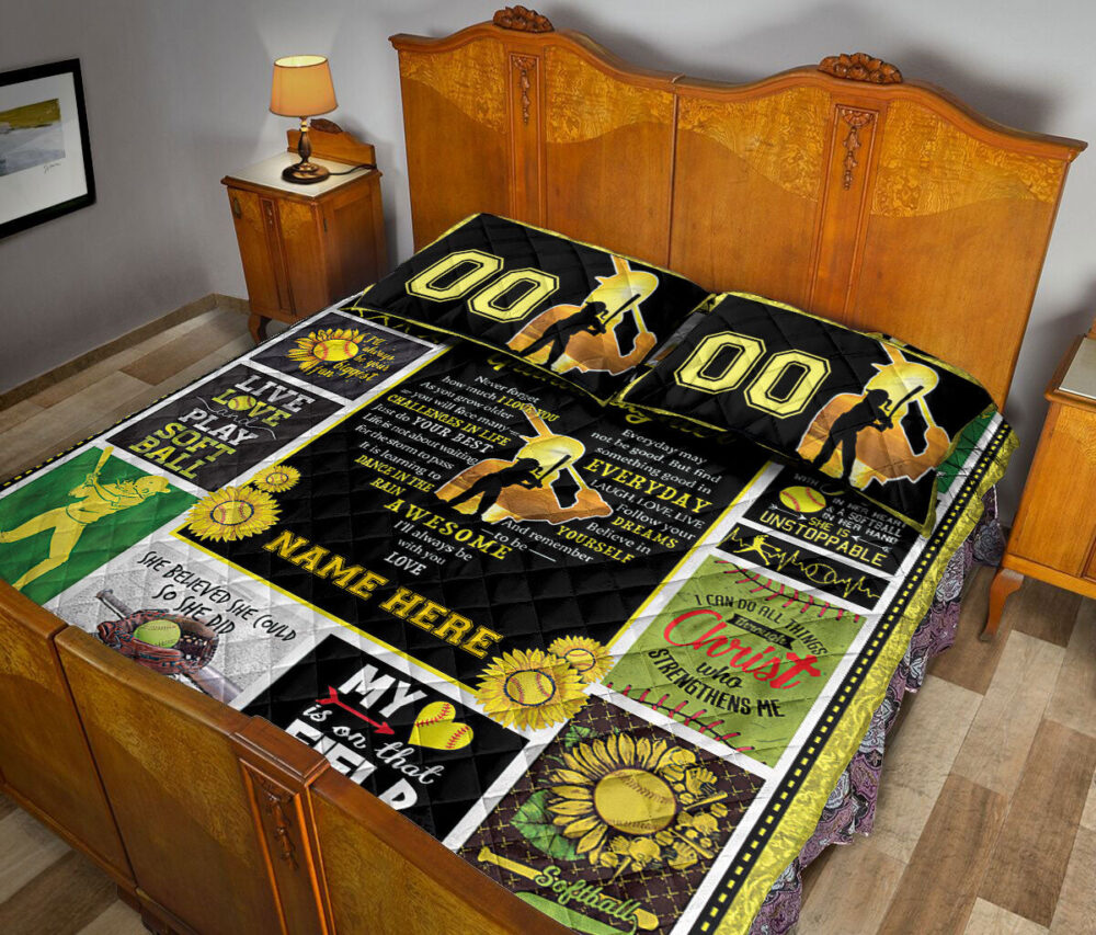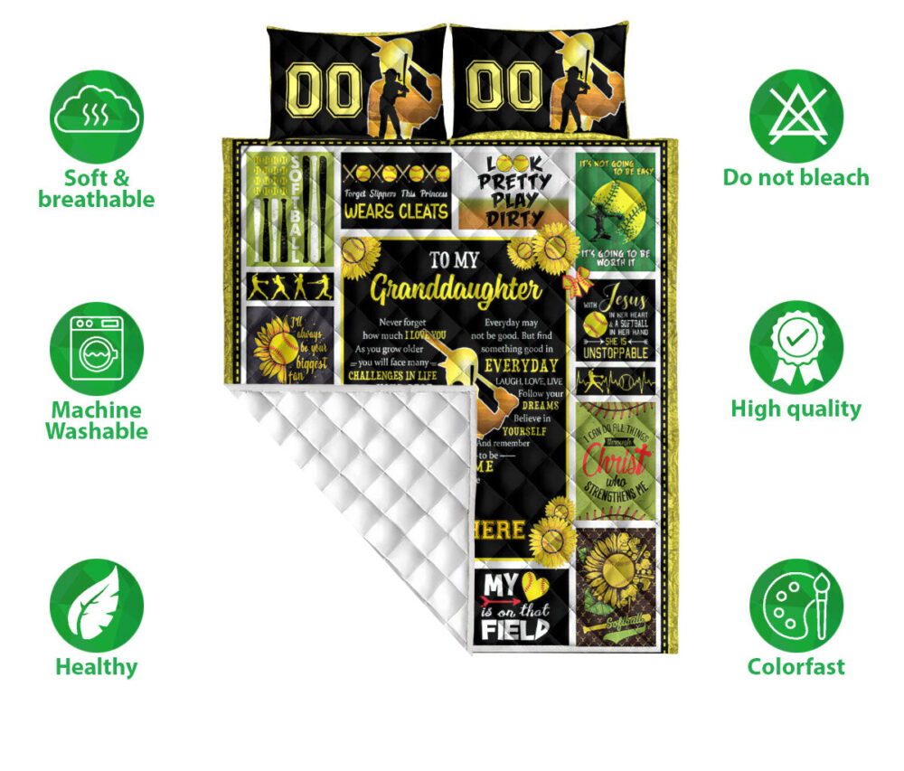 Personalized Softball Quilt Set, Softball Granddaughter Quilt Blanket With Pillowcases, Custom Name and Number Quilt Bedding Set