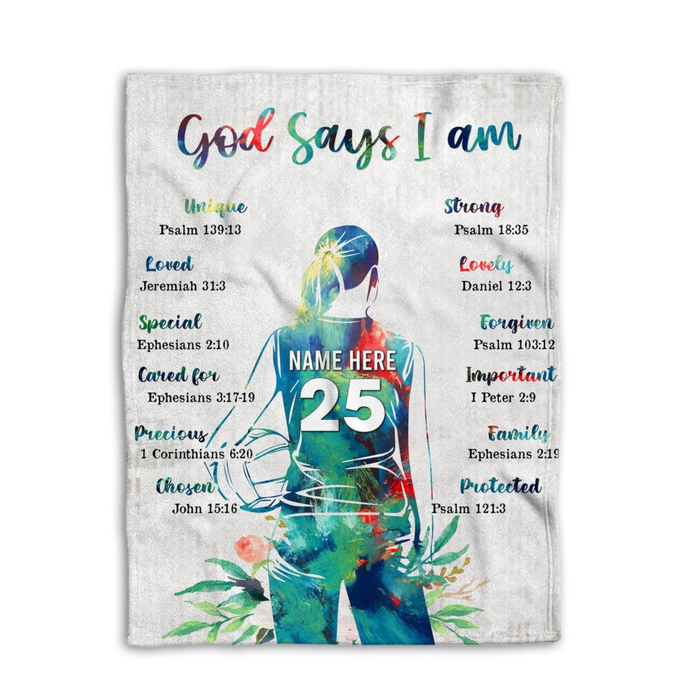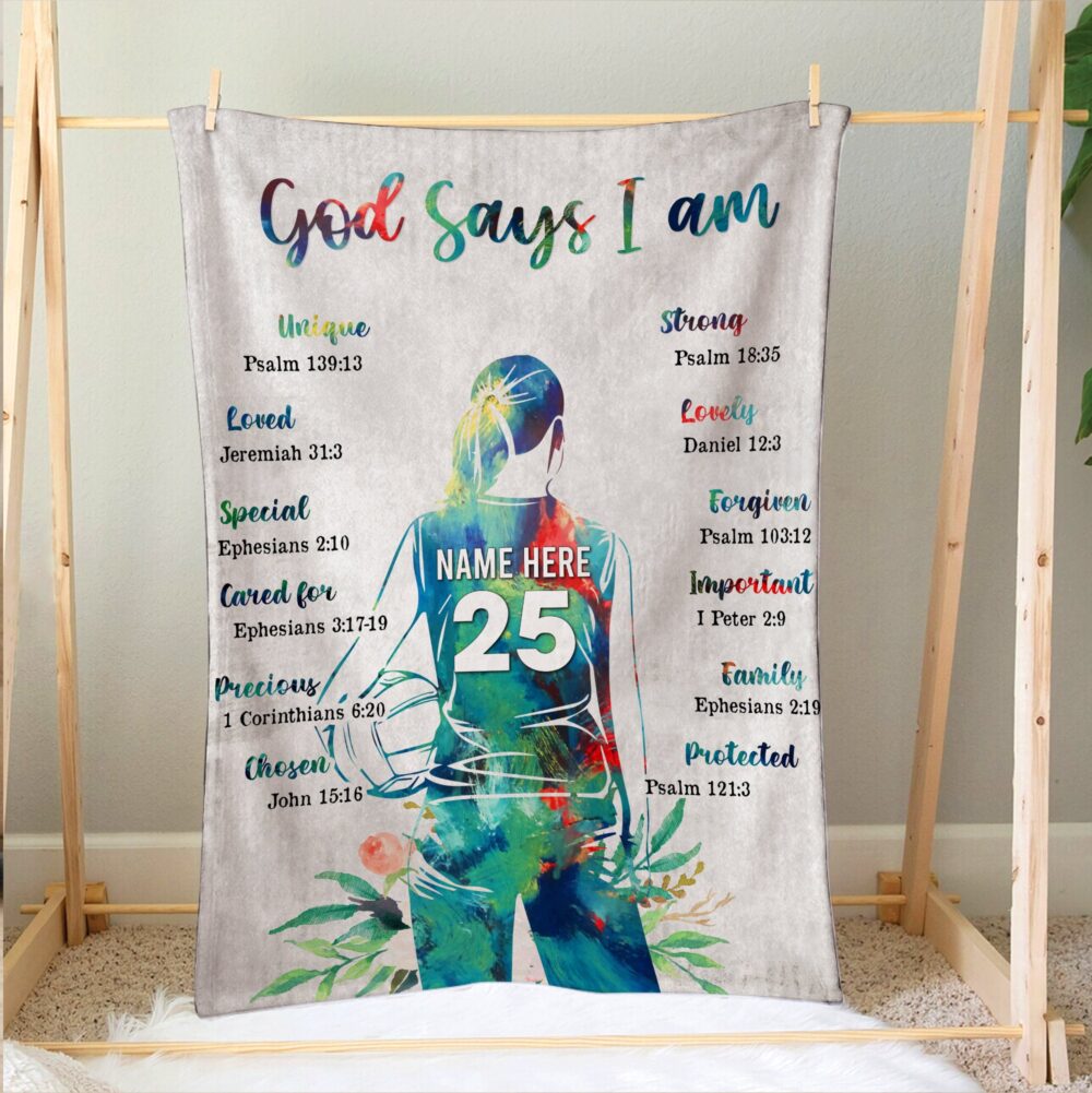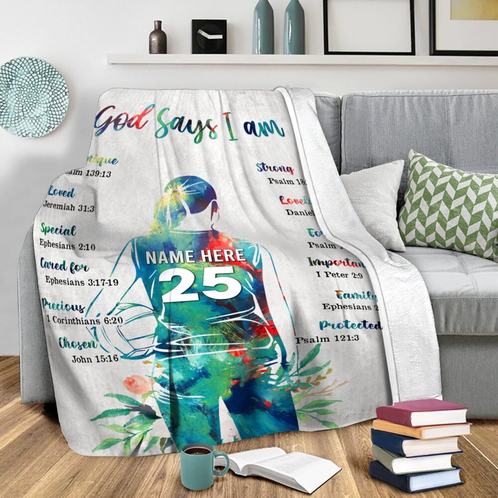 Personalized Volleyball Blanket, God Says I am Soft Cozy Sherpa Fleece Throw Blankets, Custom Gift for Mom, Girlfriend, Daughter, Girl
