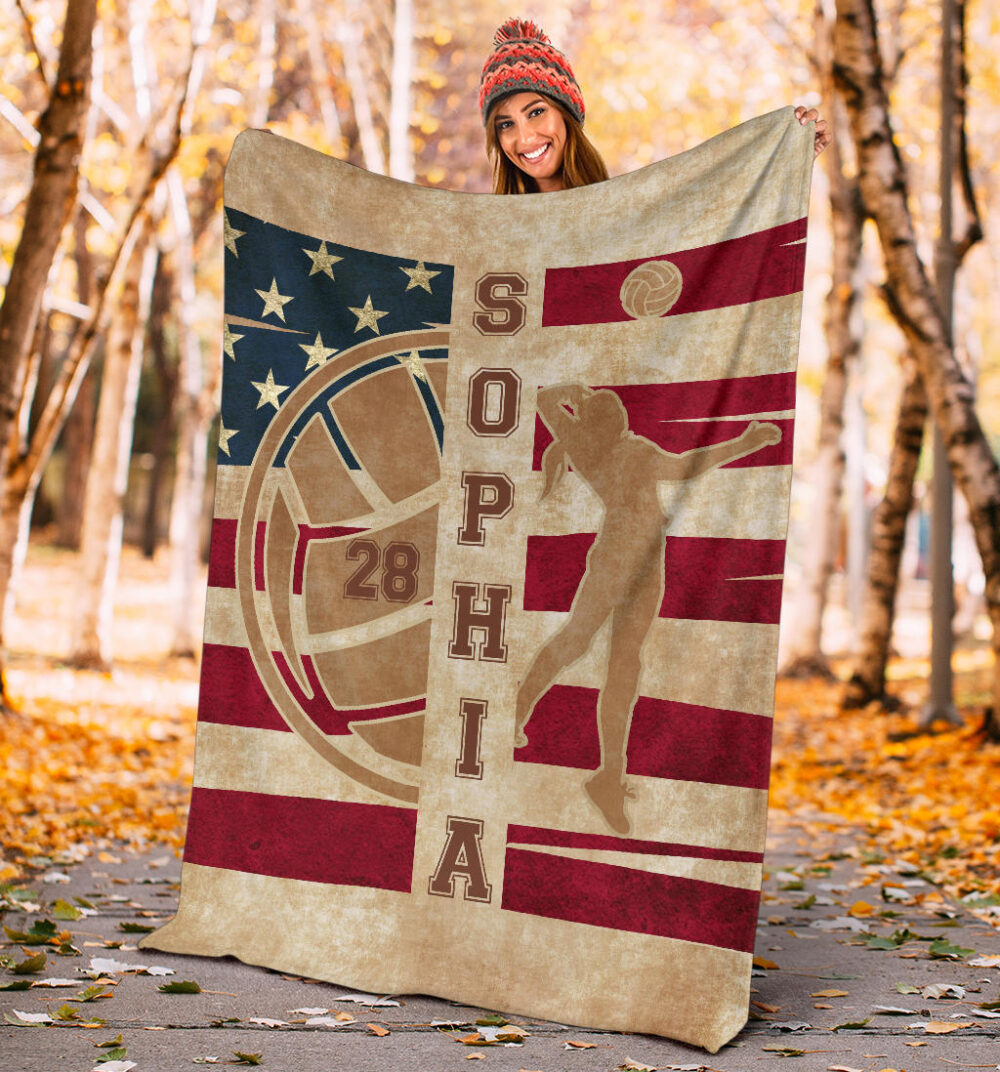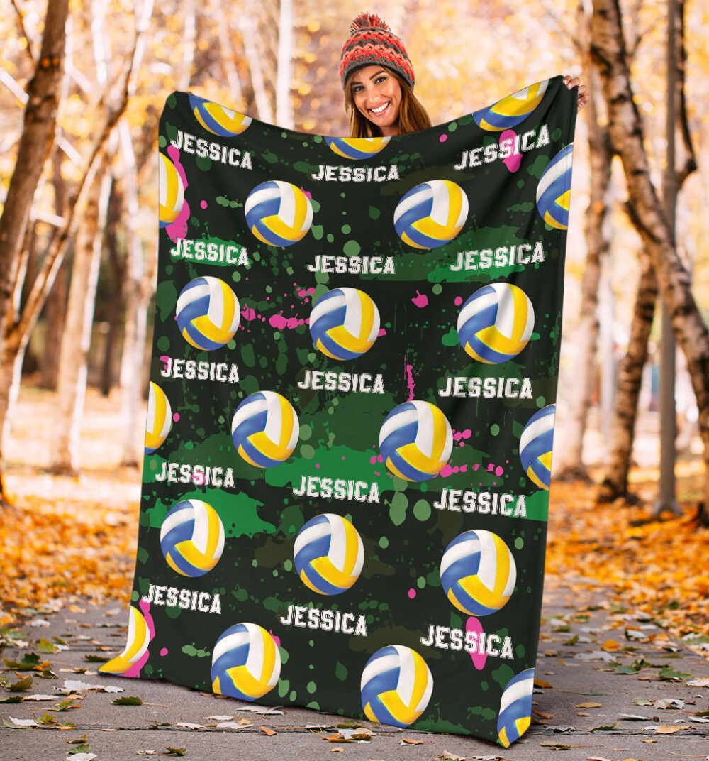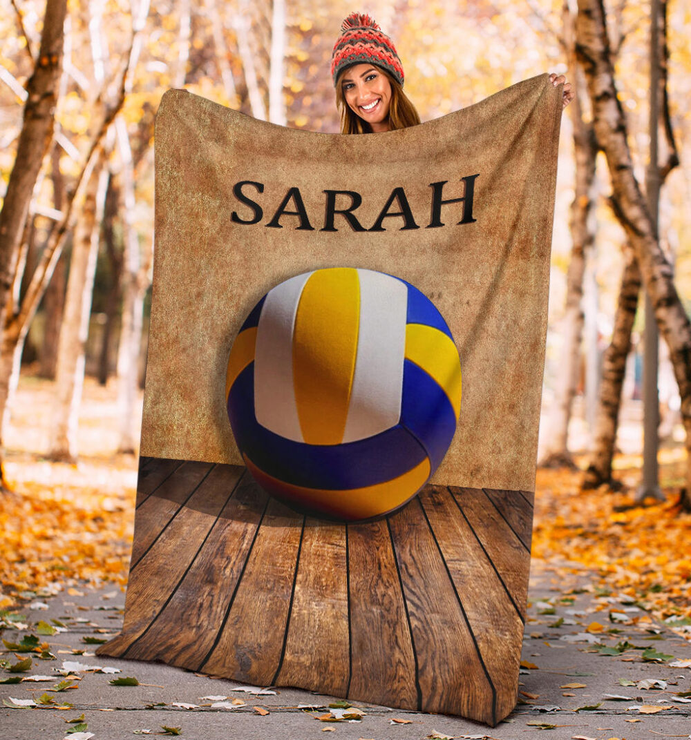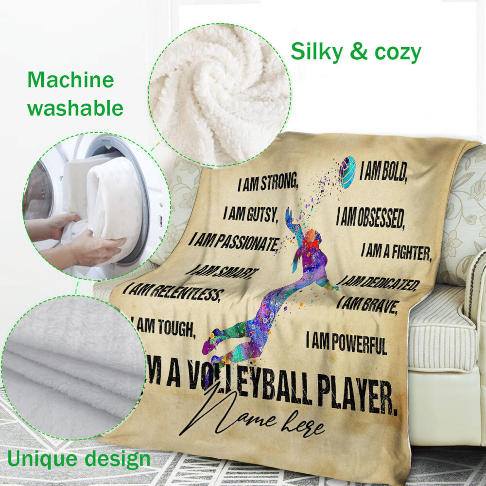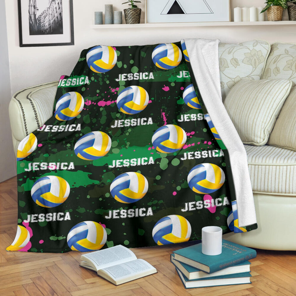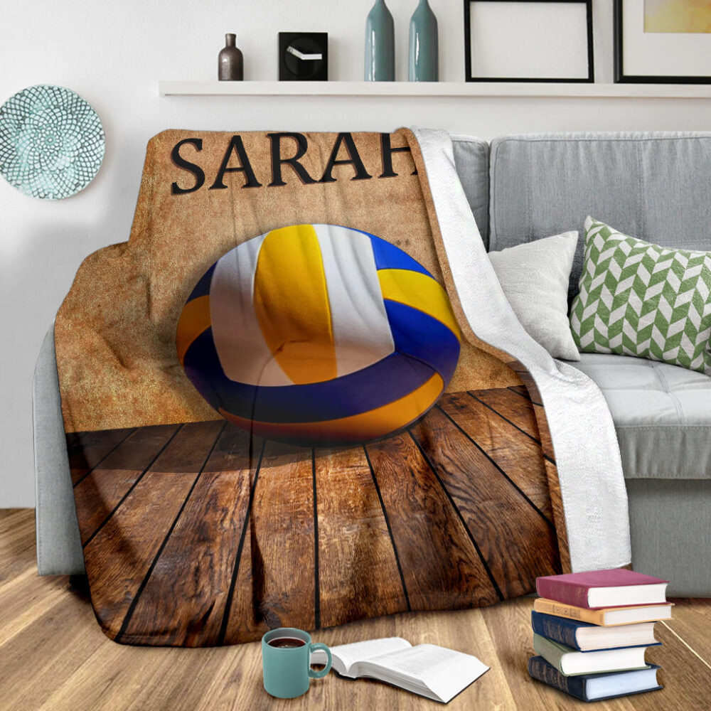 Personalized Volleyball Blanket, Volleyball Girl Sherpa Fleece Blanket, Custom Name Soft Cozy Plush Throw Blanket