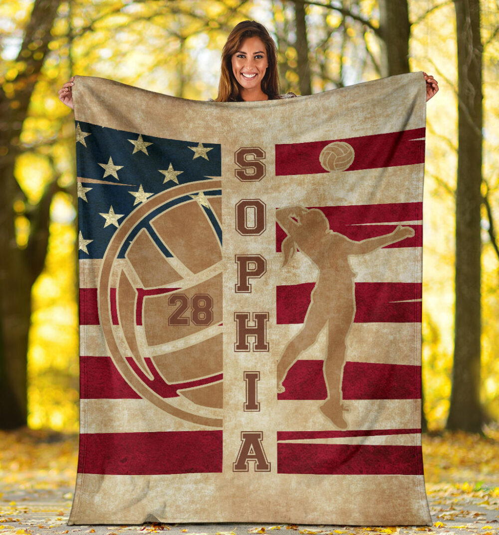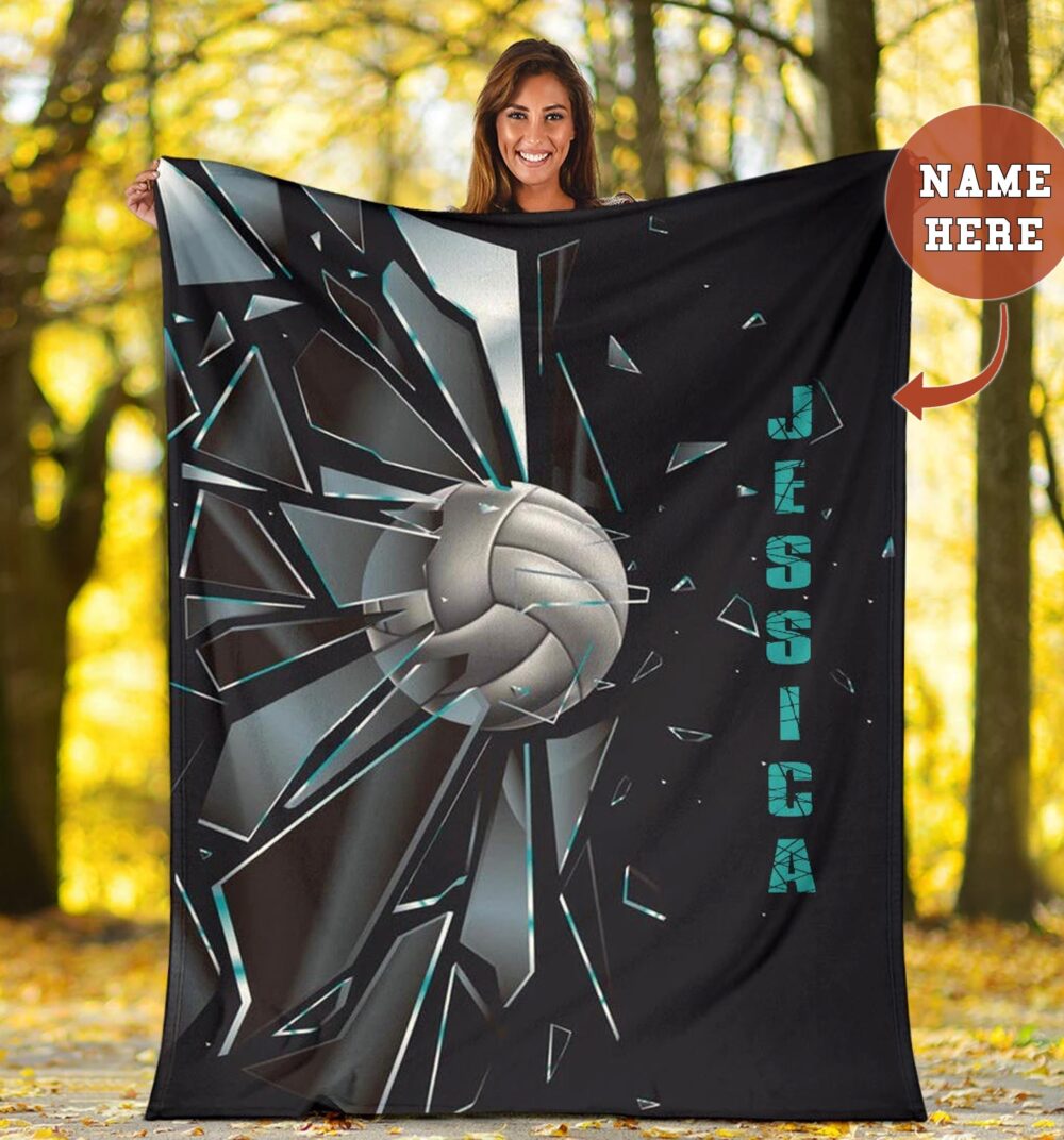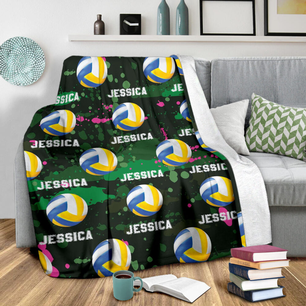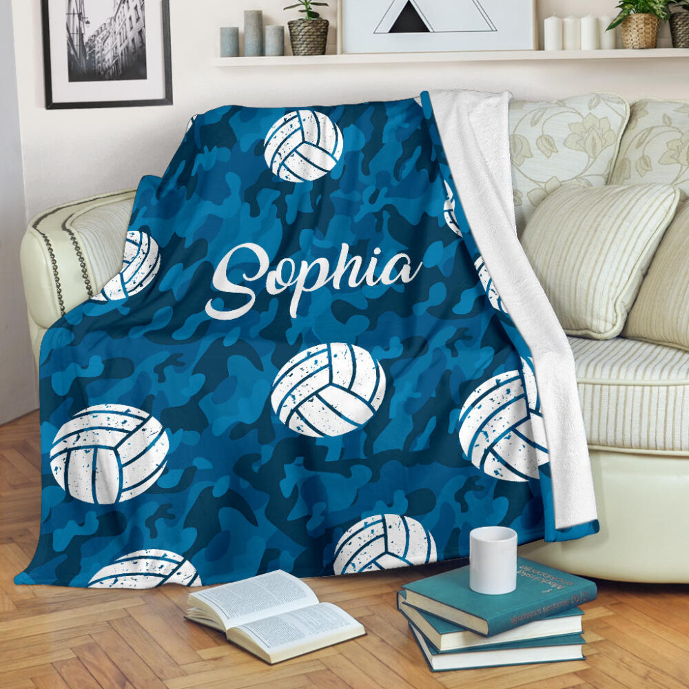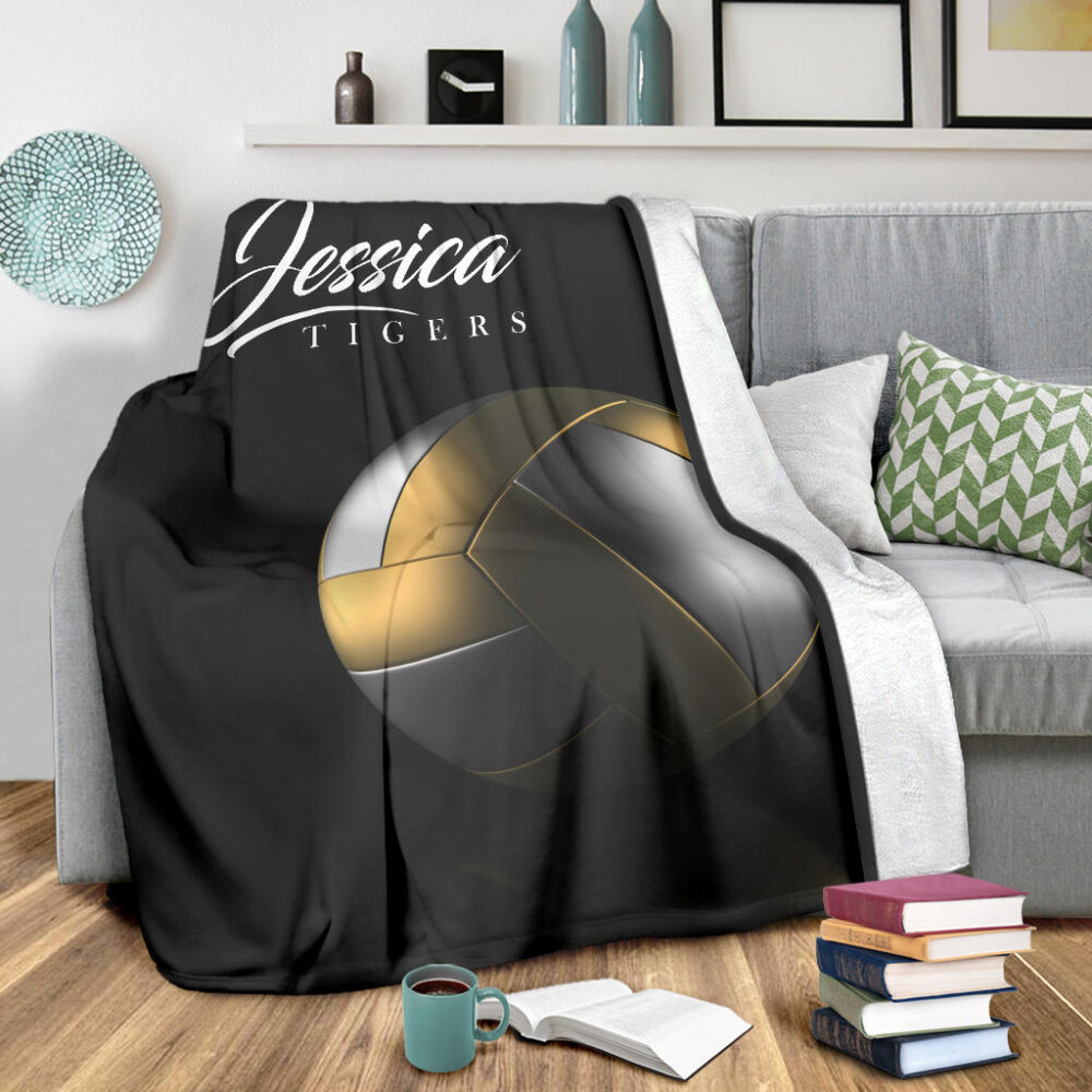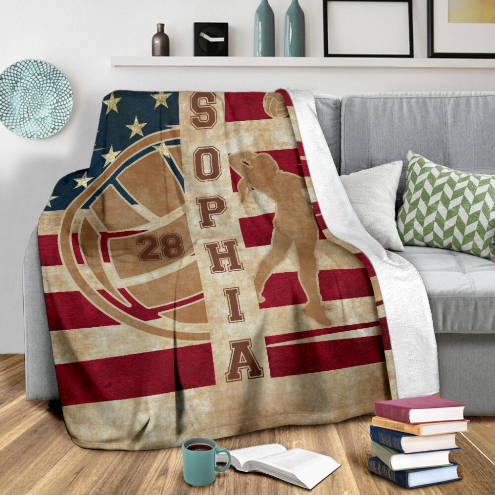 Personalized Volleyball Blanket, Volleyball Girl Sherpa Fleece Blanket, Custom Name Soft Cozy Plush Throw Blanket