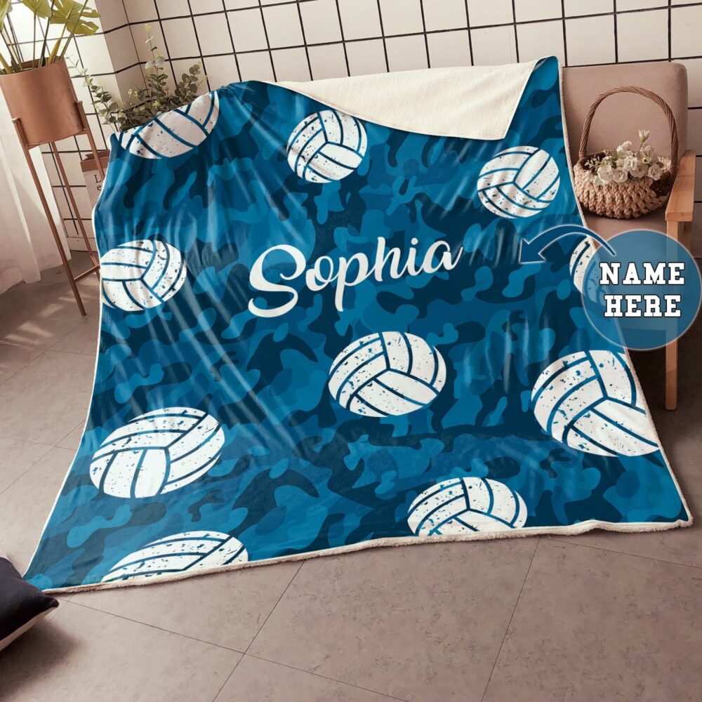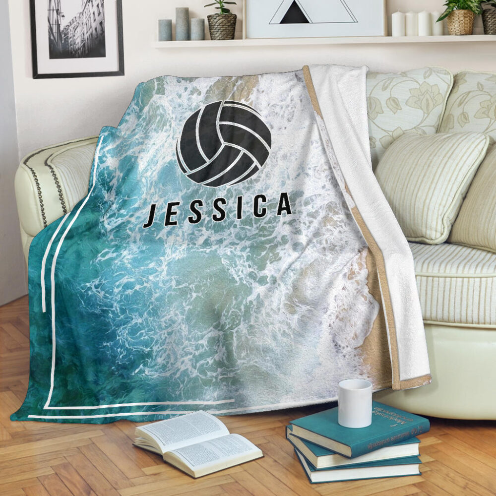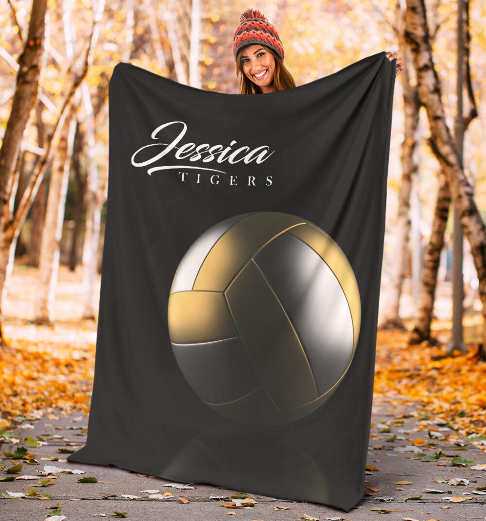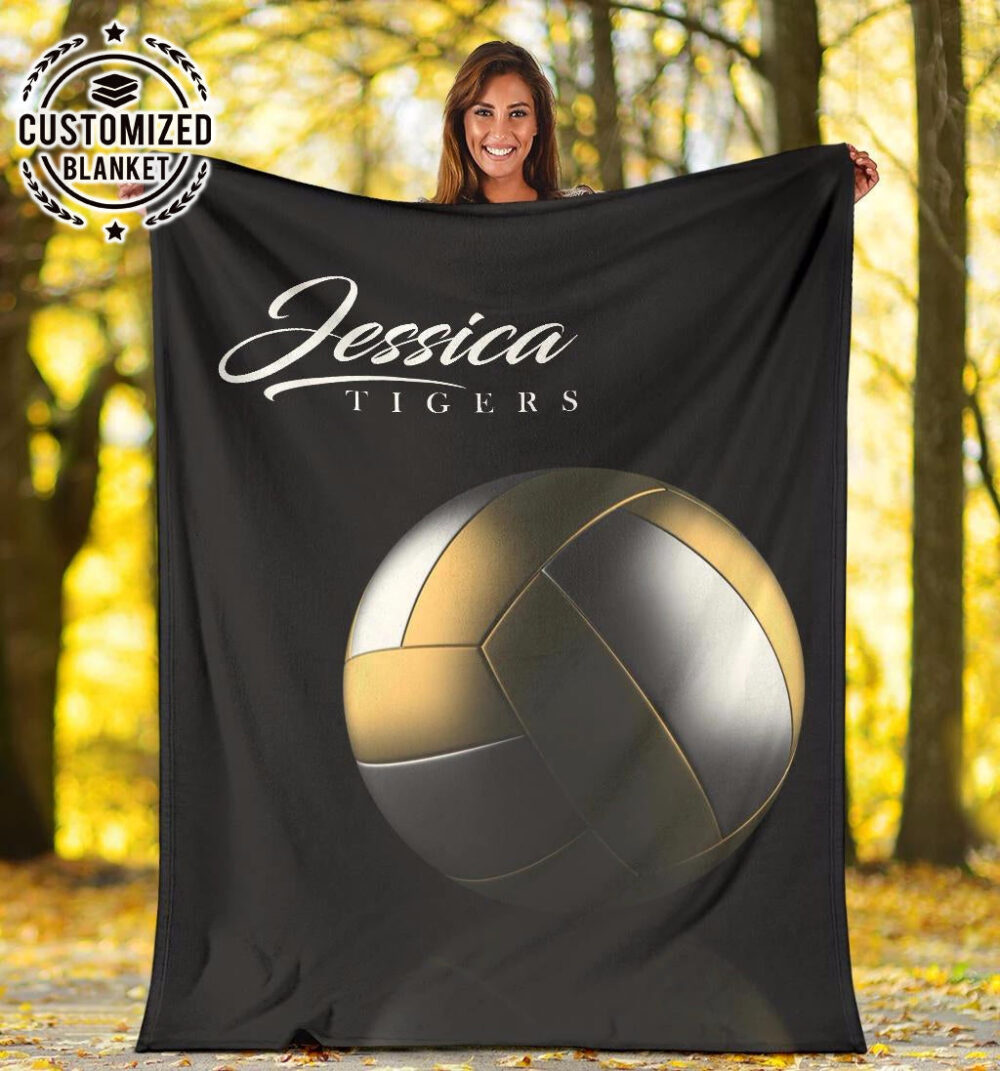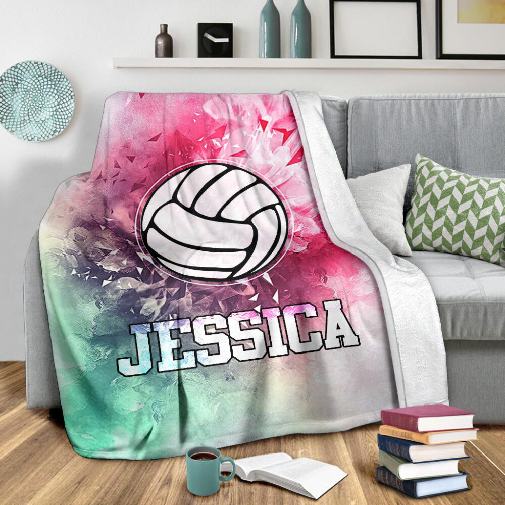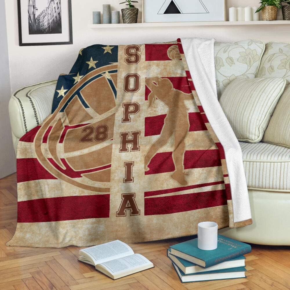 Personalized Volleyball Blanket, Volleyball Girl Sherpa Fleece Blanket, Custom Name Soft Cozy Plush Throw Blanket
