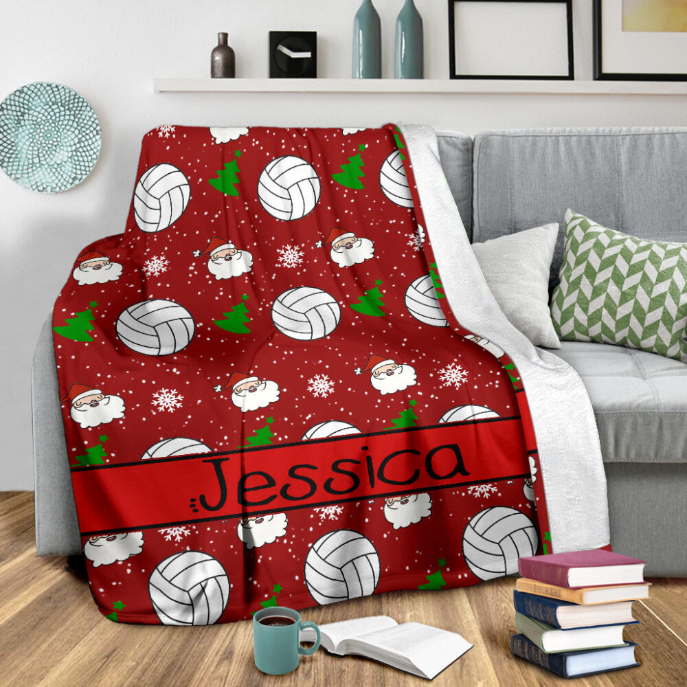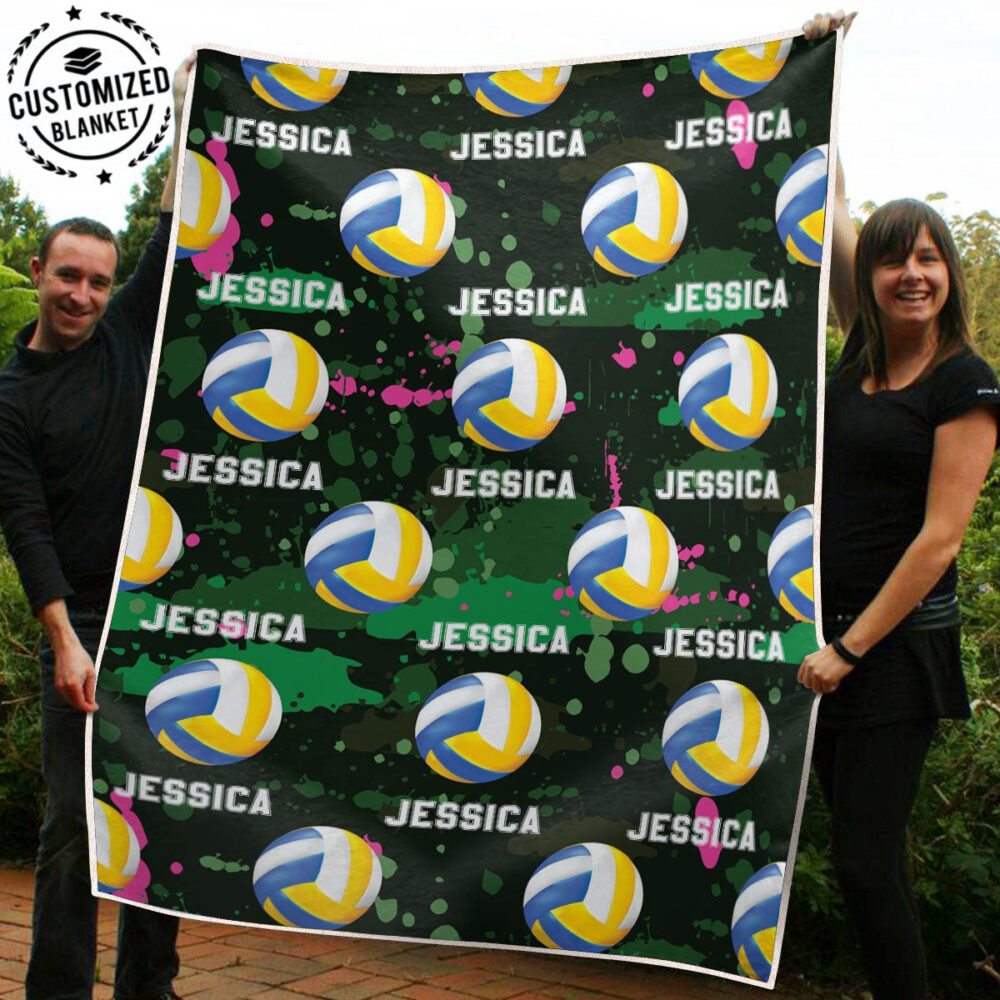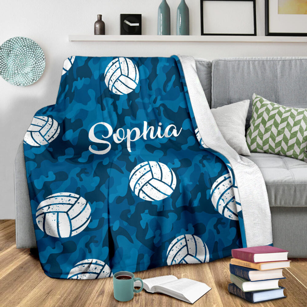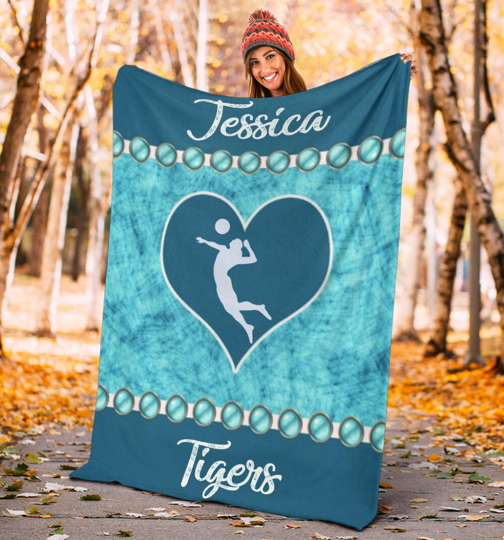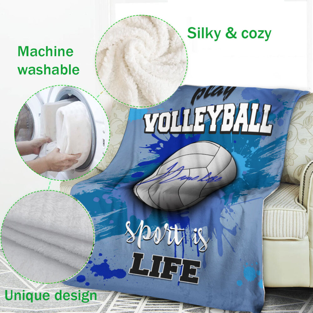 Personalized Volleyball Blanket, Volleyball Girl Sherpa Fleece Blanket, Custom Name Soft Cozy Plush Throw Blanket