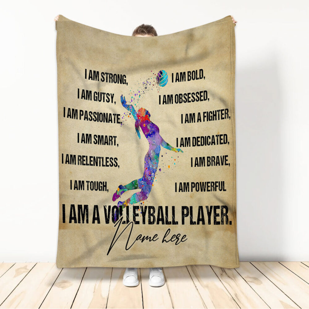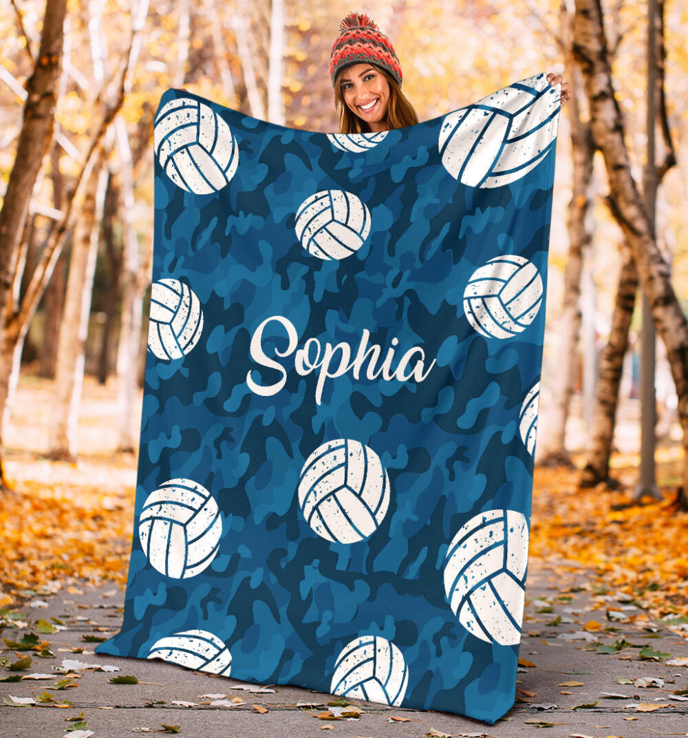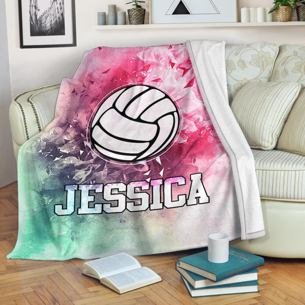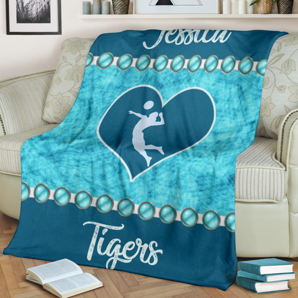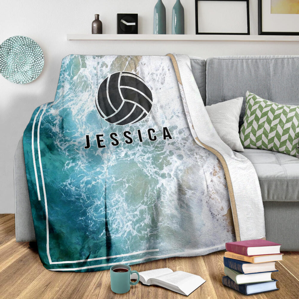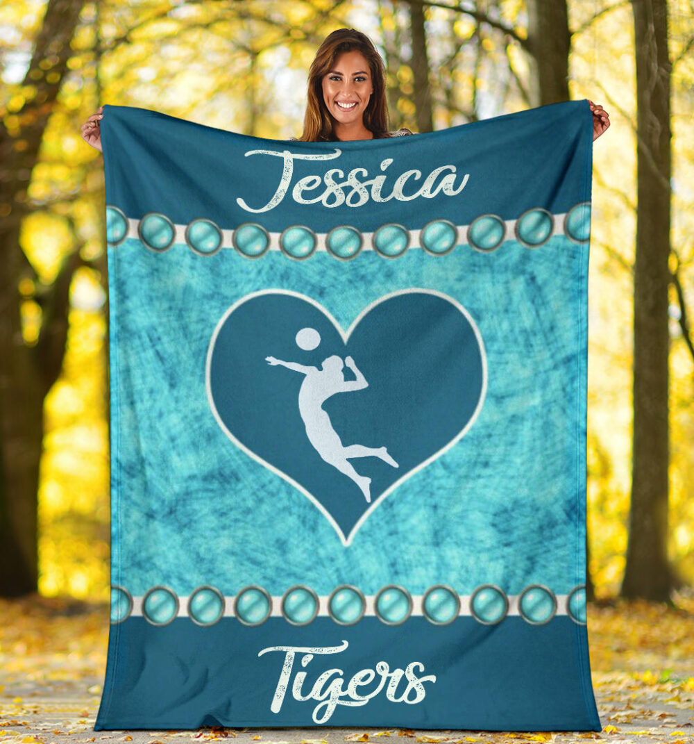 Personalized Volleyball Blanket, Volleyball Girl Sherpa Fleece Blanket, Custom Name Soft Cozy Plush Throw Blanket