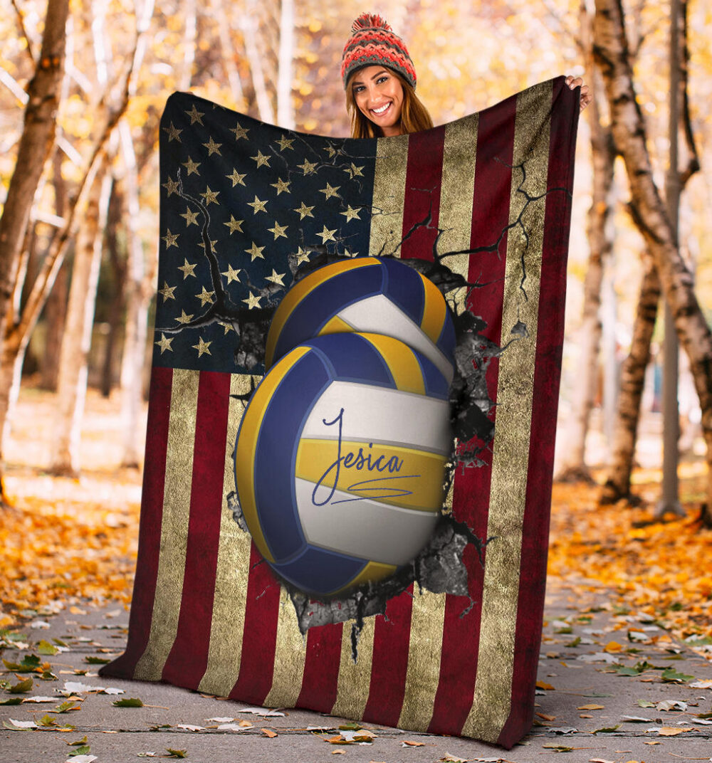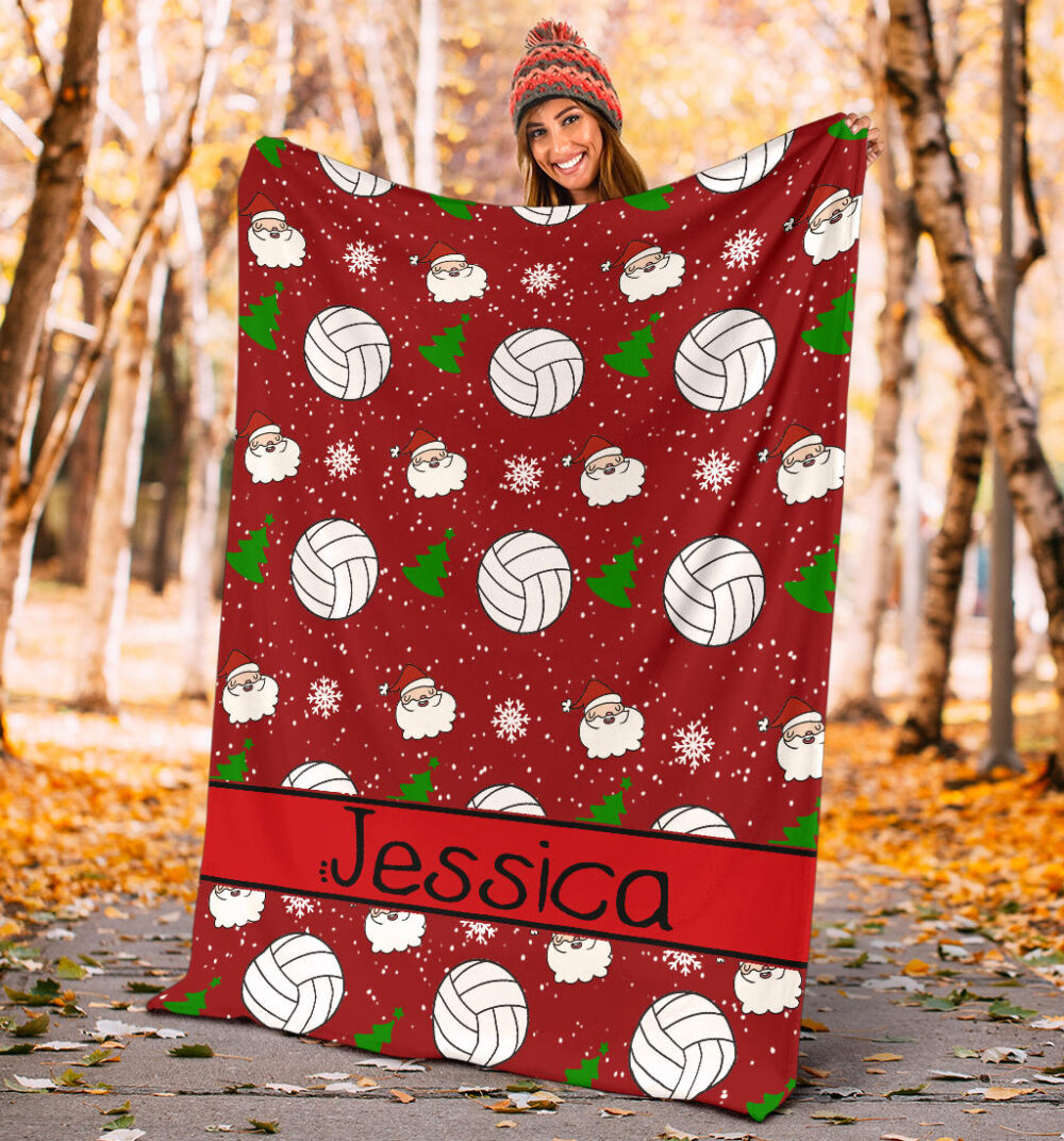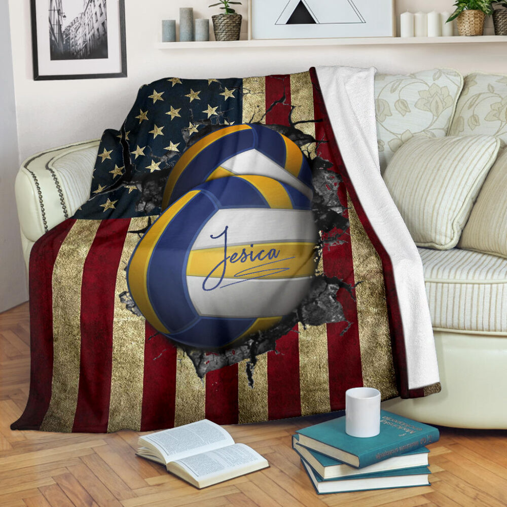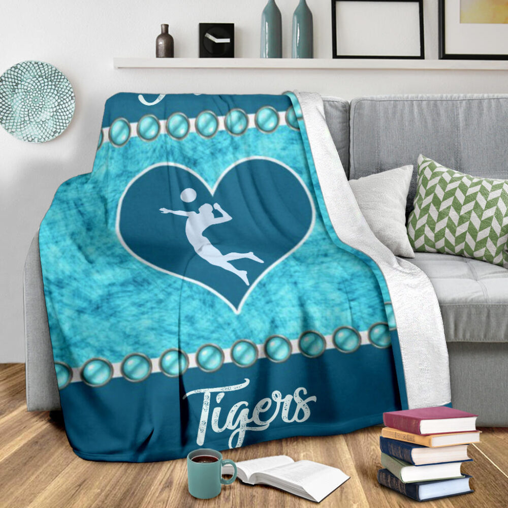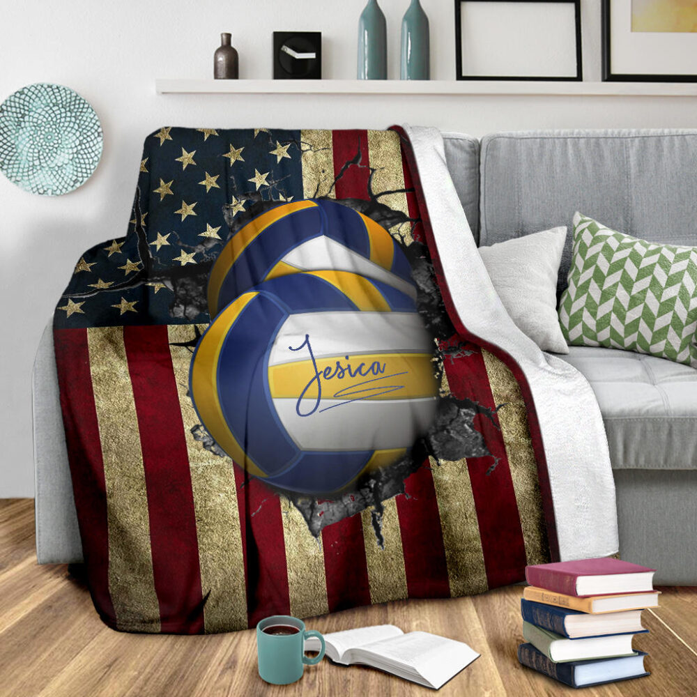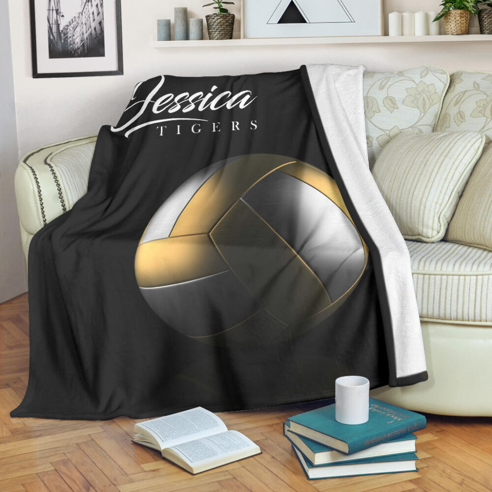 Personalized Volleyball Blanket, Volleyball Girl Sherpa Fleece Blanket, Custom Name Soft Cozy Plush Throw Blanket