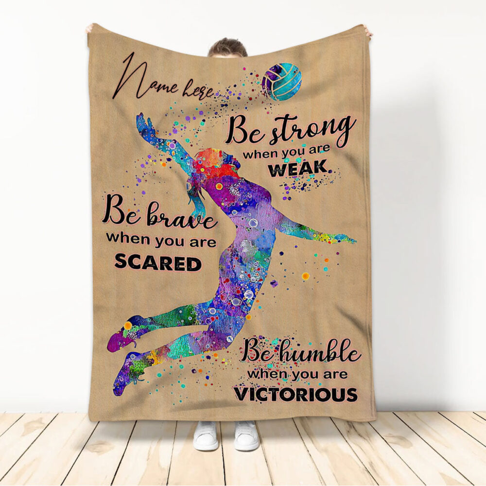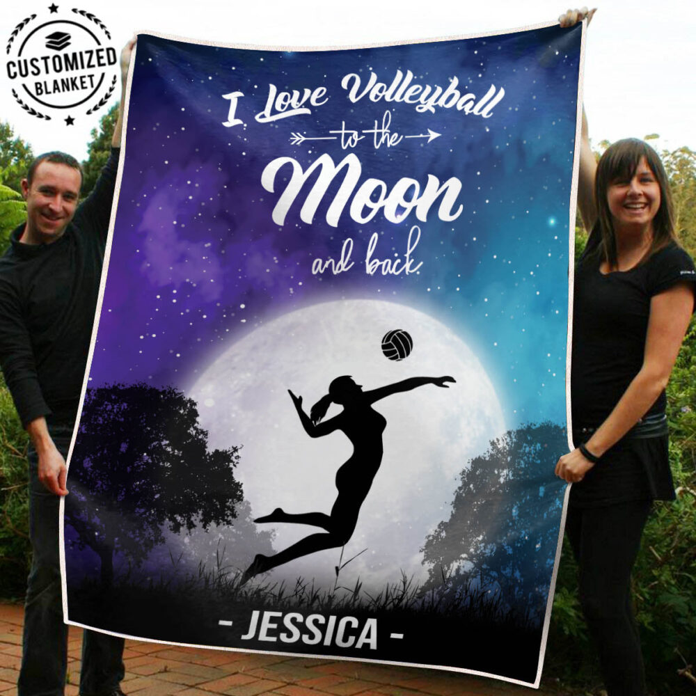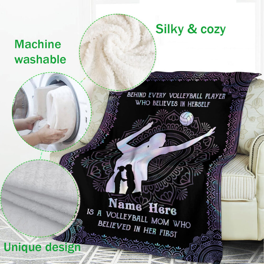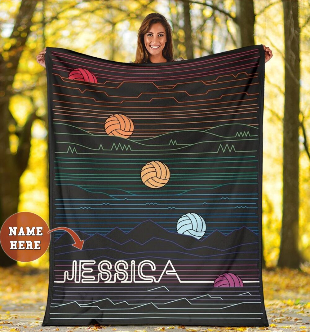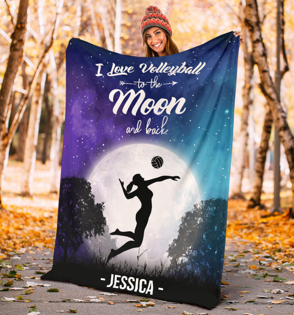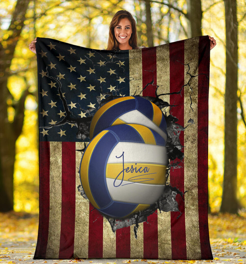 Personalized Volleyball Blanket, Volleyball Girl Sherpa Fleece Blanket, Custom Name Soft Cozy Plush Throw Blanket