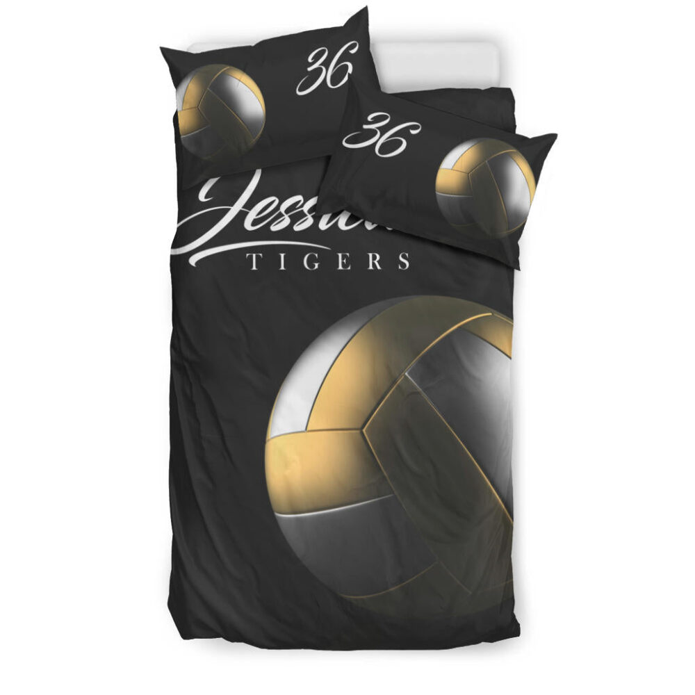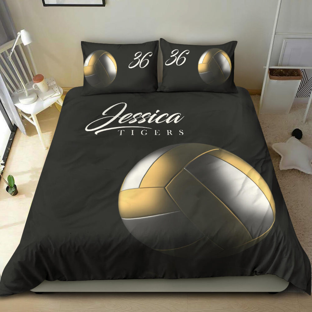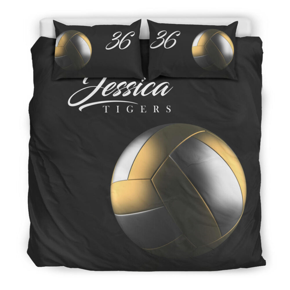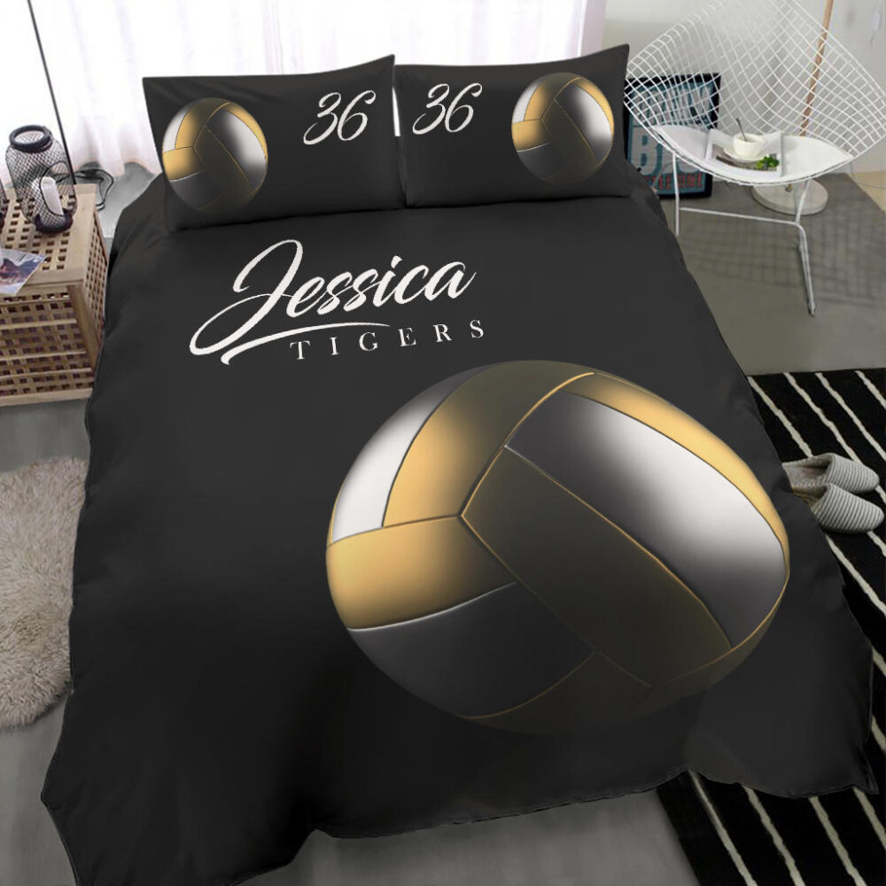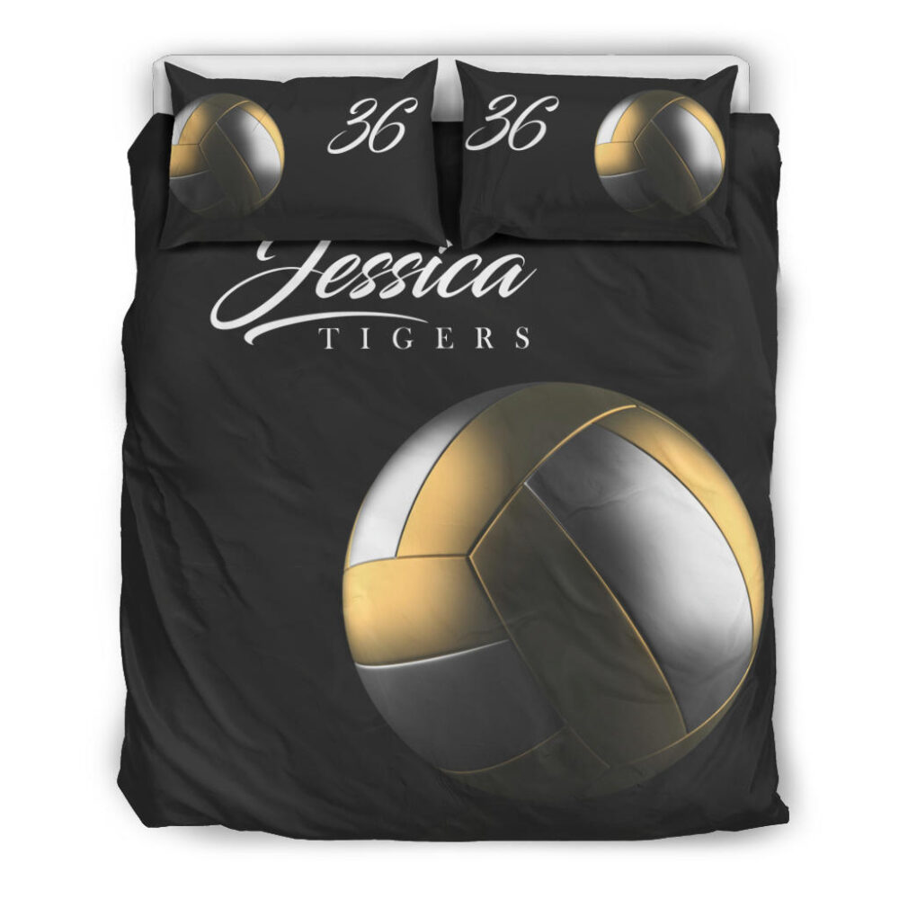 Personalized Volleyball Duvet Cover Set, Volleyball Ball Vintage Player Gift Black Duvet Cover & Pillowcases, Custom Name Number Bedding Set