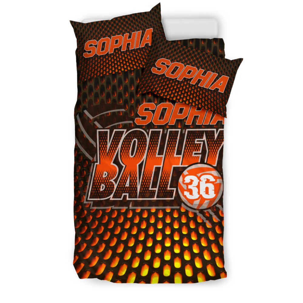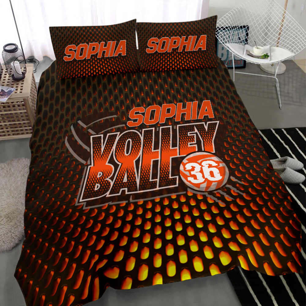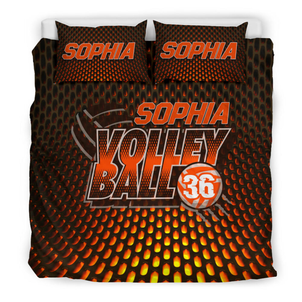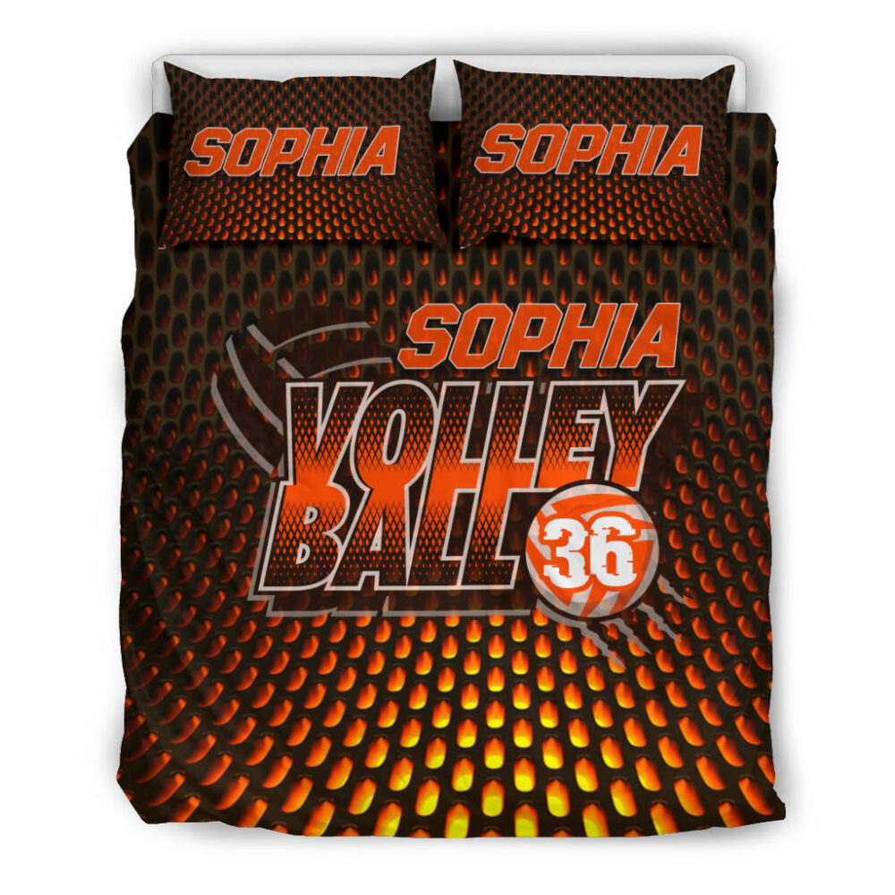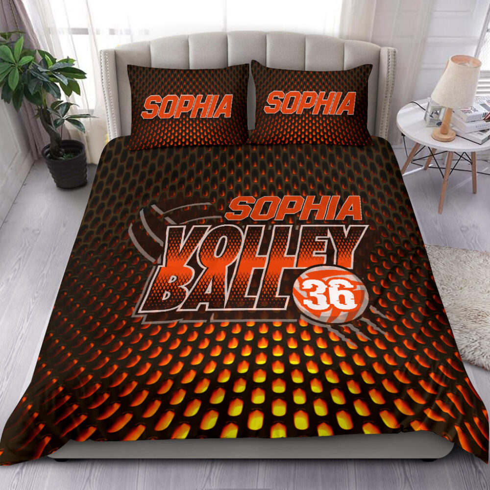Personalized Volleyball Duvet Cover Set, Volleyball Orange Dot Pattern Player Gift Duvet Cover & Pillowcases, Custom Name Number Bedding Set