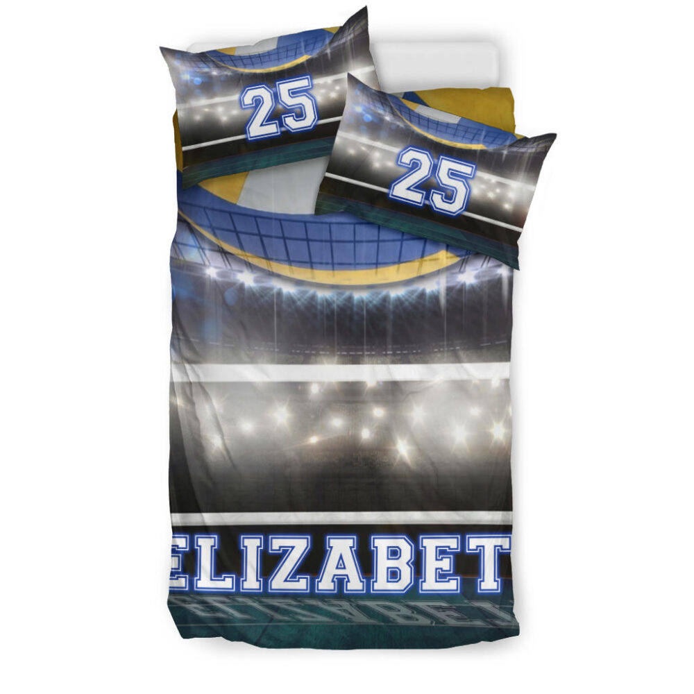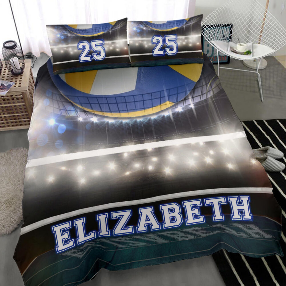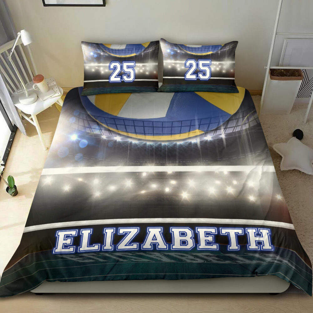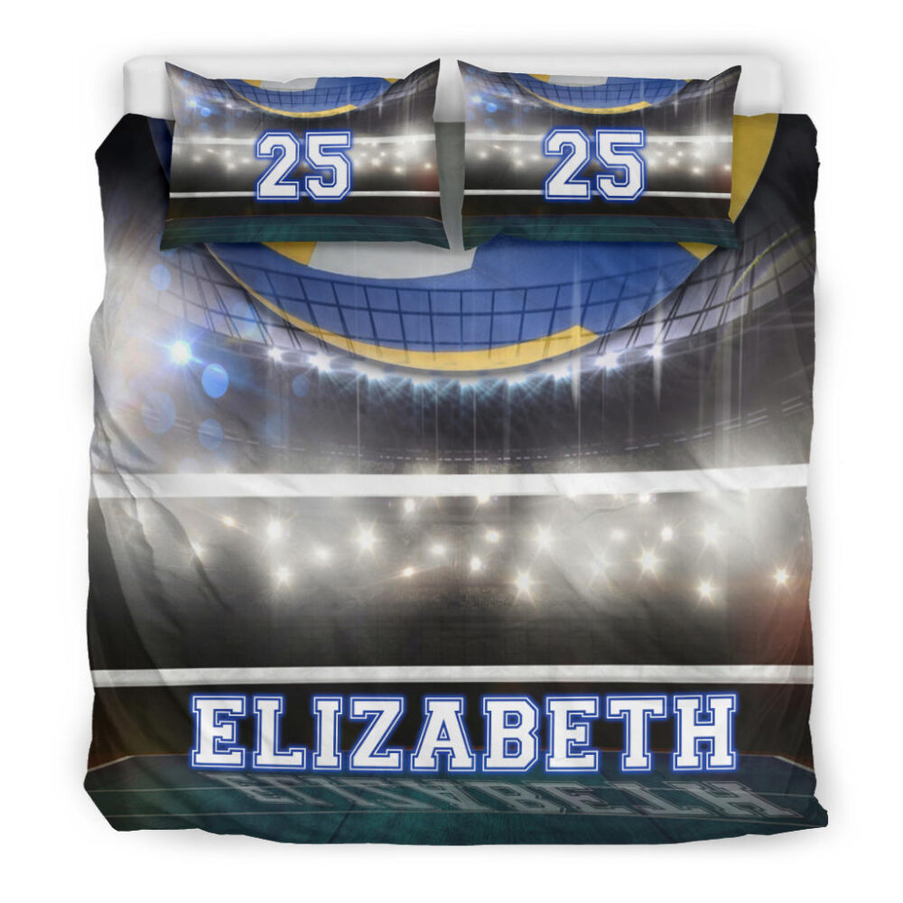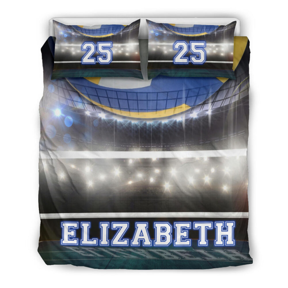 Personalized Volleyball Duvet Cover Set, Volleyball Stadium Light Player Gift Idea Duvet Cover & Pillowcases, Custom Name Number Bedding Set