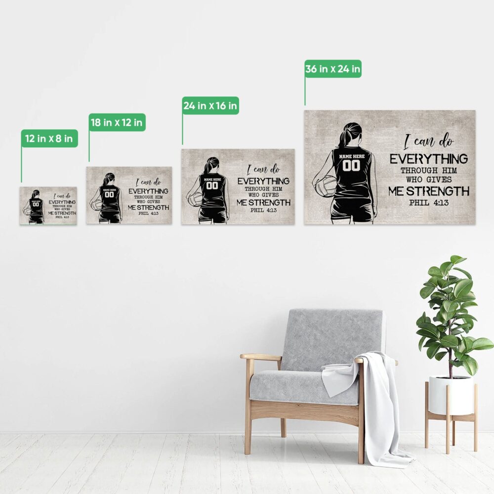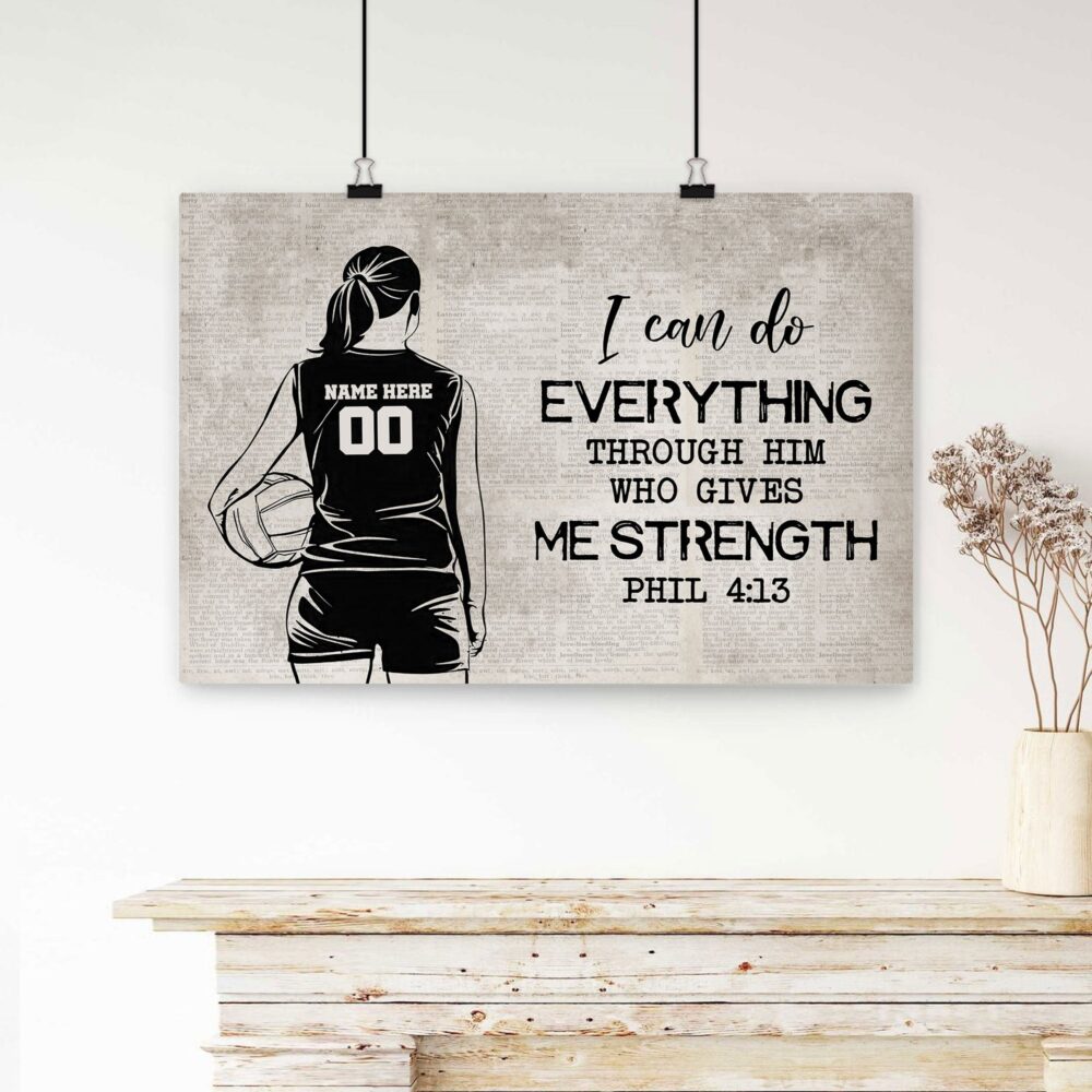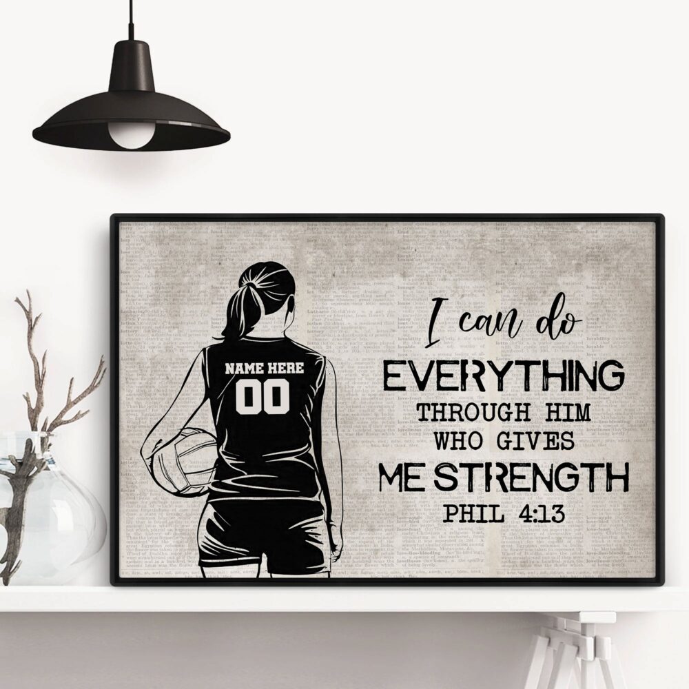 Personalized Volleyball Poster & Canvas, I Can Do Everything Wall Art, Custom Name Number Home Decor For Daughter, Girl From Mom, Dad