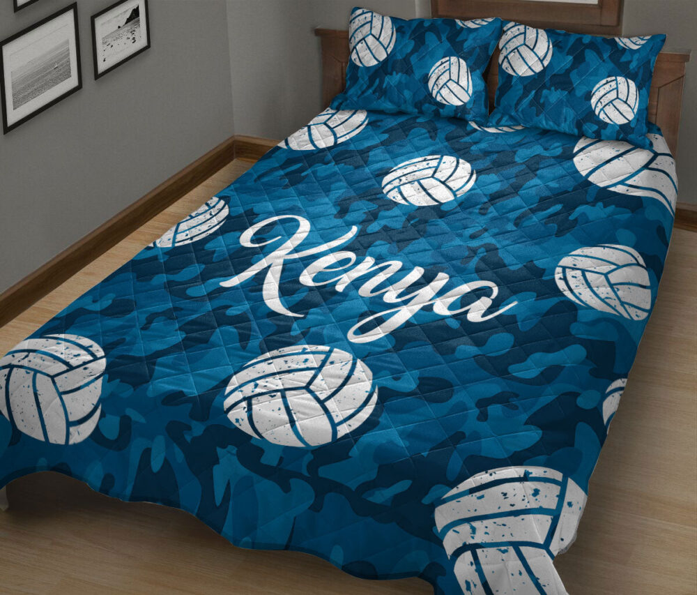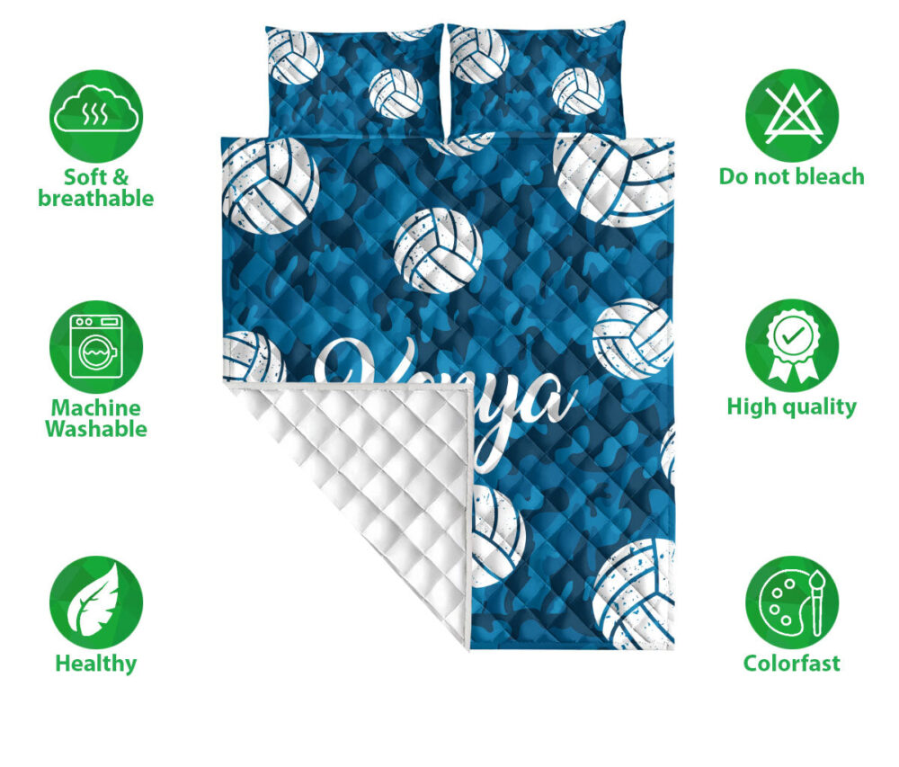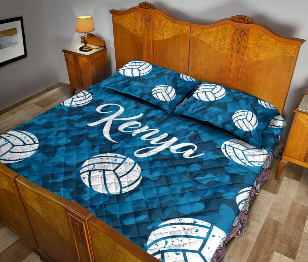 Personalized Volleyball Quilt Set, Gift Blue Volleyball Ball Quilt Blanket With Pillowcases, Custom Name Quilt Bedding Set