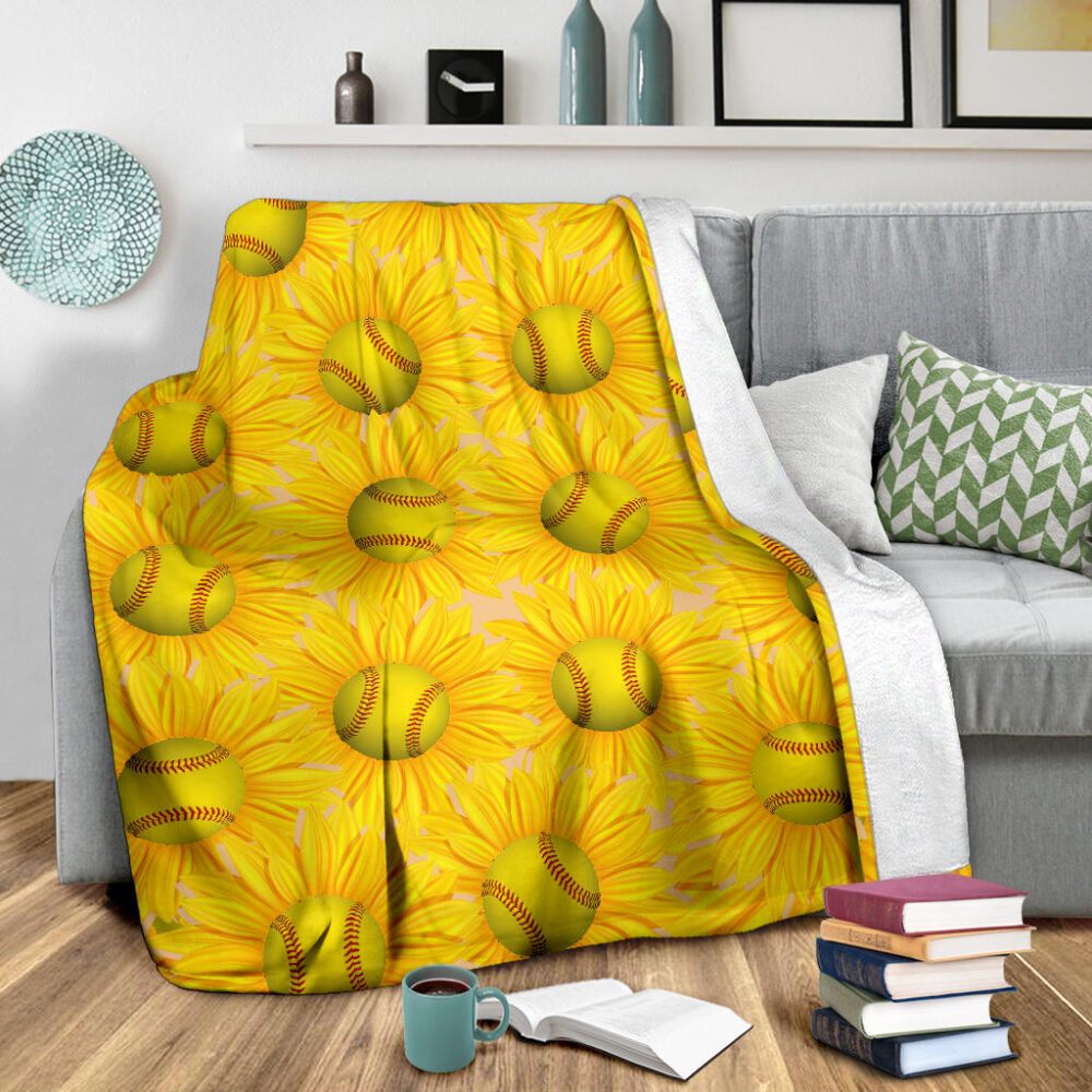 Softball Blanket, Softball Sunflower Girl Sherpa Fleece Blanket, Soft Cozy Plush Throw Blanket