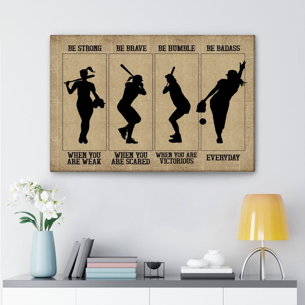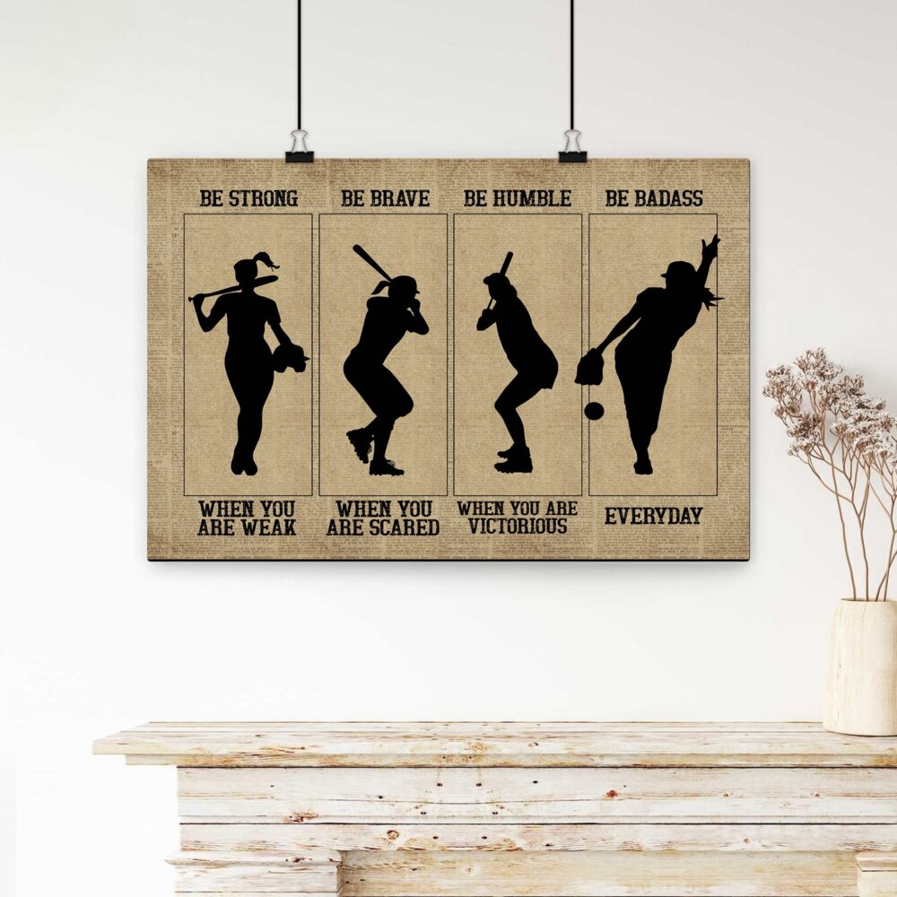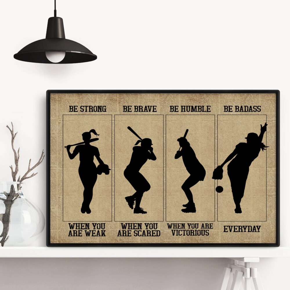 Softball Poster & Canvas, Be Strong Be Brave Wall Art, Home Decor, Birthday Gift For Girl, Daughter, Kid From Mom, Dad