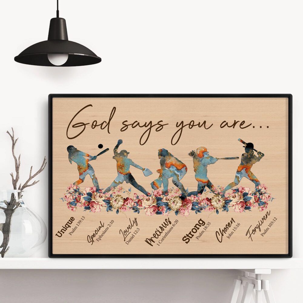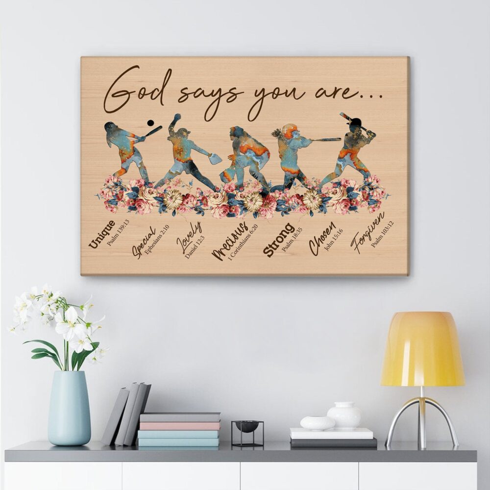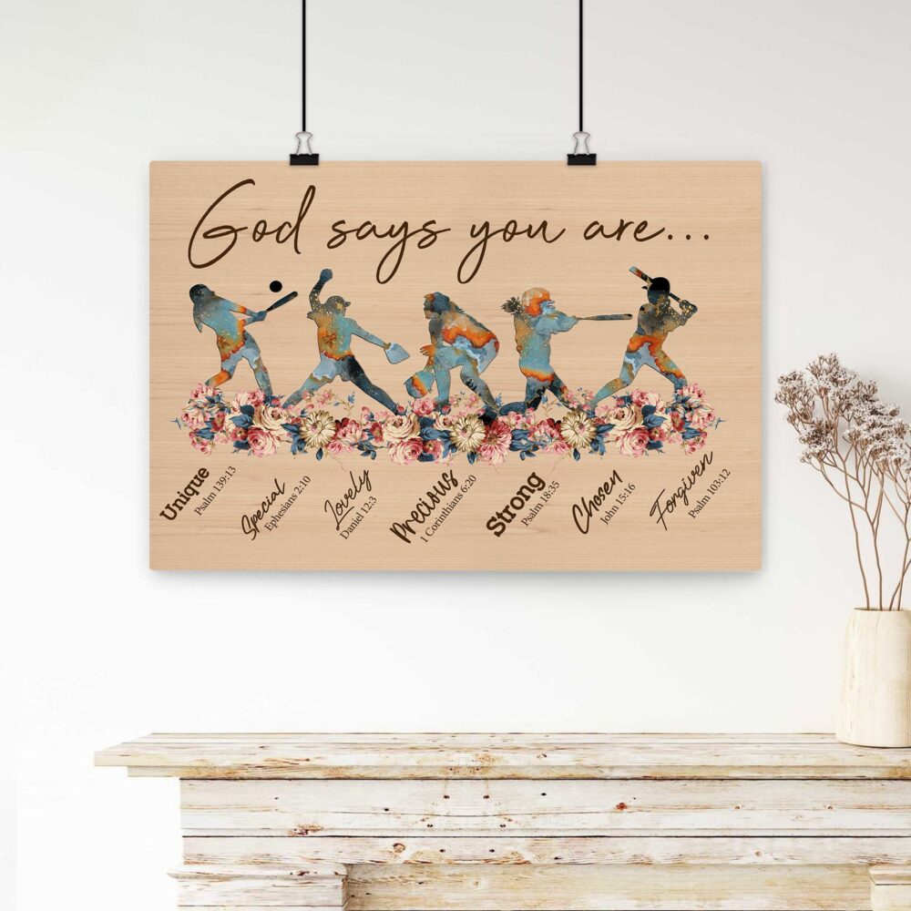 Softball Poster & Canvas, God Says You Are Wall Art, Home Decor, Birthday Gift For Girl, Daughter, Kid From Mom, Dad
